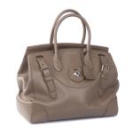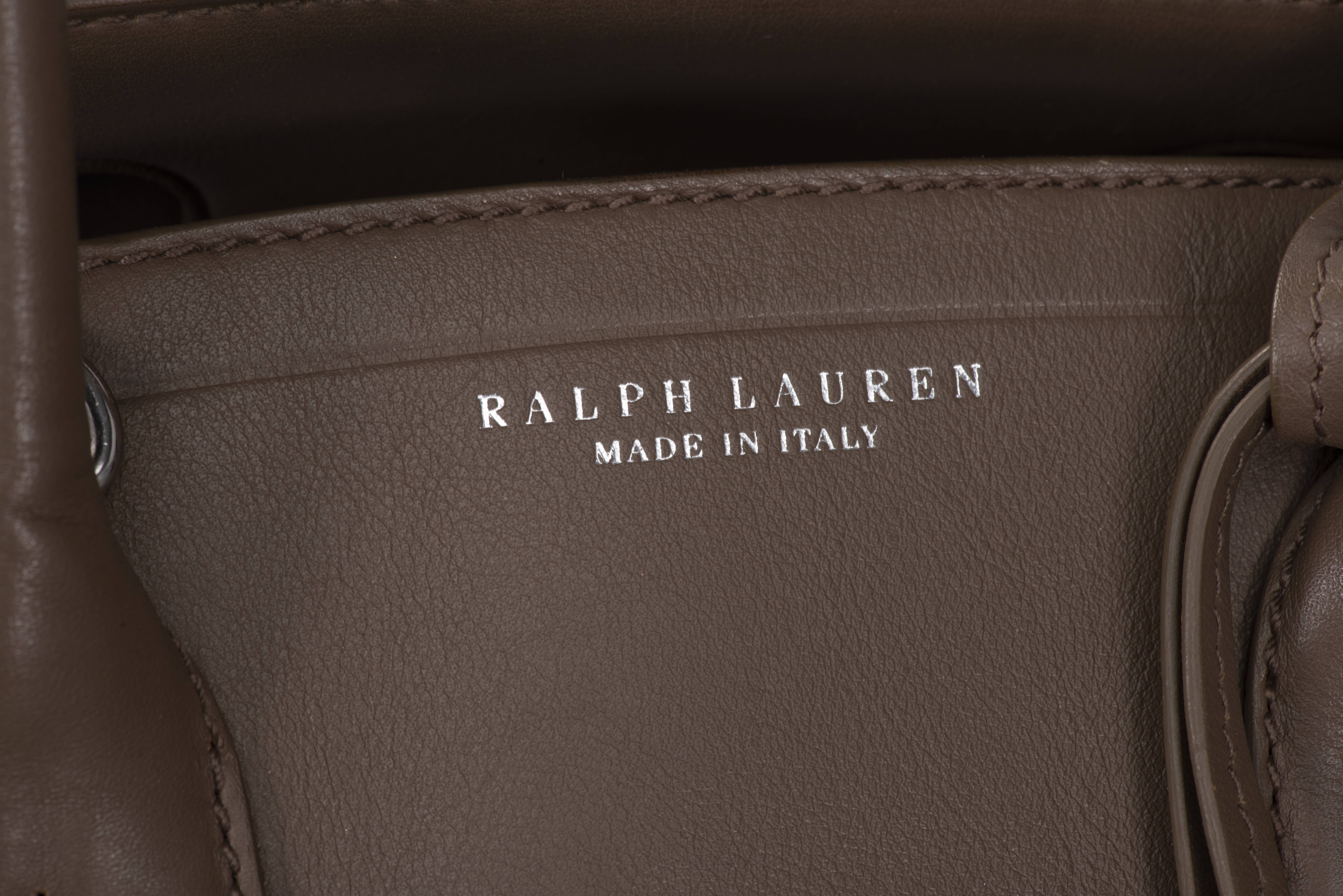 Ralph Lauren, sac Ricky en cuir brun, clefs, clochette, anse bandoulière amovible réglable, 31 cm.
