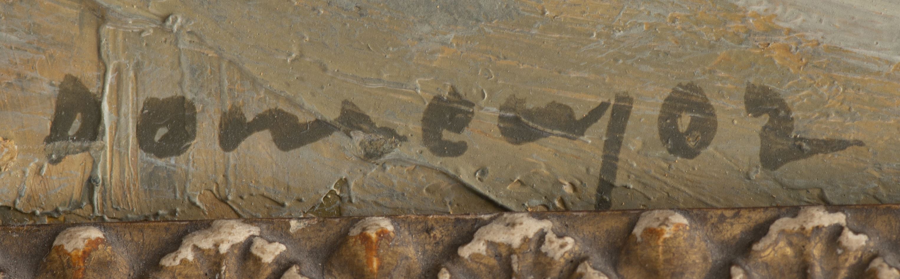 Raoul DOMENJOZ (1896-1978) "Port en bord de mer" Huile sur panneau sbg en noir.