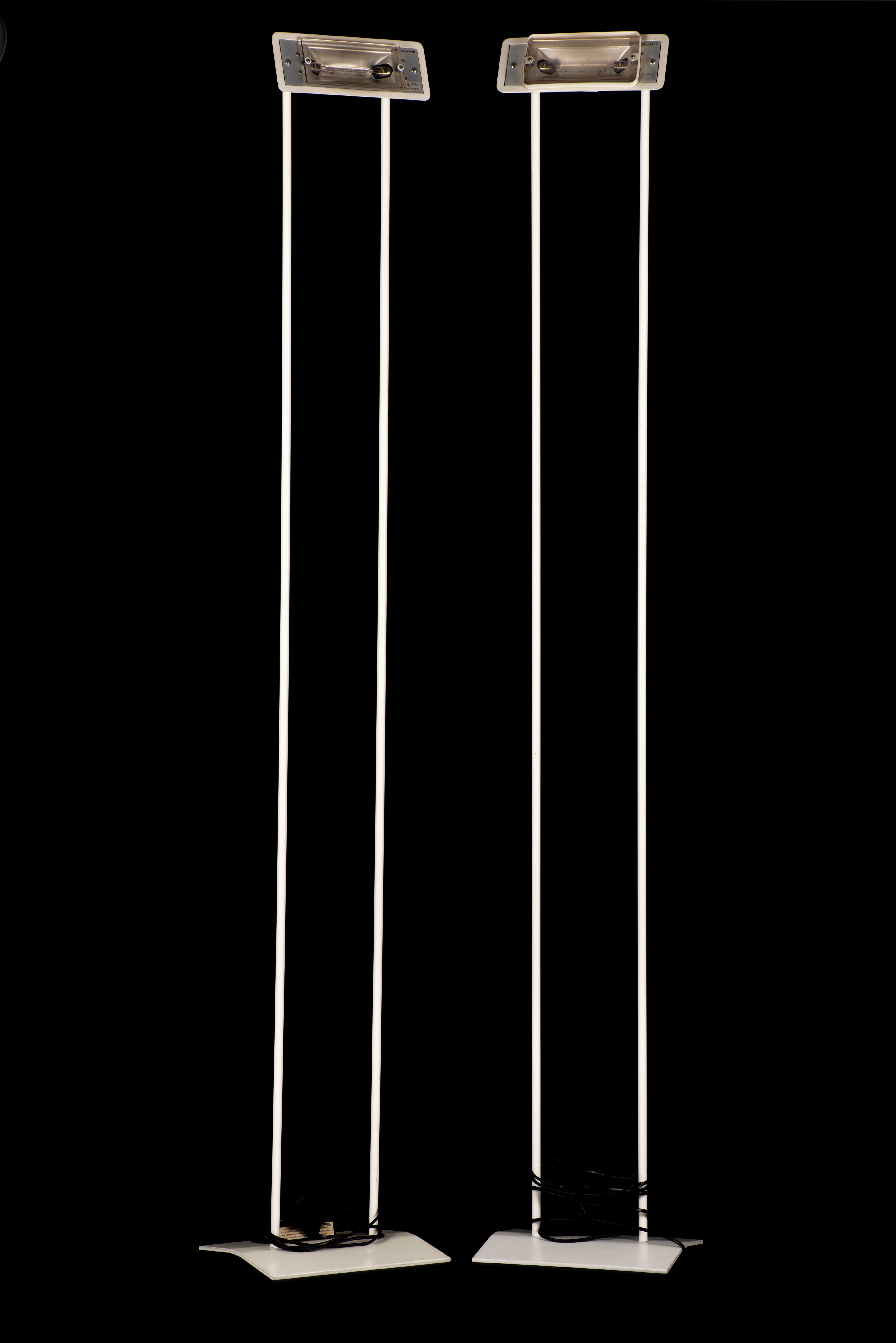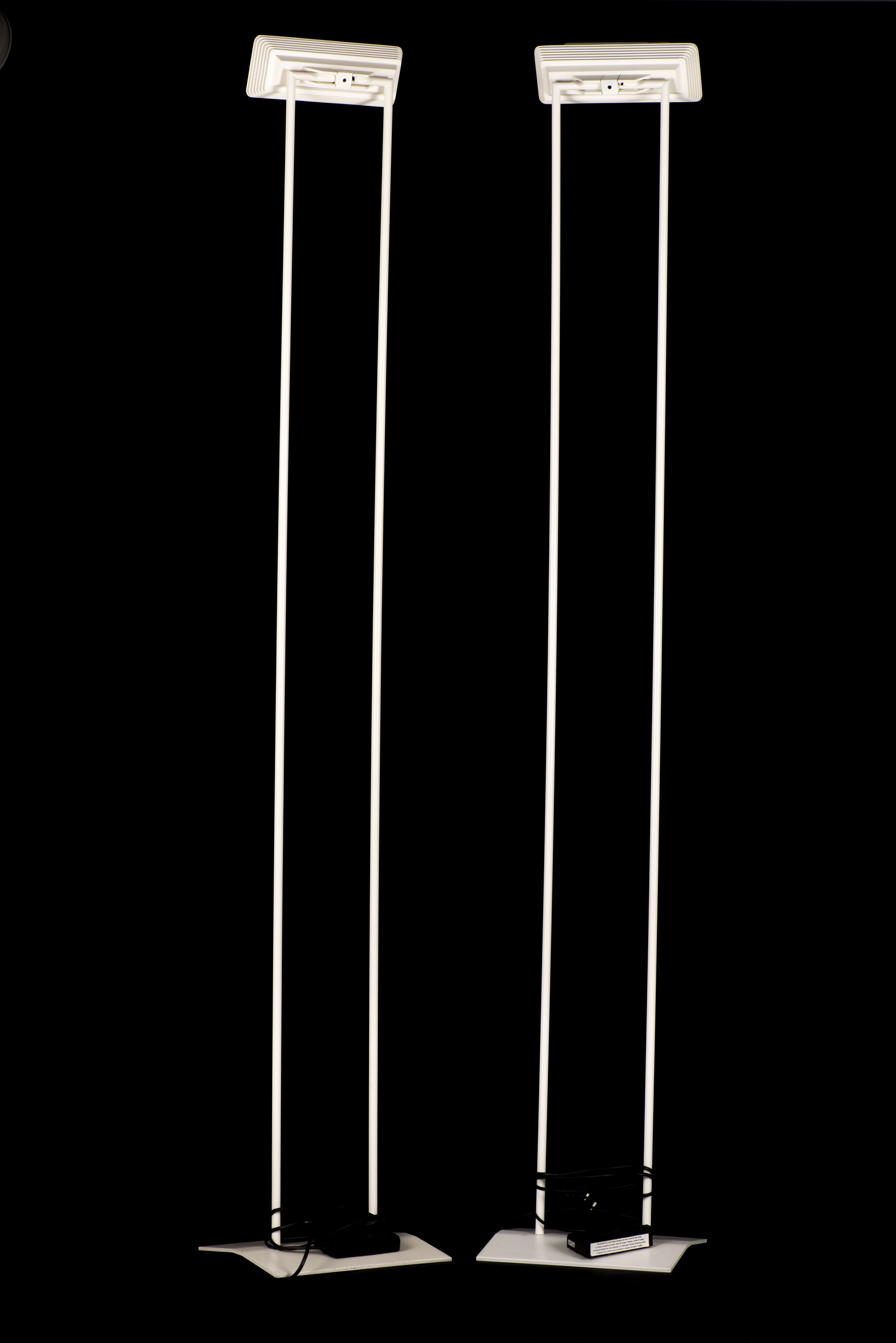 Relux Milano Italy, paire de lampadaires en métal thermolaqué blanc, ampoules halogènes vintage.