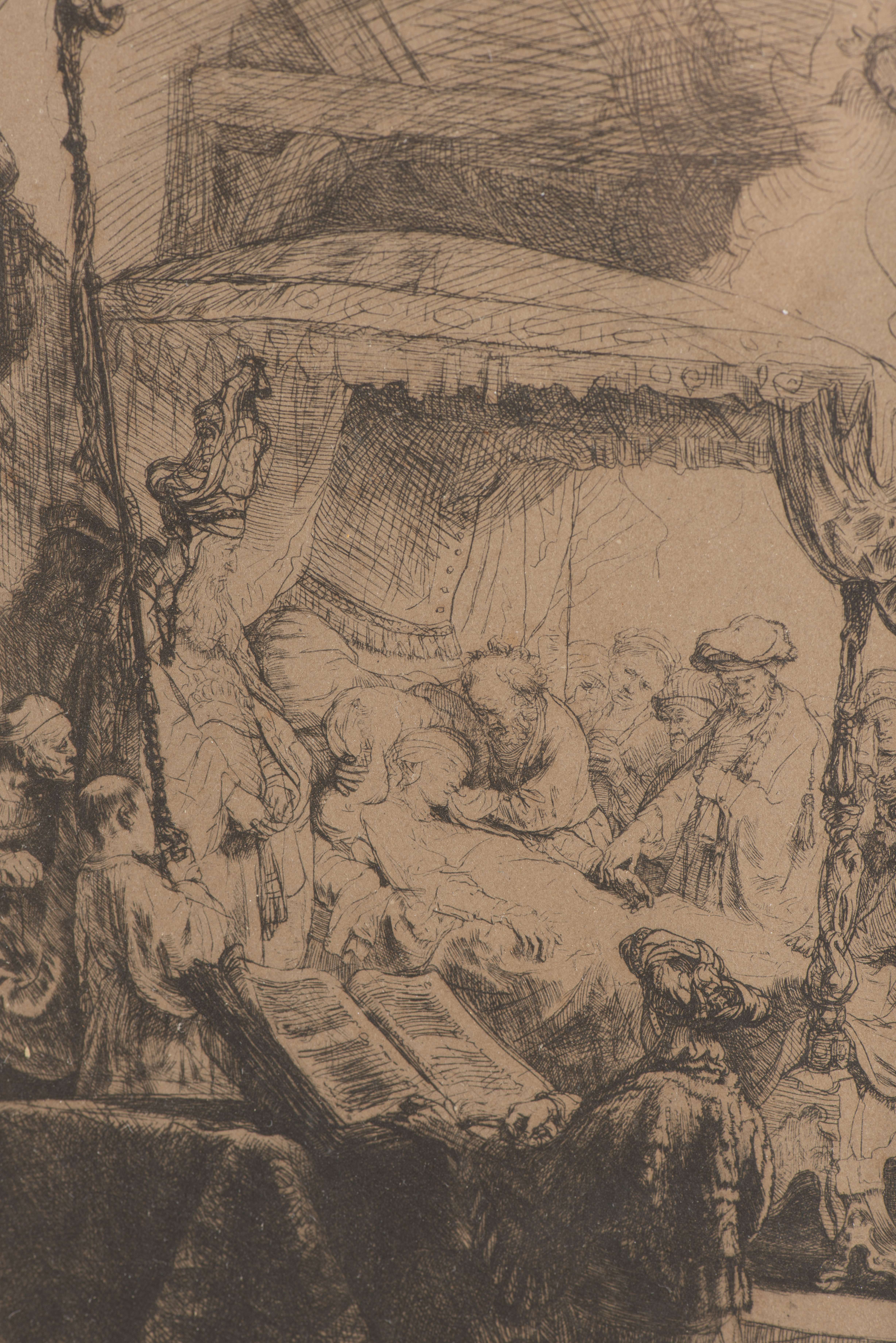 REMBRANDT VAN RIJN (1606-1669) "La mort de la Vierge",eau-forte sur papier vélin, signé dans la plaque et daté 1639, tiage tardif