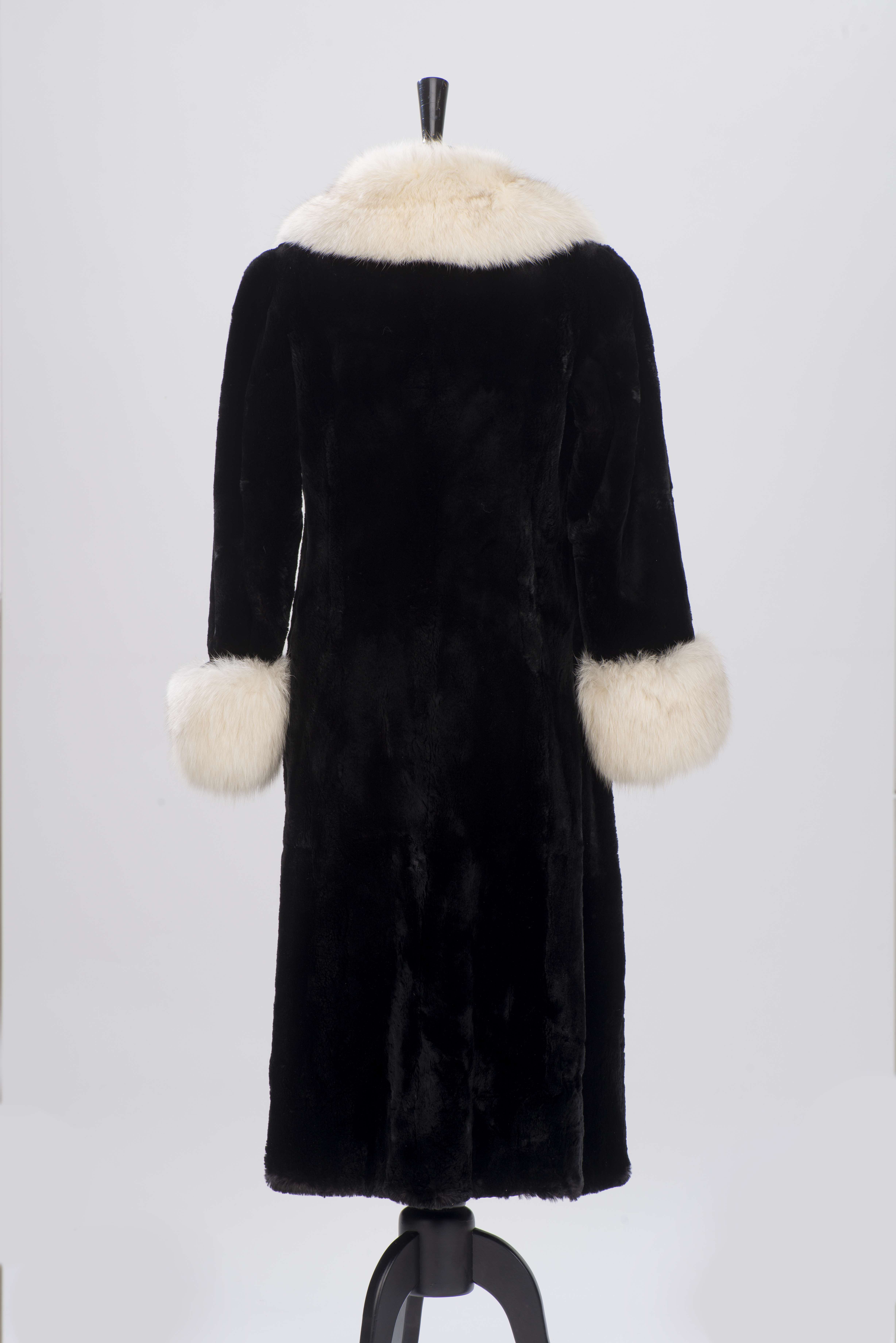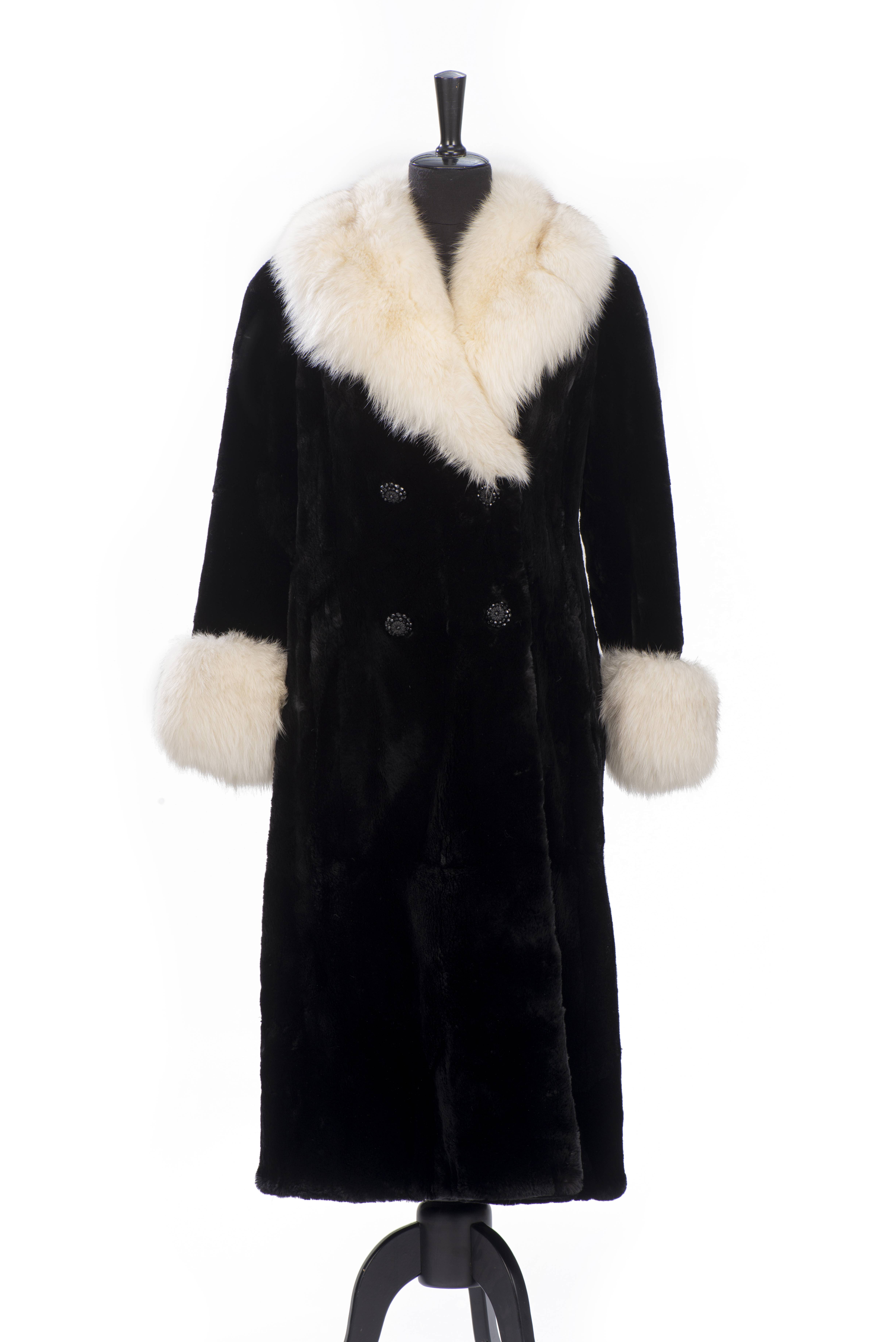 Revillon Paris, manteau en fourrure noire à col et manchettes en renard gris.