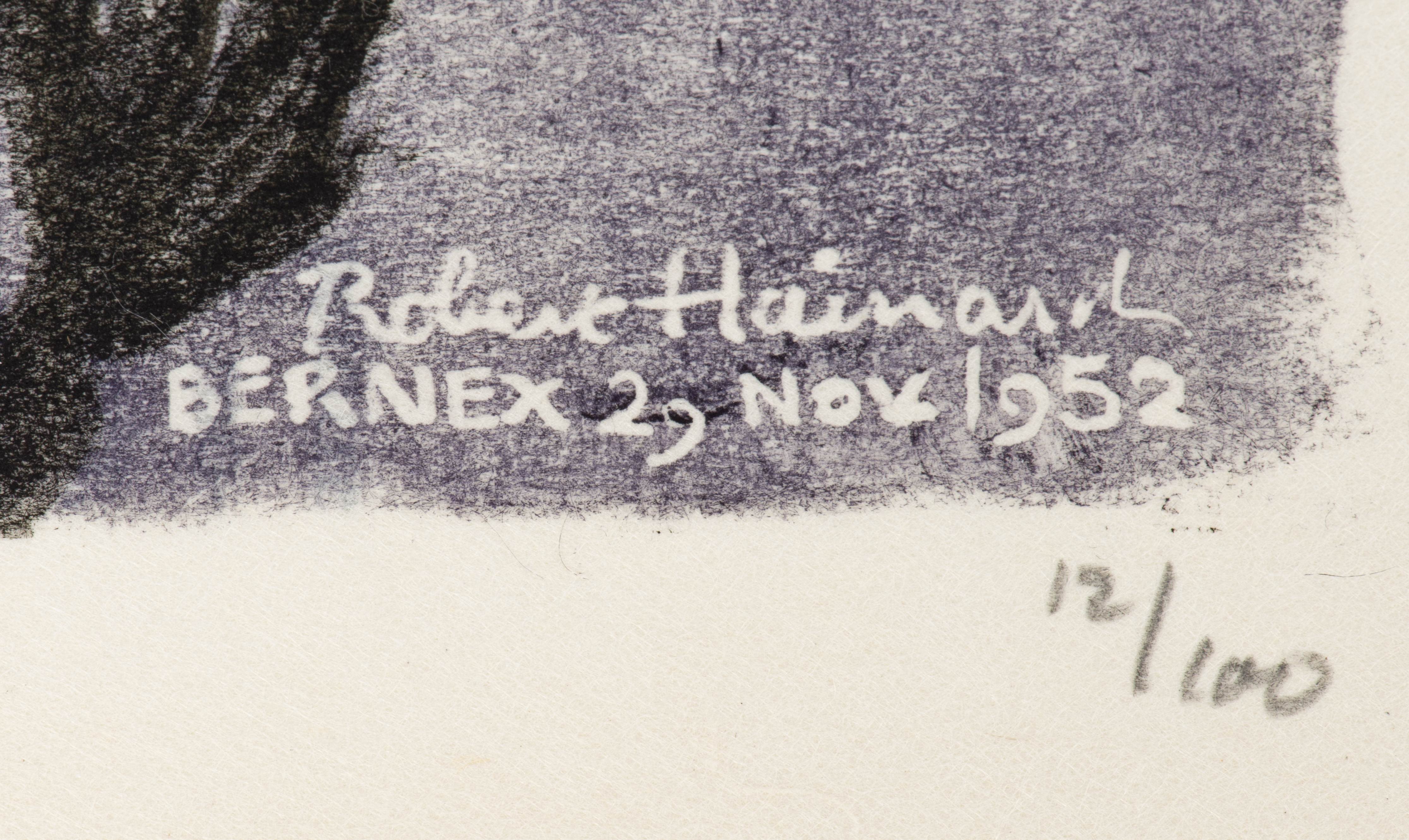 Robert HAINARD (1906-1999),"Pleine lune", Bois gravé - Xylographie sur papier en couleurs, signé dans la planche en bas à gauche Robert Hainard Bernex 1952, num 12/100 en bas à droite.