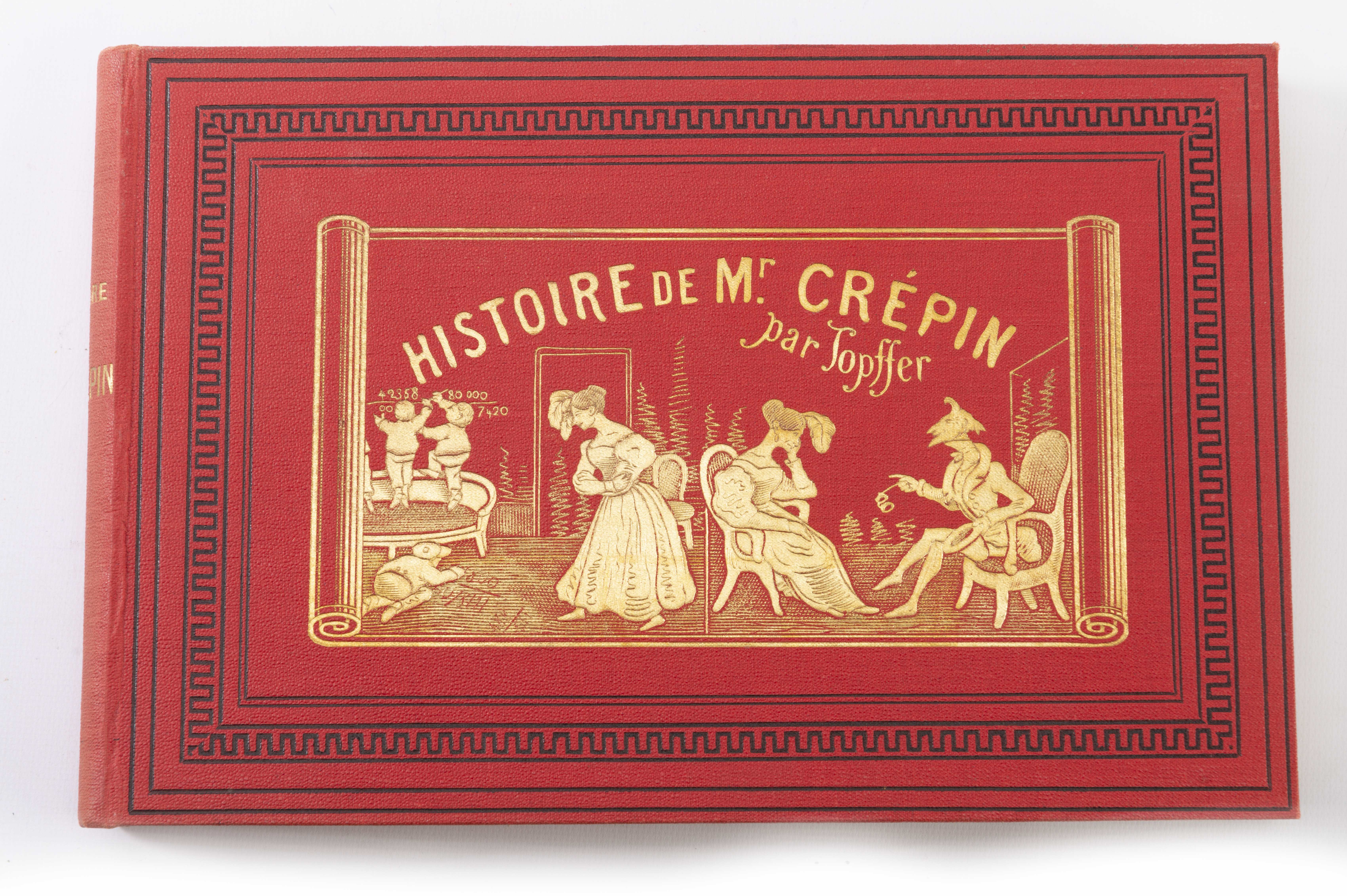 "Histoire de Mr. Crépin" couv. en percaline rouge noir et or, lith. et imprimé par E. Dufrénoy,, 49 rue du Montparnasse, Paris, sept. 1922. Format oblong. 18.5x28.5 cm