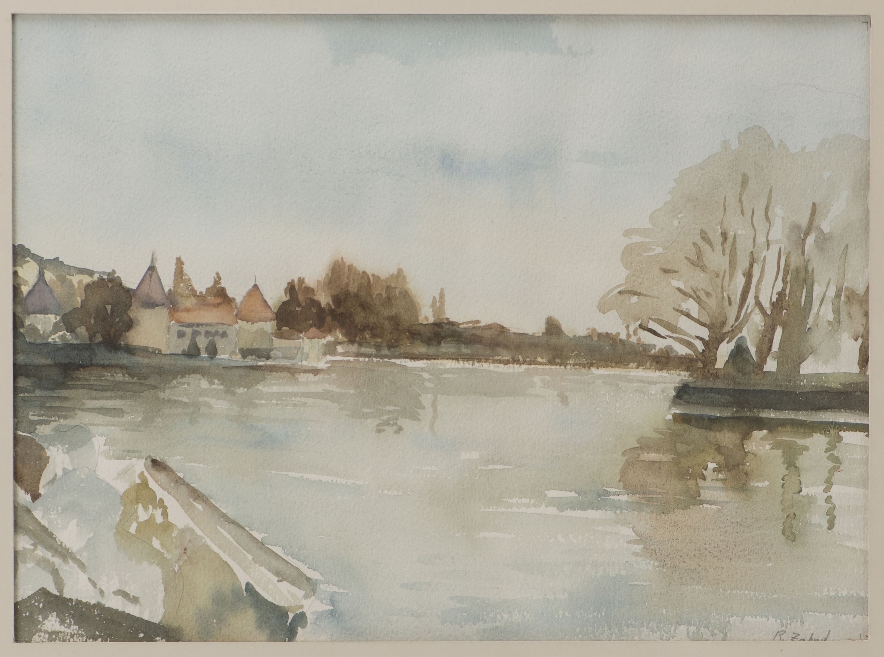 Roland ZAHND (1929-2009), "Le lac", aquarelle, signée en bas à droite : "R: Zahnd".