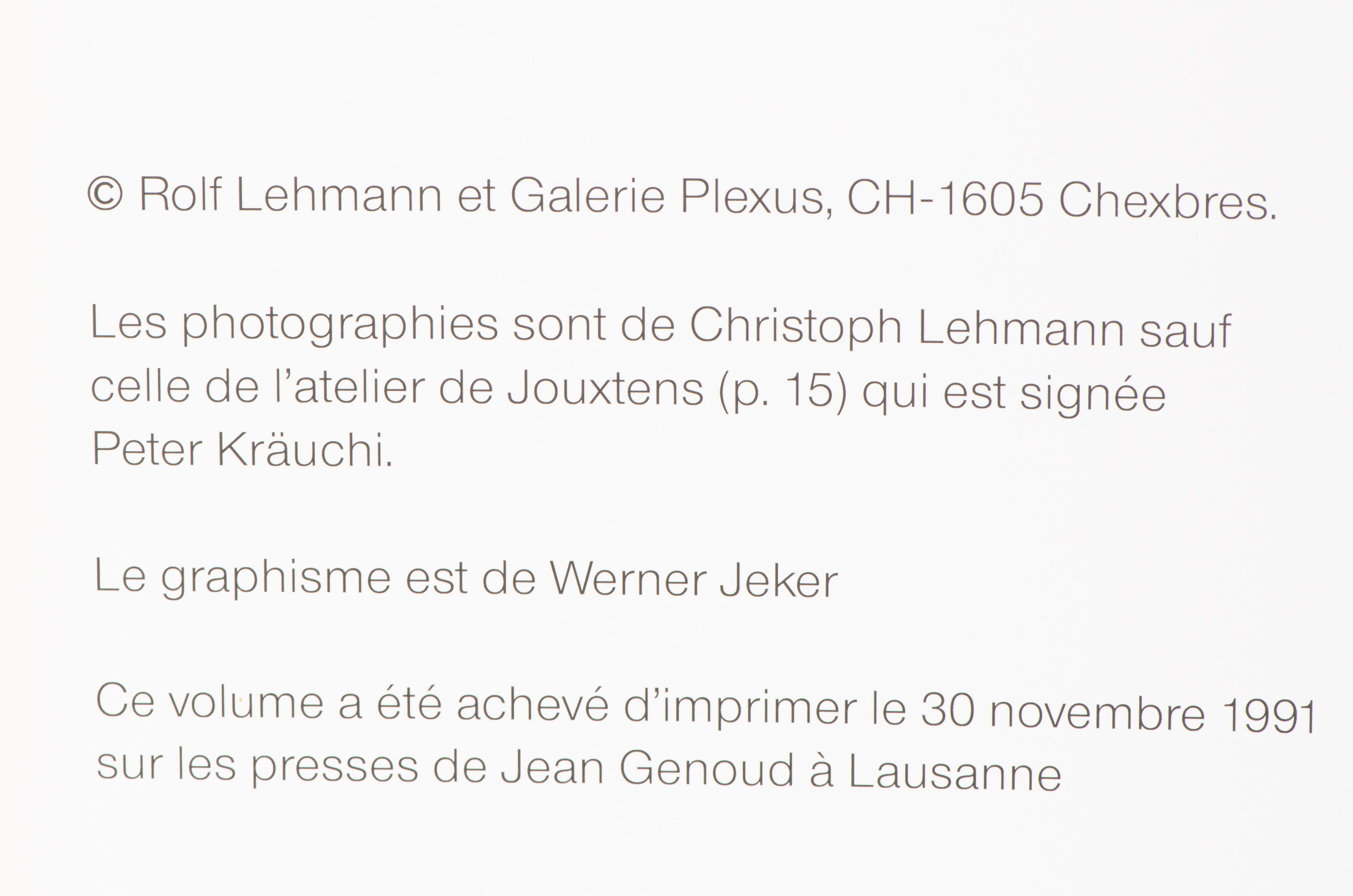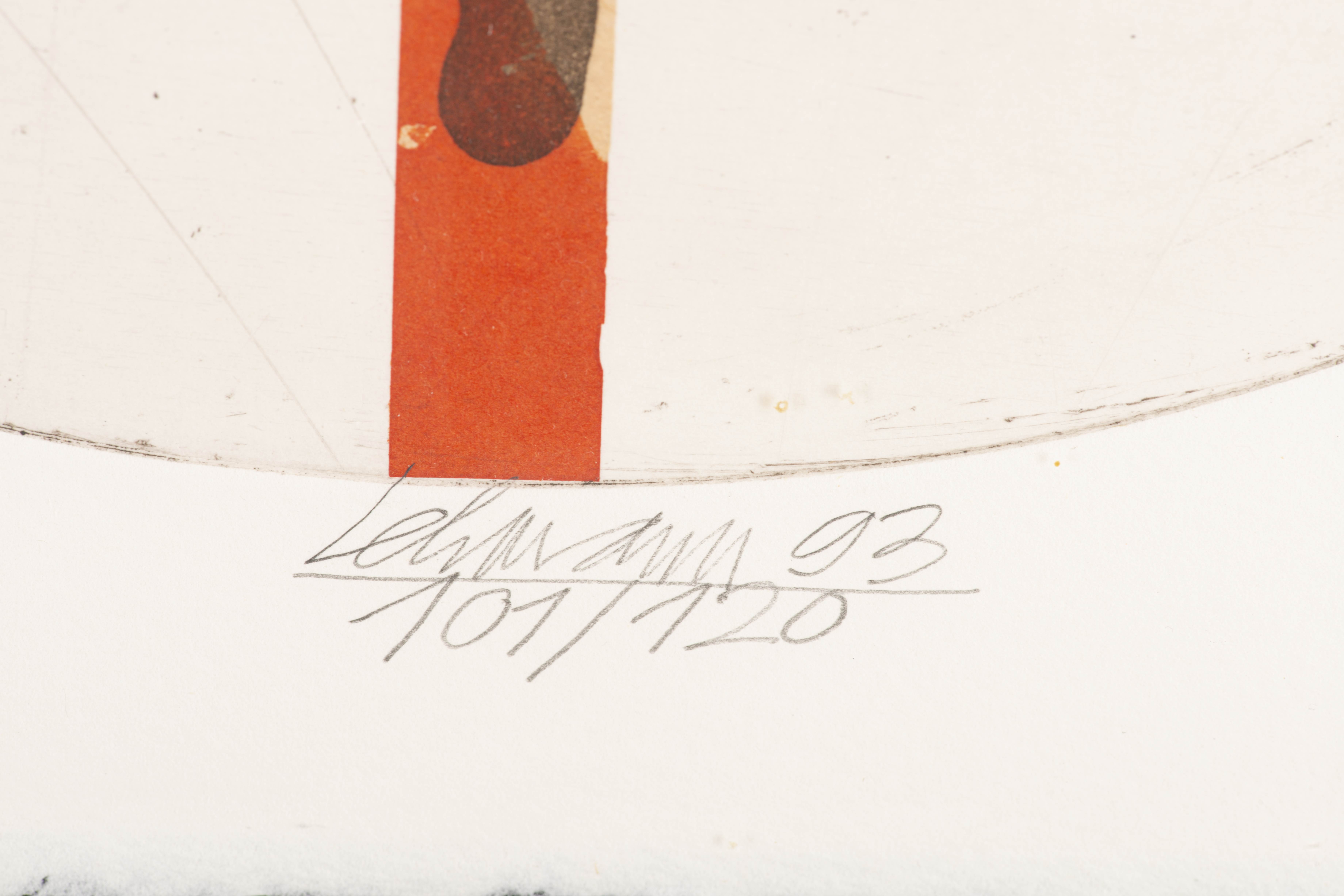 On y joint une "Composition abstraite", lithographie sur papier velin, signé et daté "Lehmann 93 et numeroté 101/120, 33.5 x 28 cm (encadré sous plexis, 54 x 50 cm) ainsi qu'une monographie: Rolf Lehmann, Raymond Meyer Pully, signé et dédicacé par l'artiste