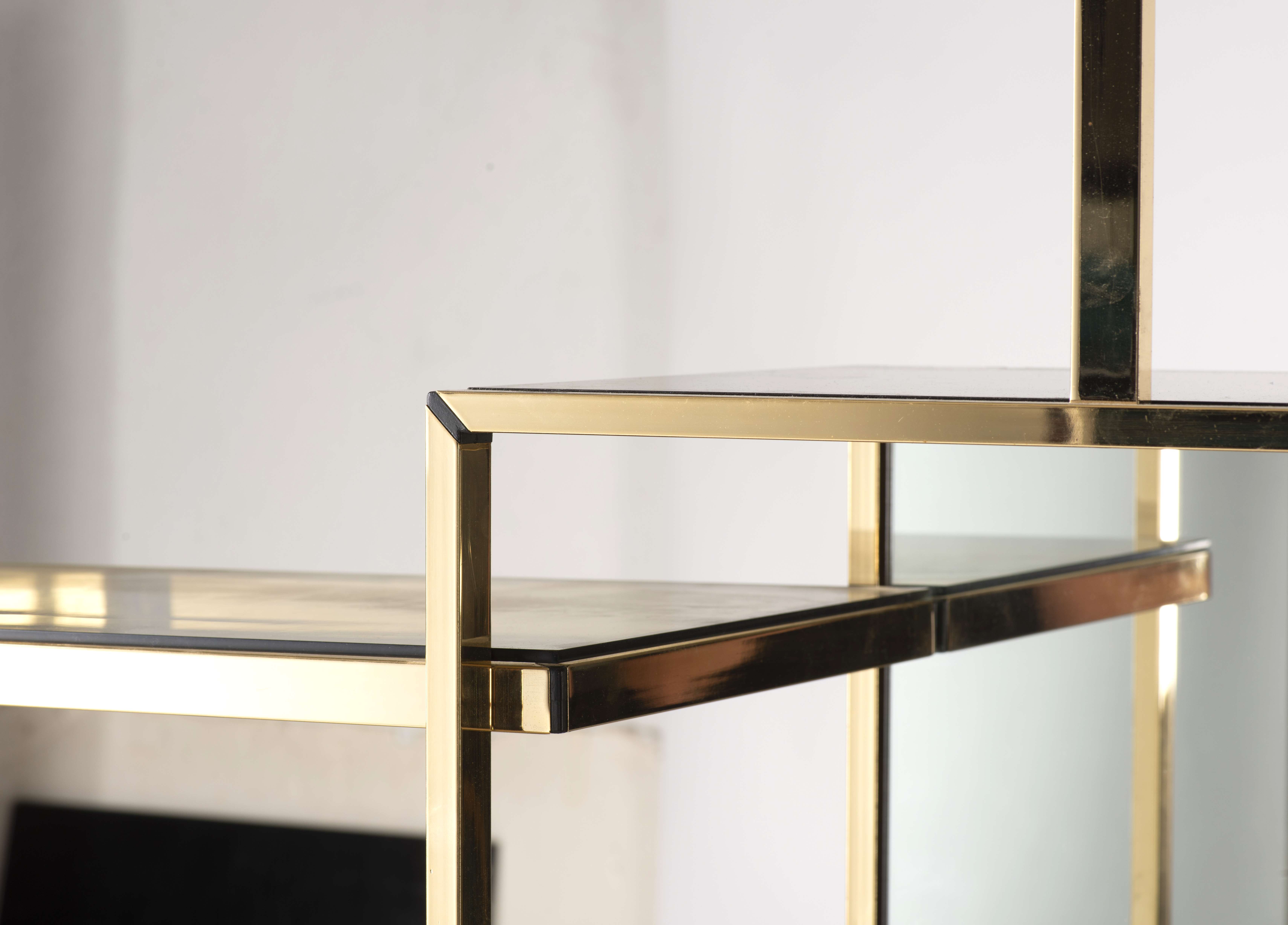 Roméo Rega (1904-1968) dans le goût de, ou dans le goût de Guy Lefèvre (1933–2018) pour la Maison Jansen, bibliohèque à base laquée noire, montants en laiton et verre.
