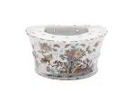 ROUEN - Bouquetière d'applique en faïence à bord contourné à décor polychrome d'un jardin fleuri avec oiseau.