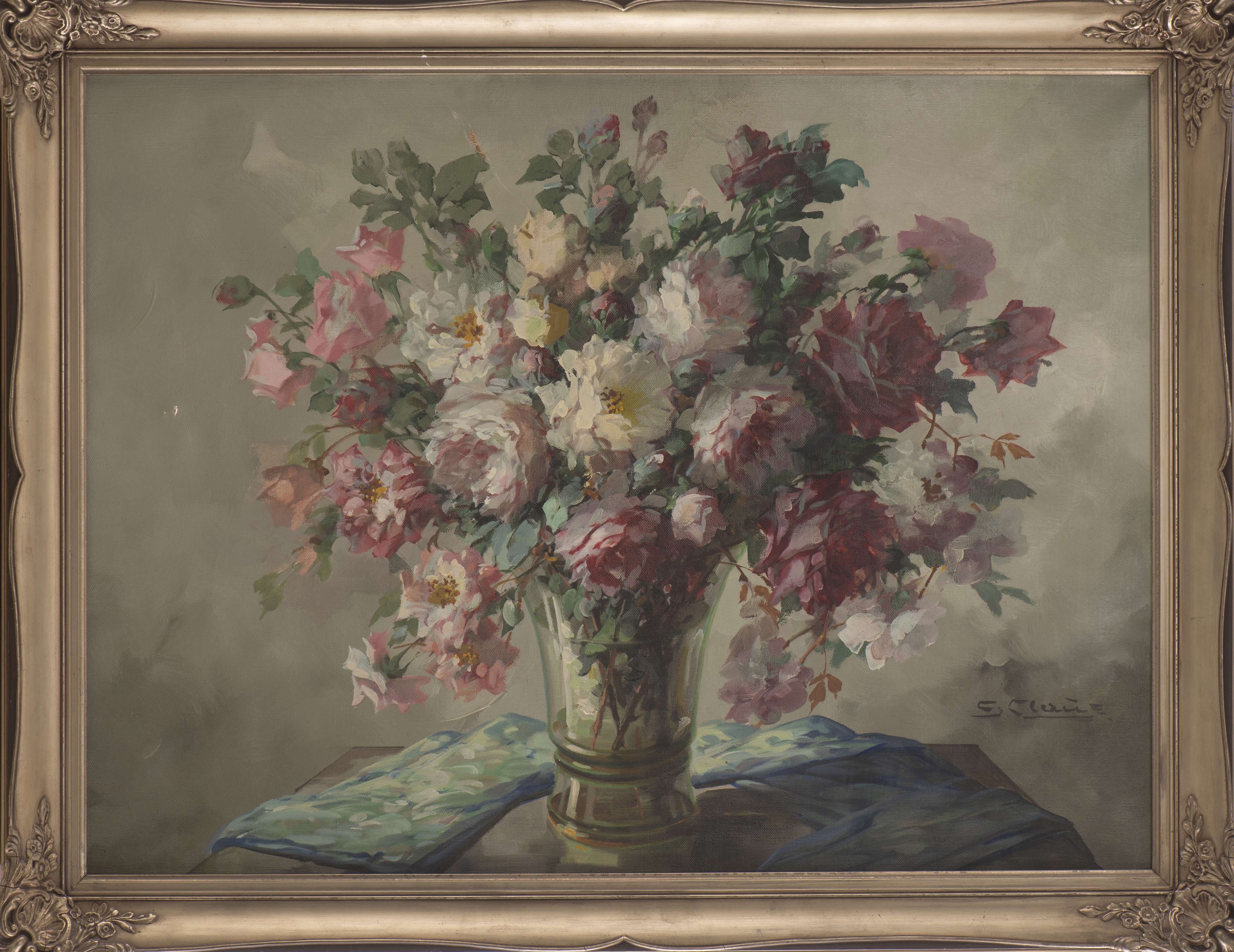 S. CLAUS (XIX-XXe) "Roses", huile sur toile, signé en bas à droite.