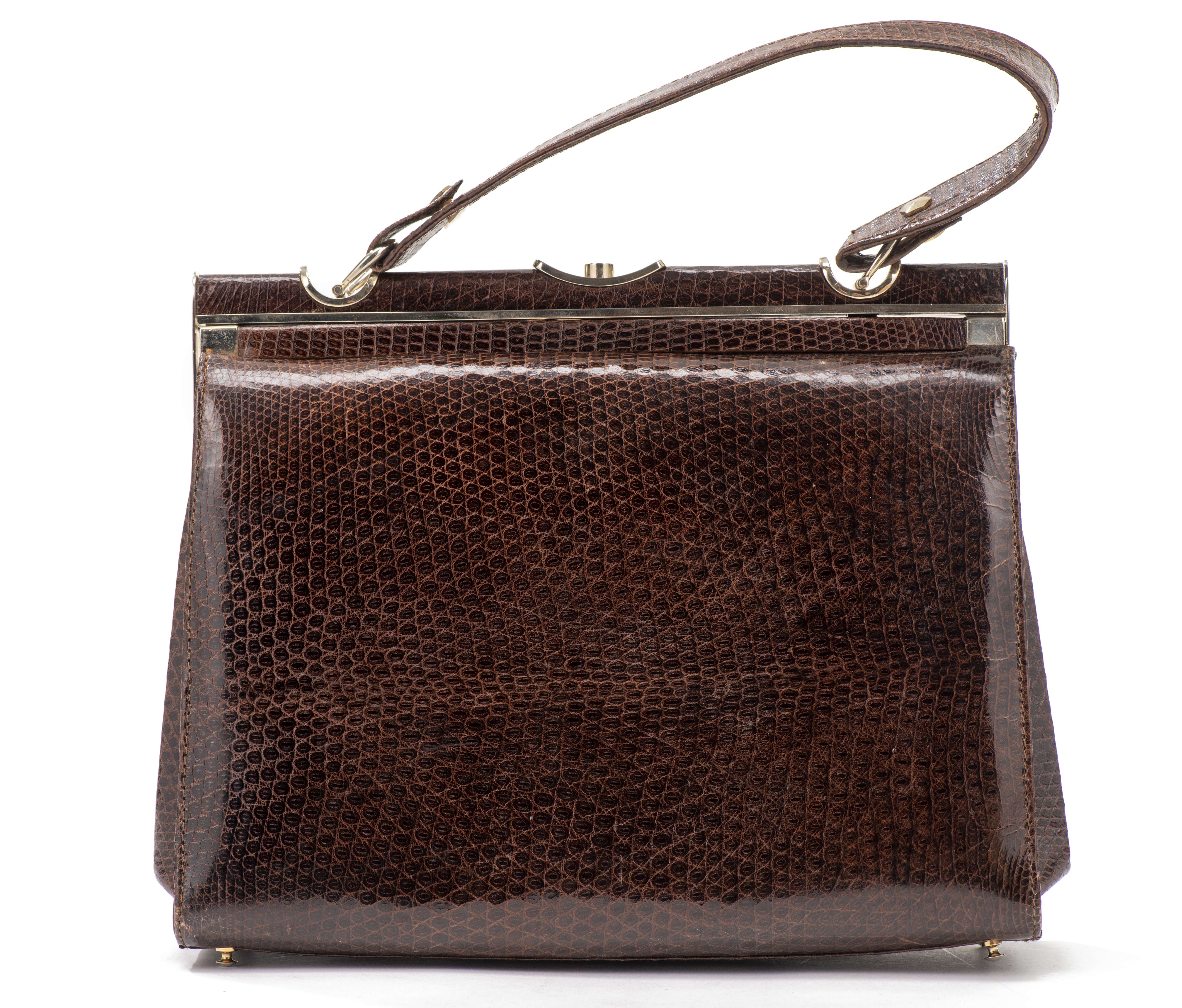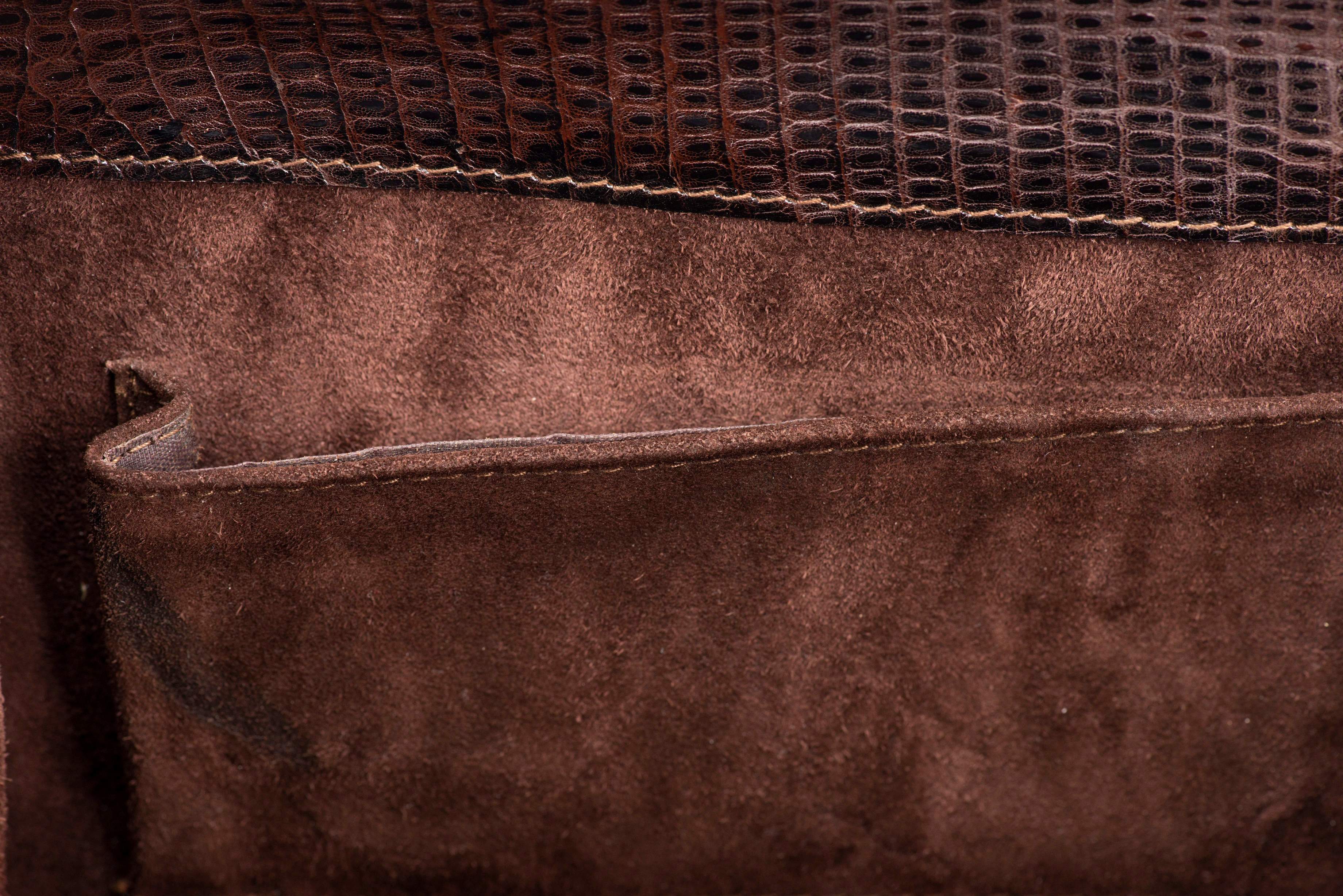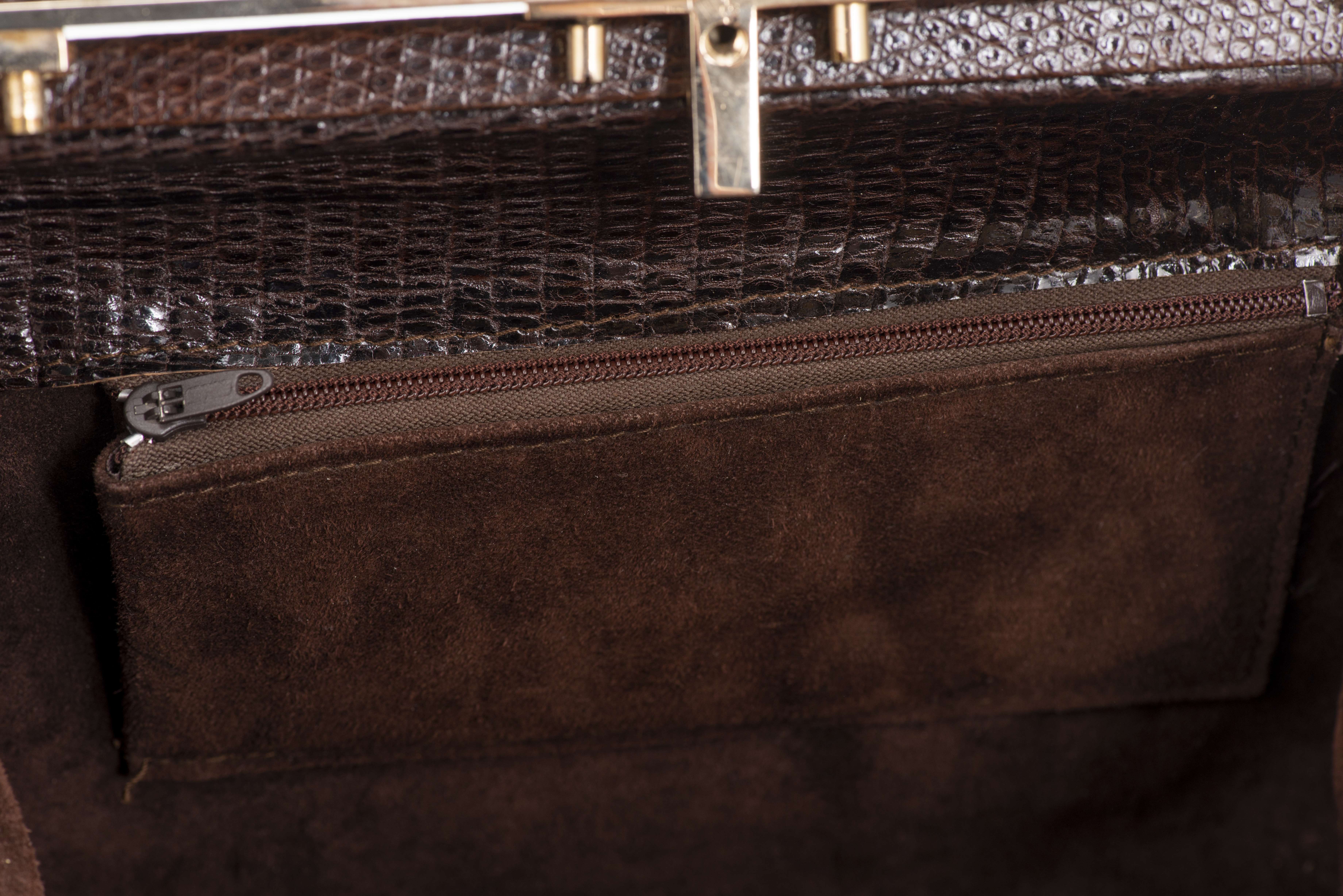 Sac en croco brun des années 50 avec porte-monnaie croco