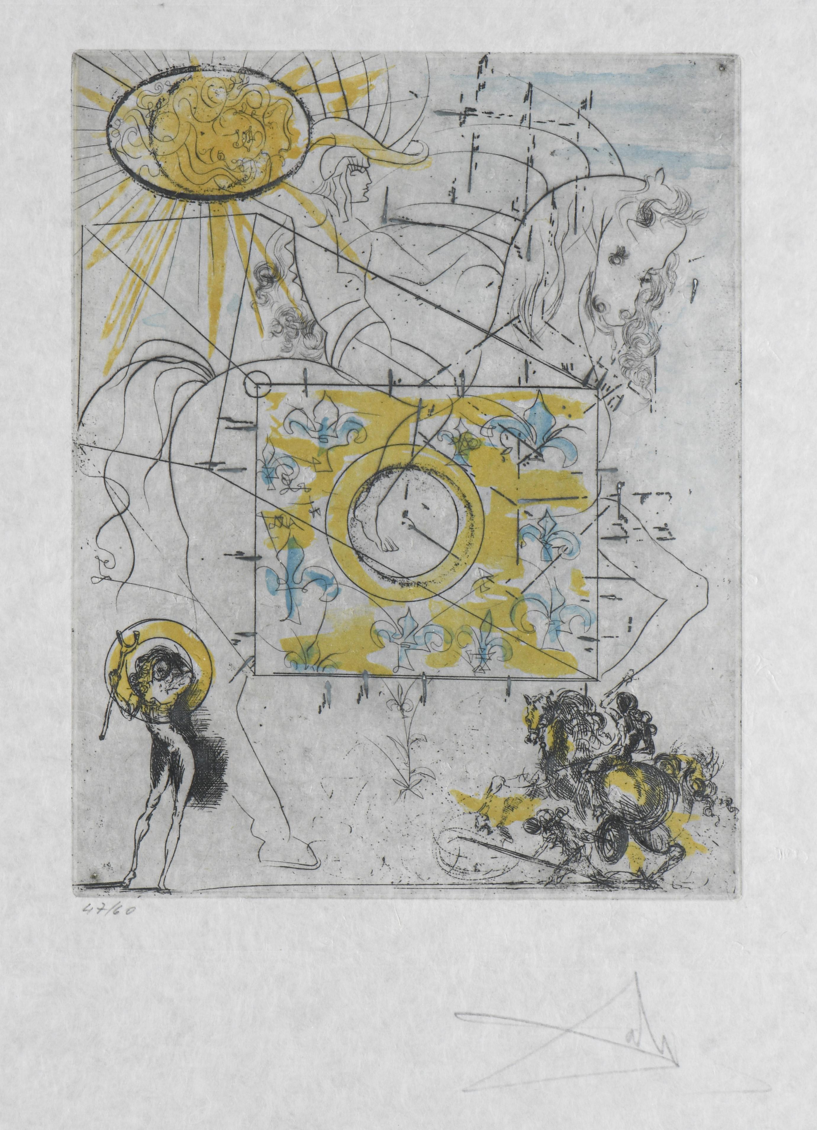 Salvator DALI (1904-1989) "Combat de Cavaliers'' de la suite ''Calderón". La vie est un songe'' (1971) lithographie sur papier Japon, num. 47/60 en bas à gauche au crayon et signé Dali en bas à droite dans la marge, papier Japon.