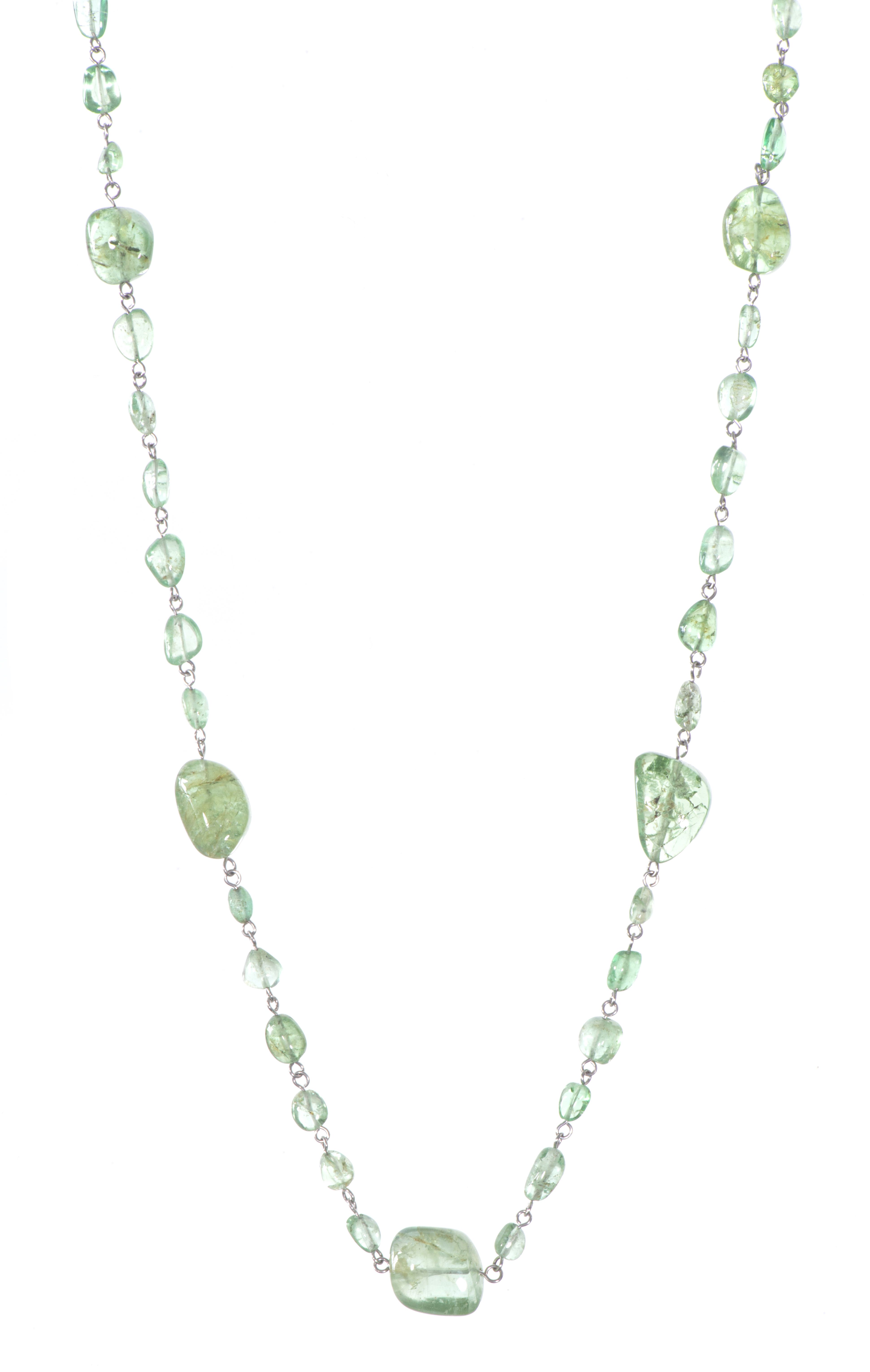 Sautoir de pépites d'émeraude montées sur argent .925.