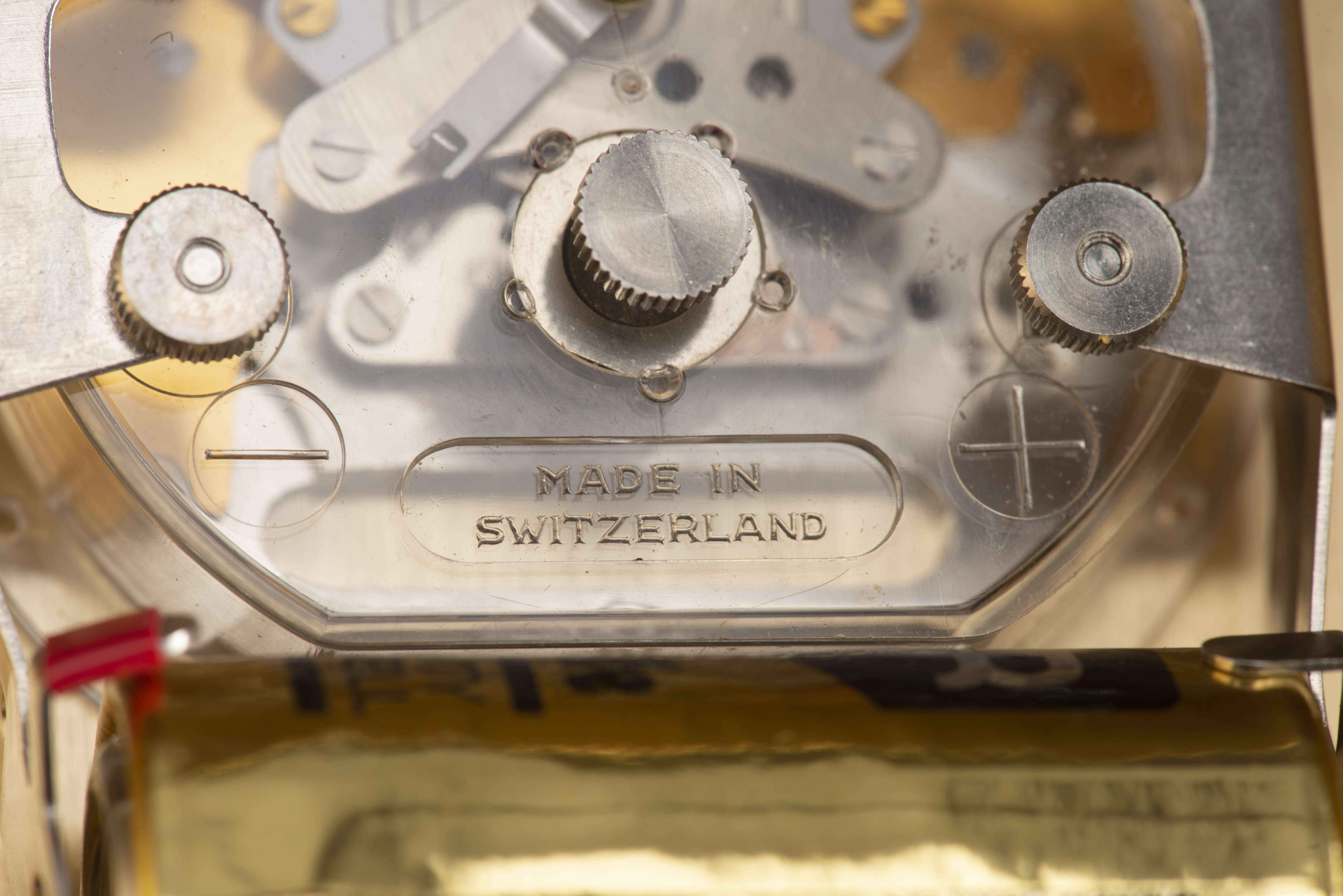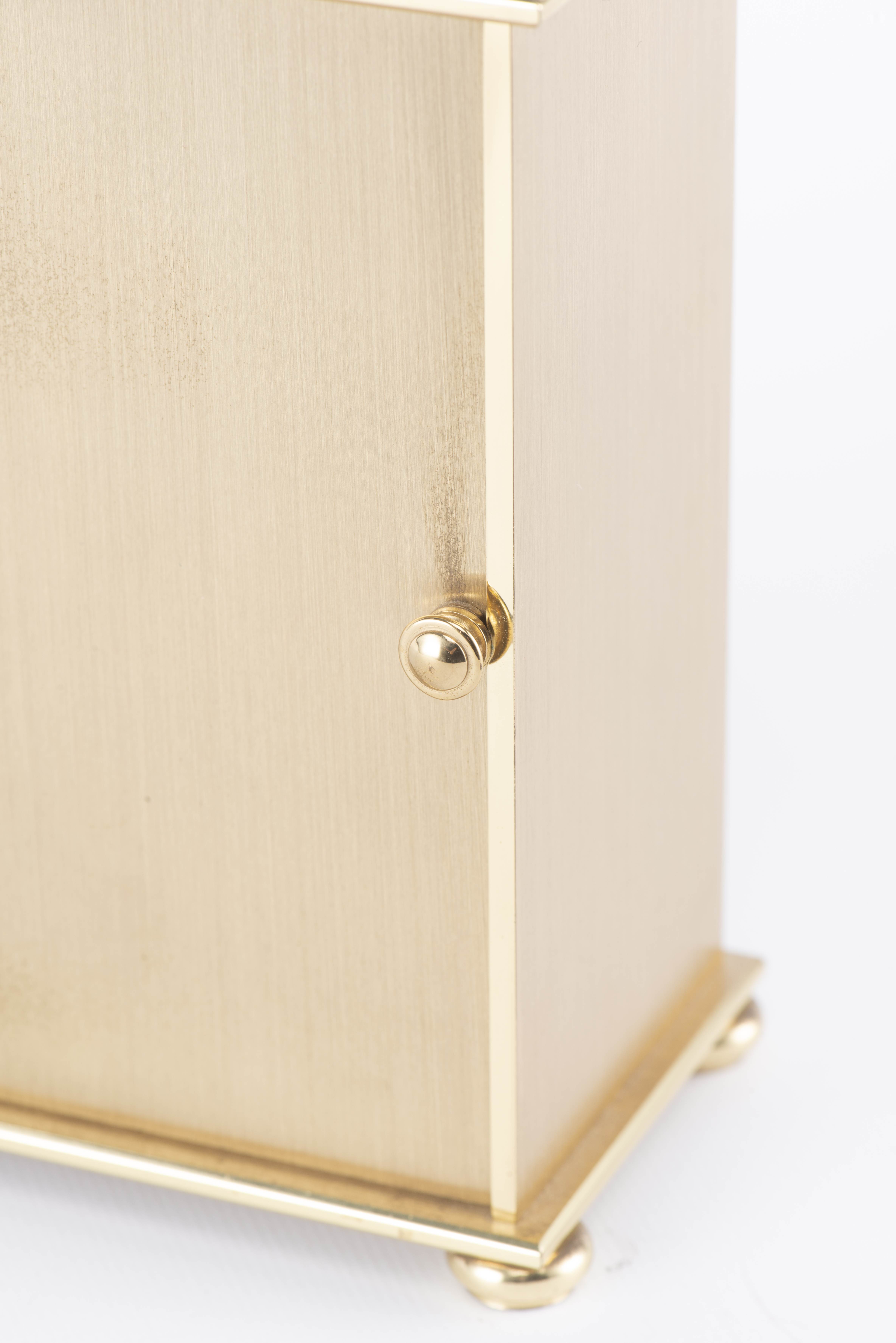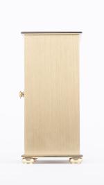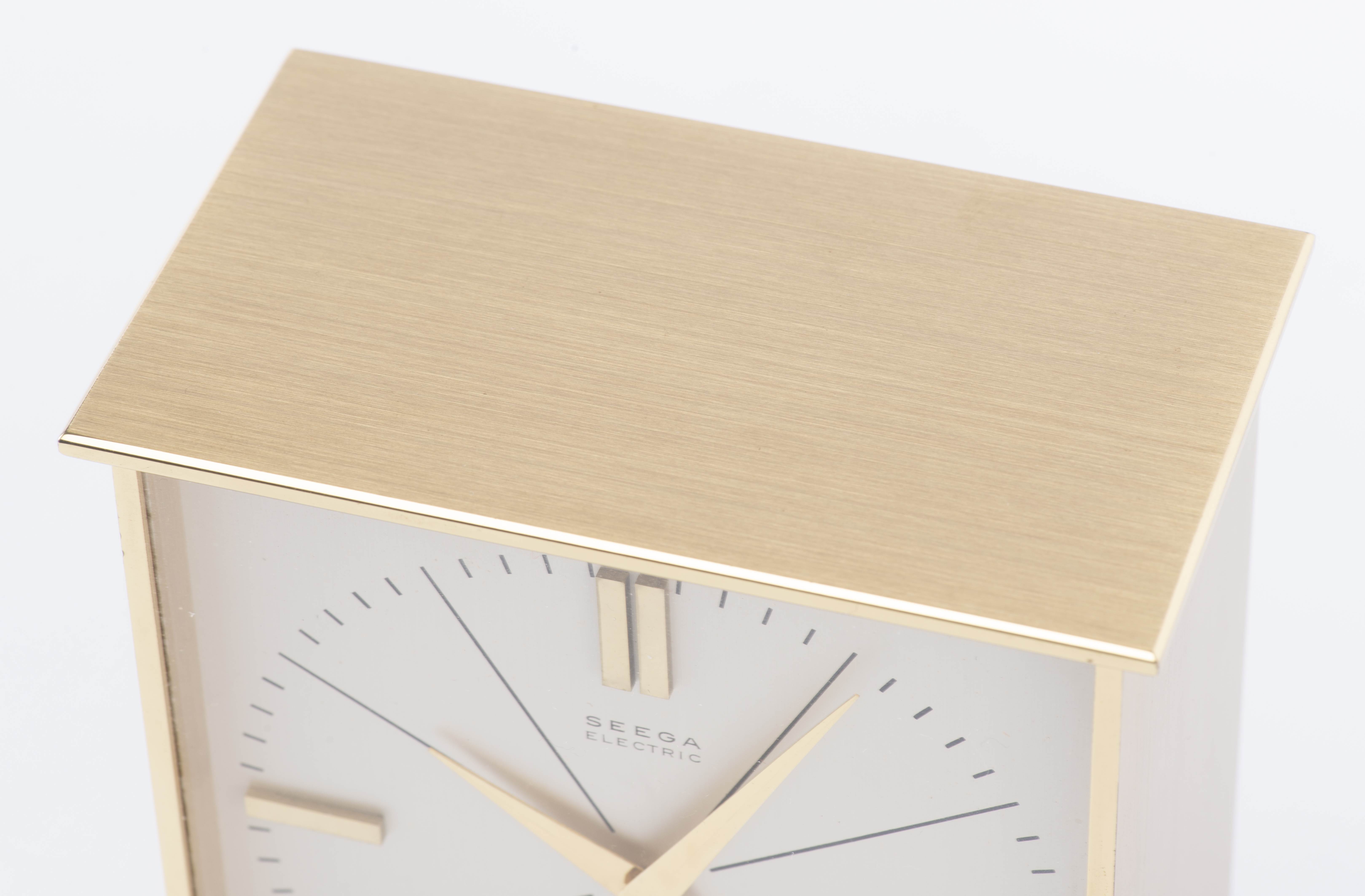 Seega, pendulette de table en laiton doré, cadran blanc, chiffre, aiguilles et index dorés.