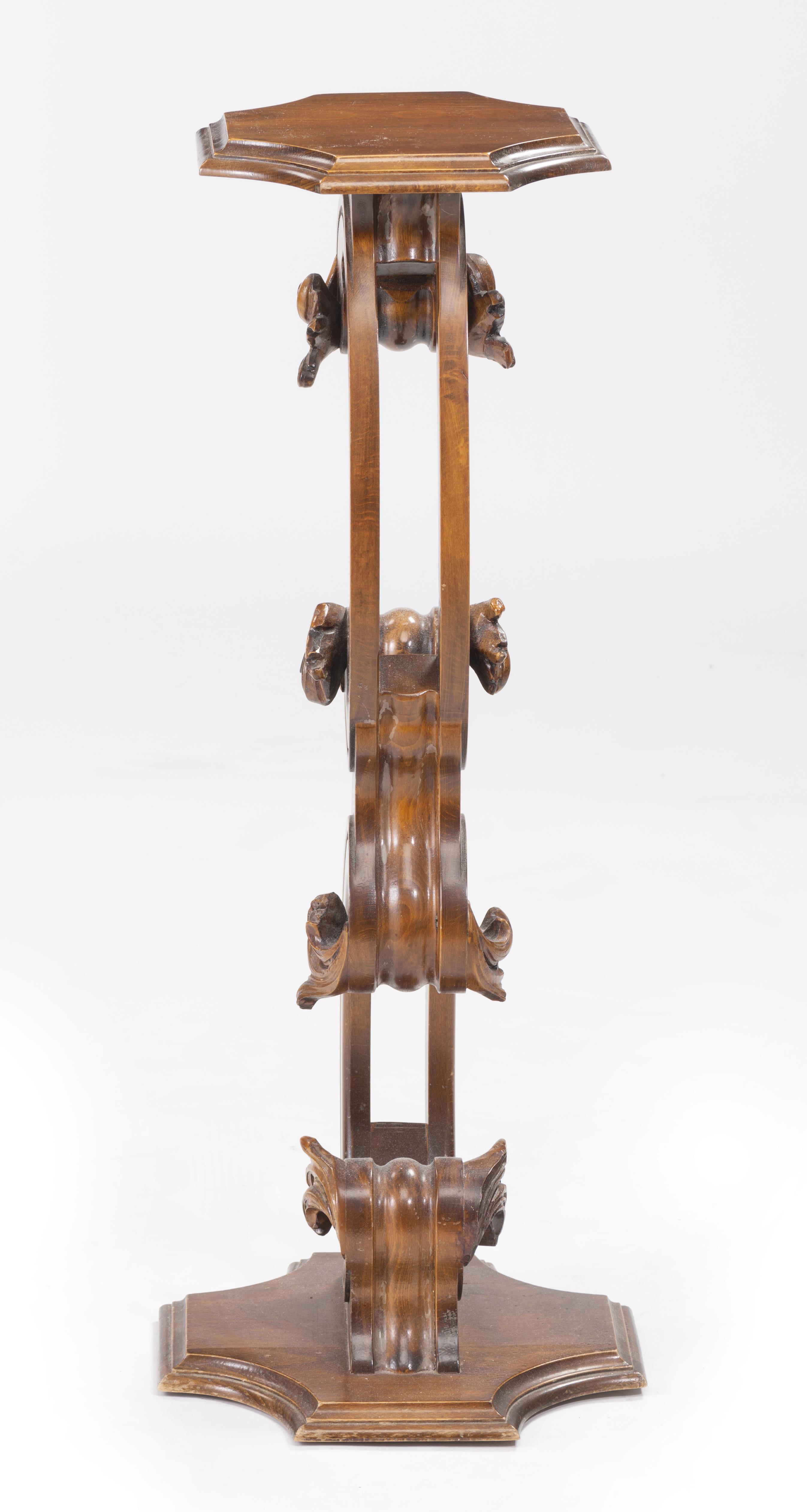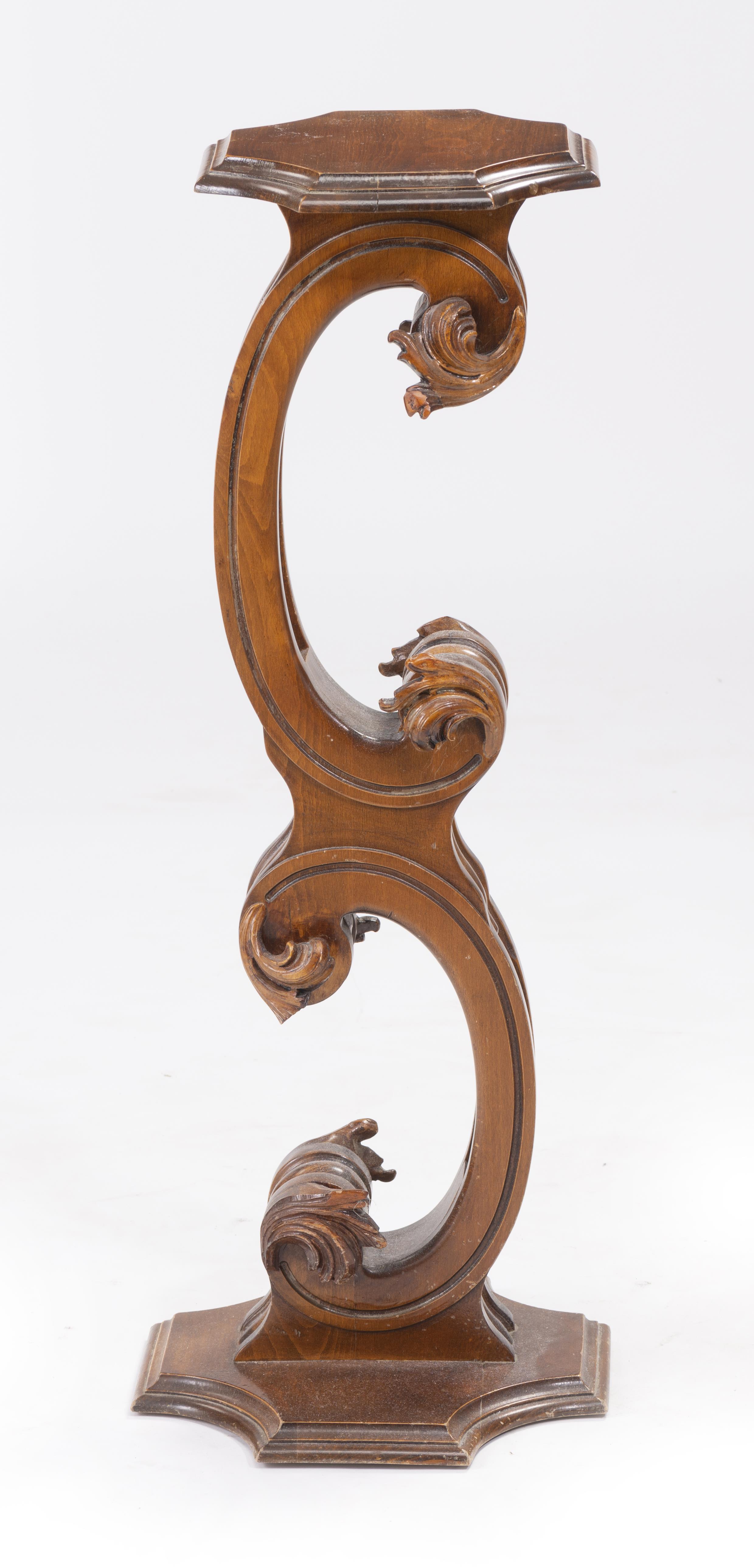 Sellette en bois à pied en forme de double C.