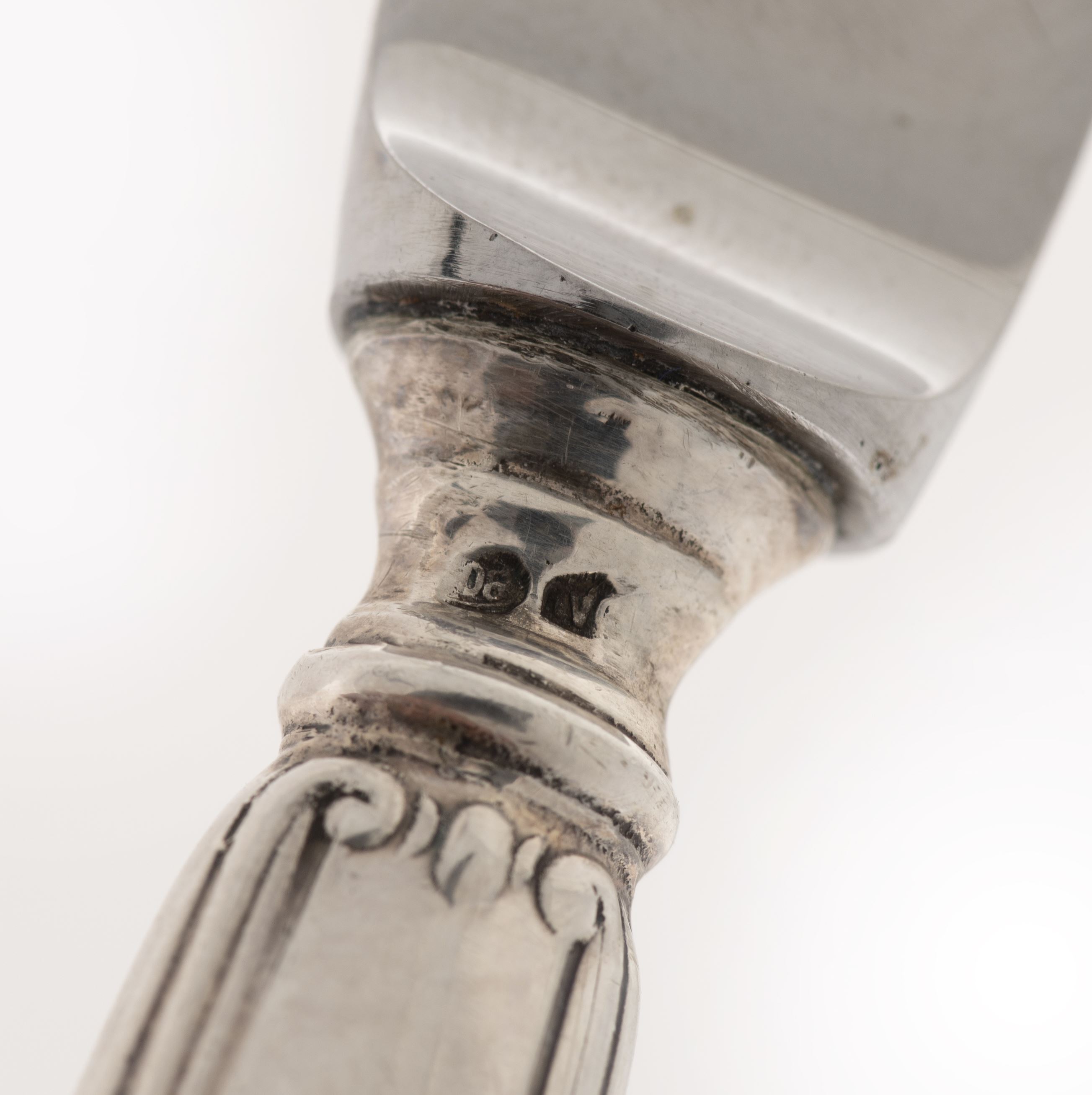 Service de baptême pour enfant en argent .800 italien modèle princesse par Miracoli&C comprenant un couteau, une fourchette et une cuillère, monogrammé GB.