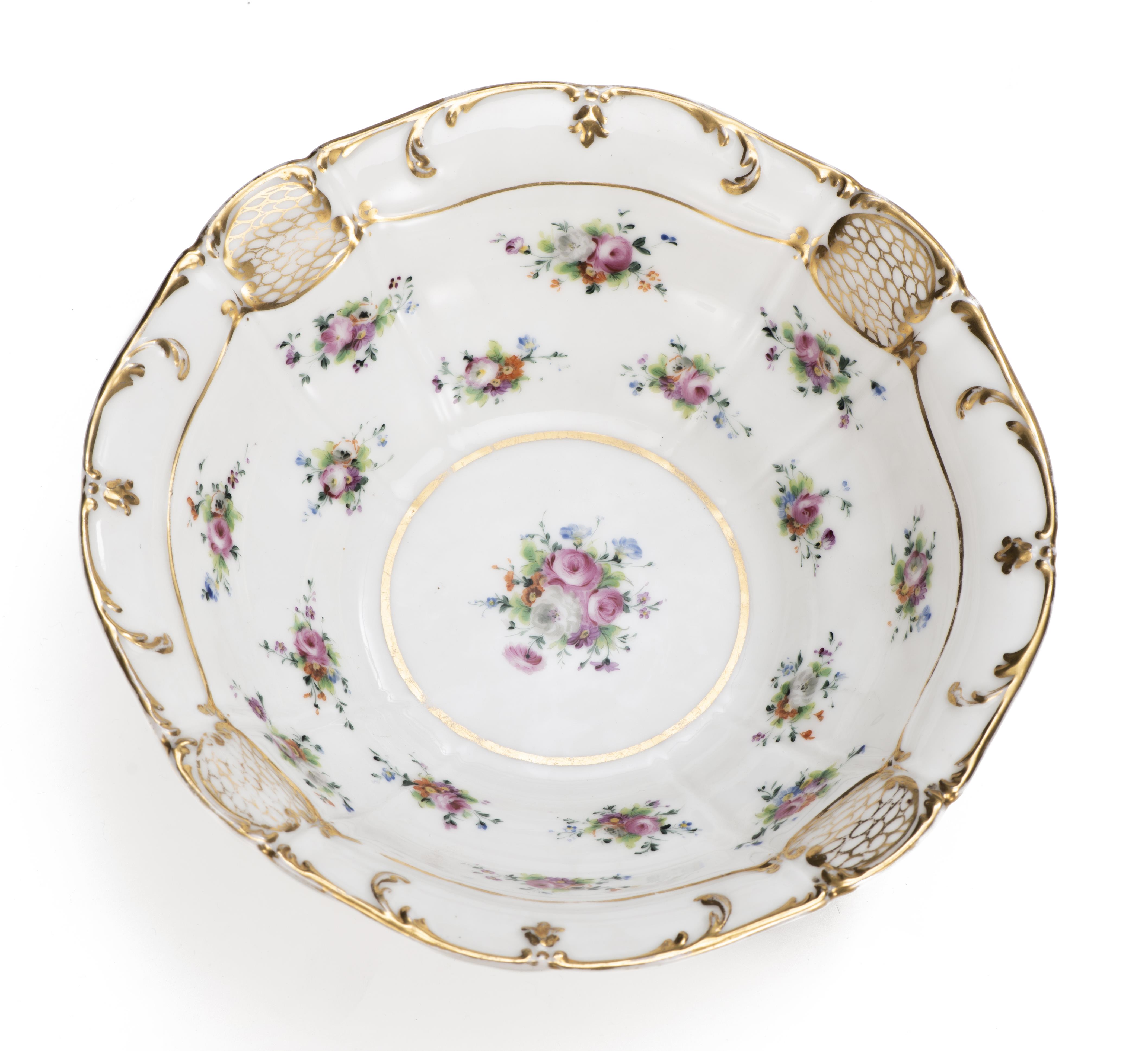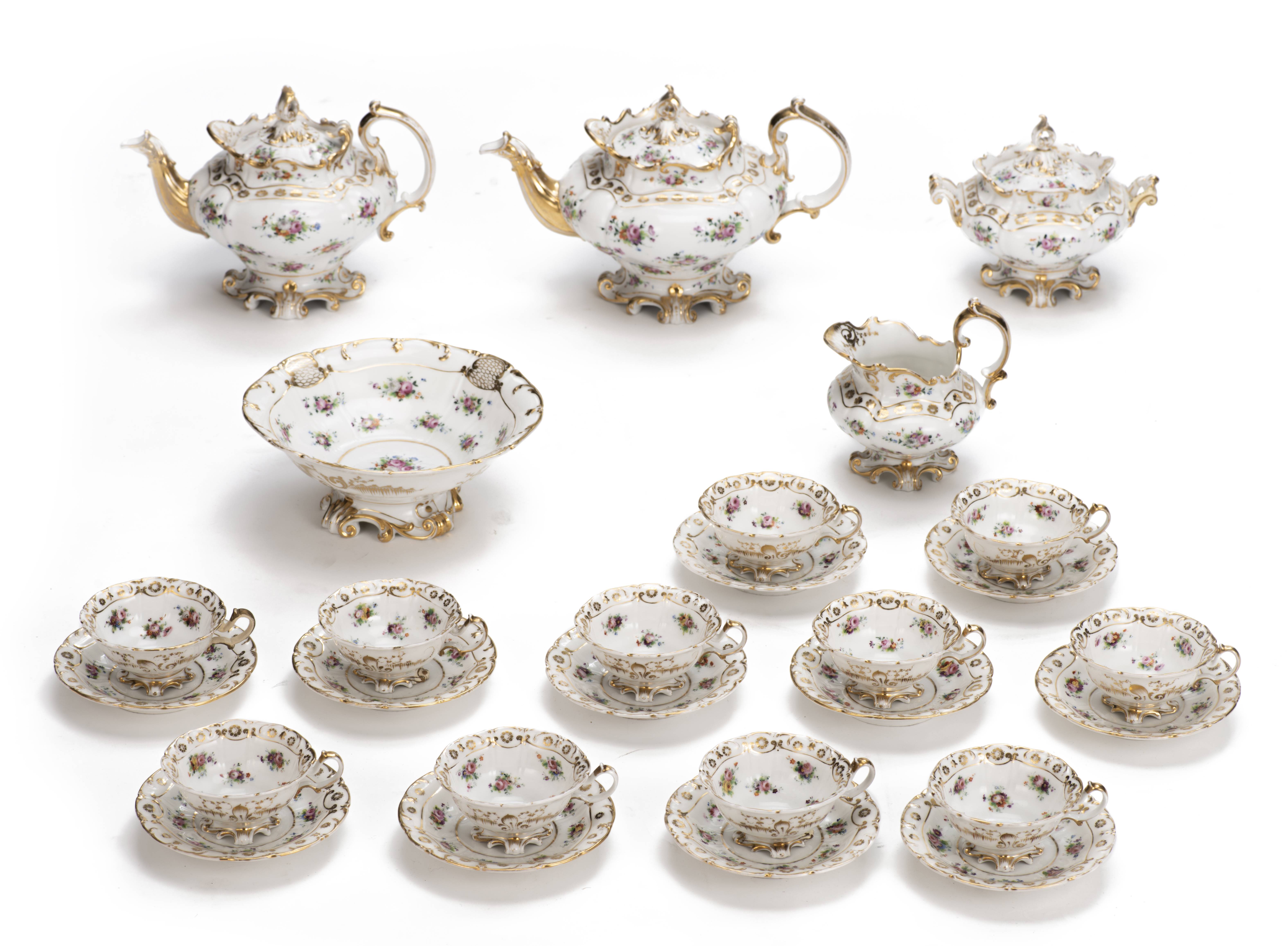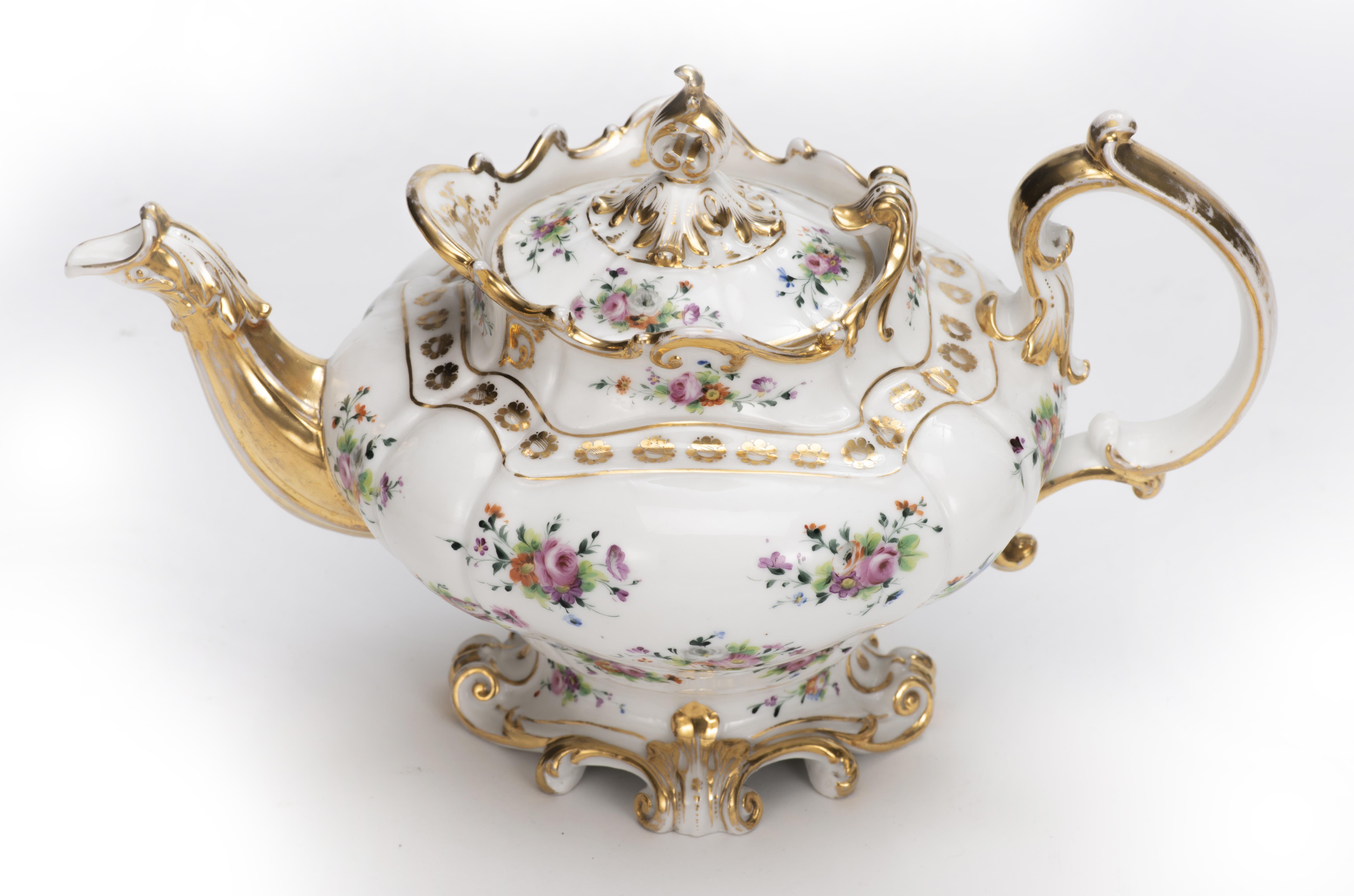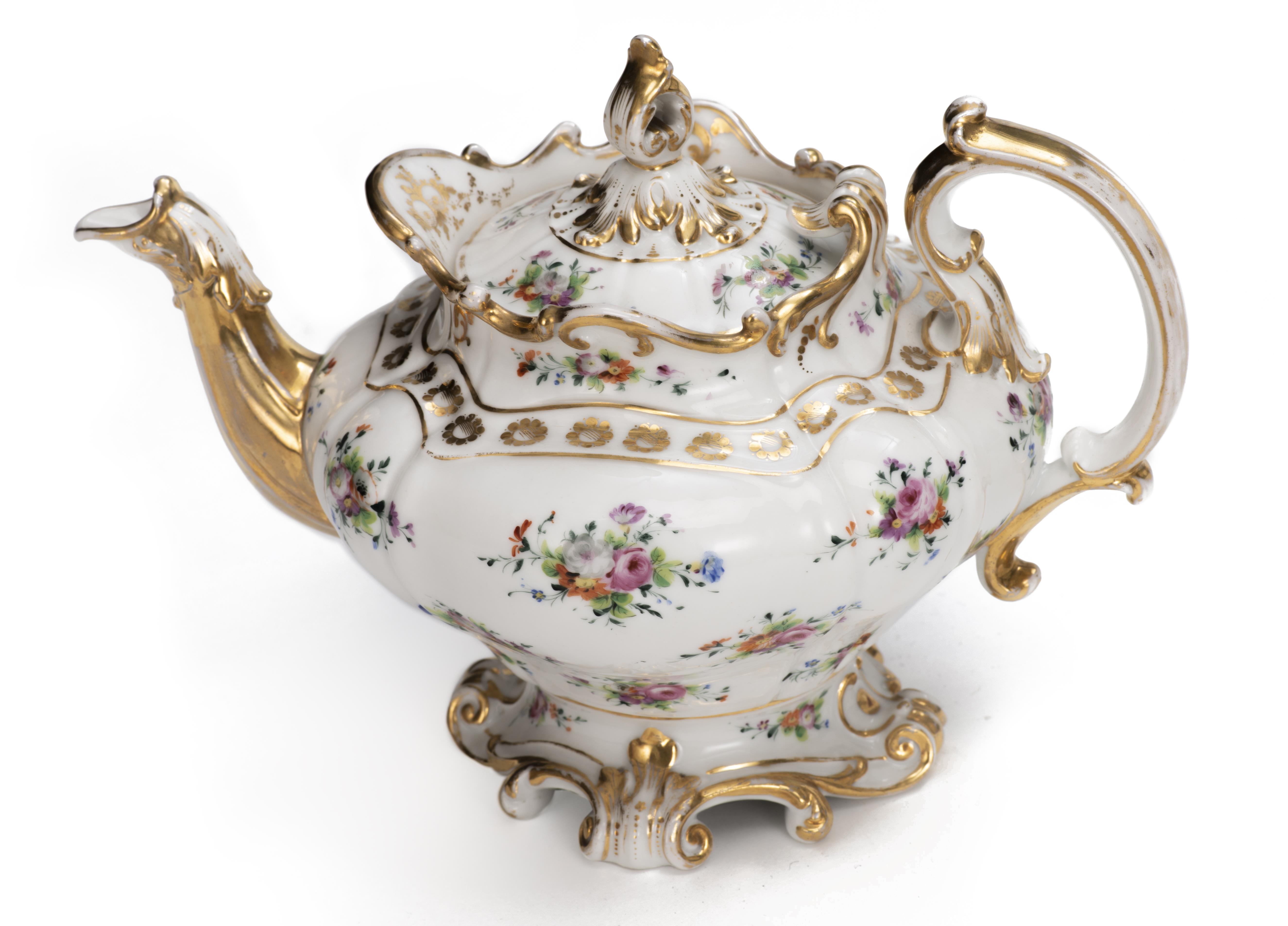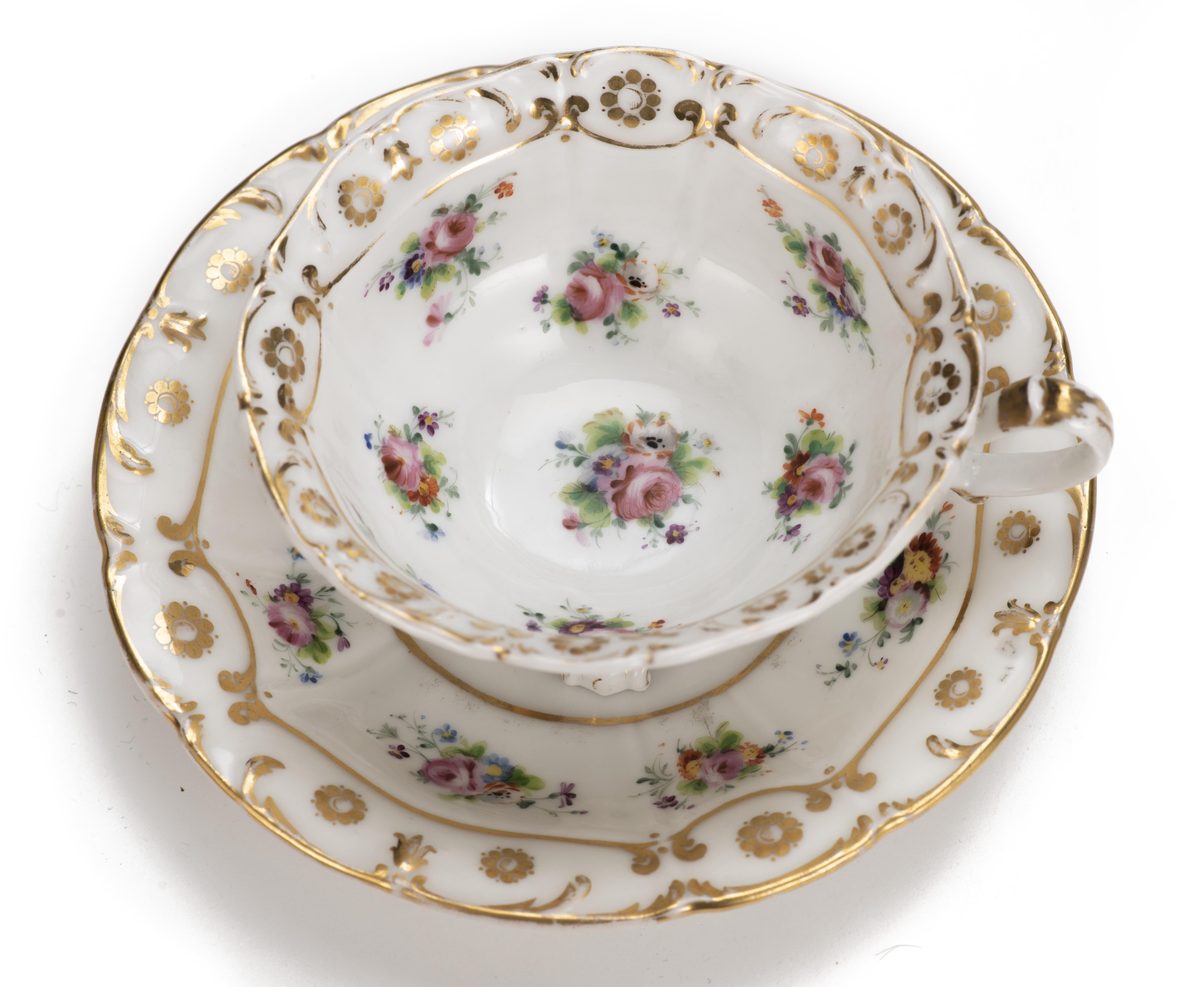 Service à thé en porcelaine de Paris d'époque Nap. III à décor floral et surdécor à l'or comprenant :