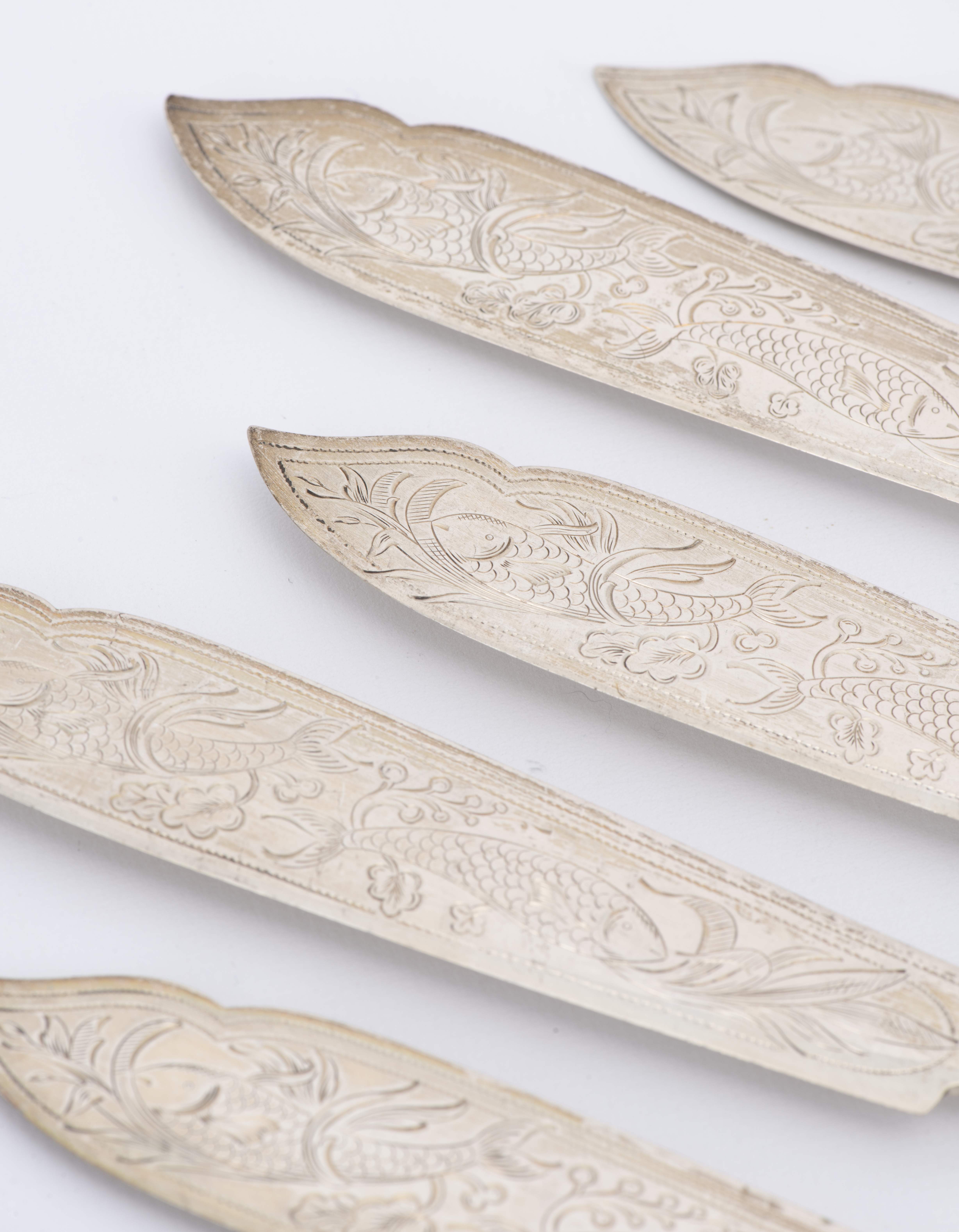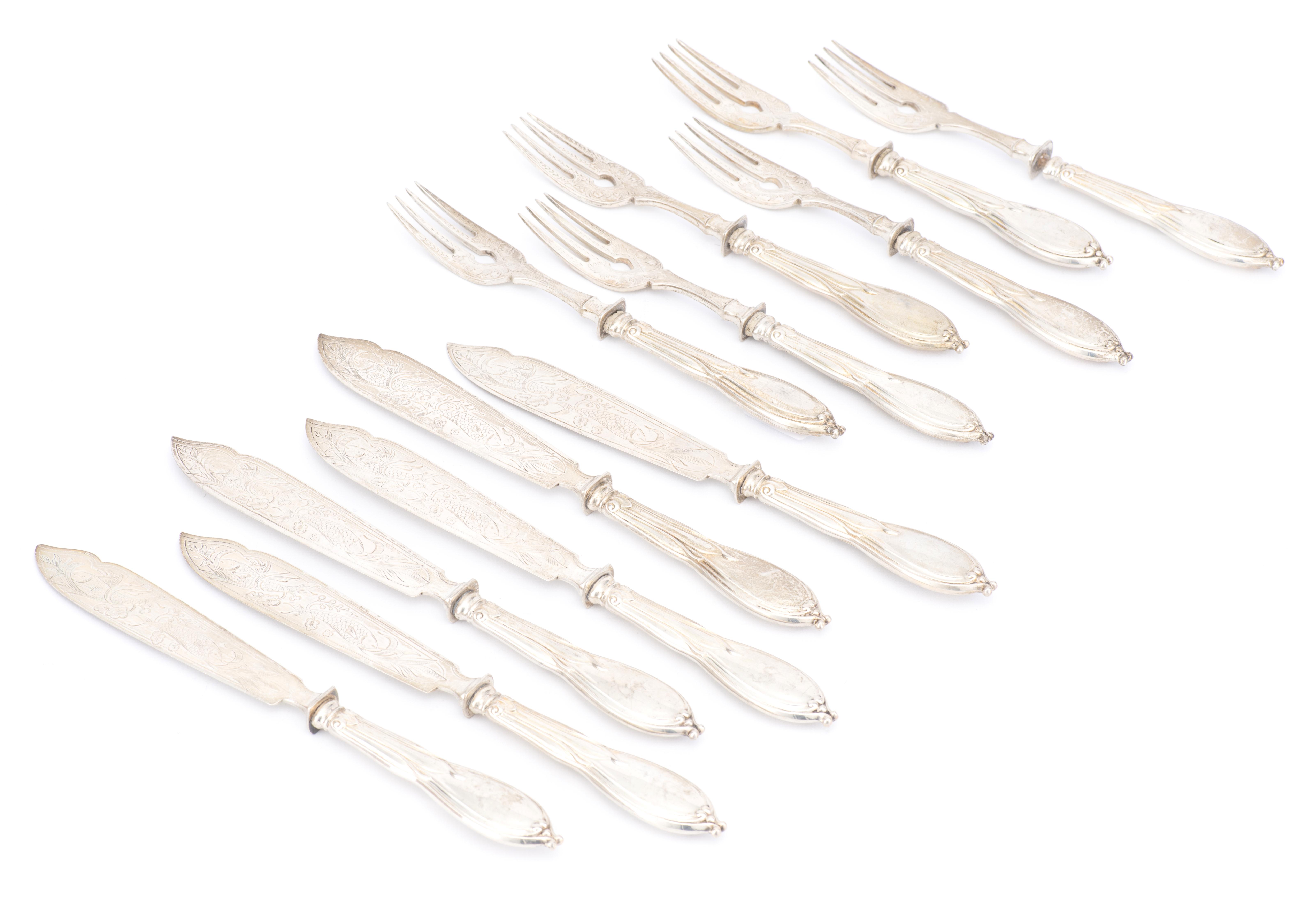 Six couteaux et fourchettes à poisson en argent .800 allemand
