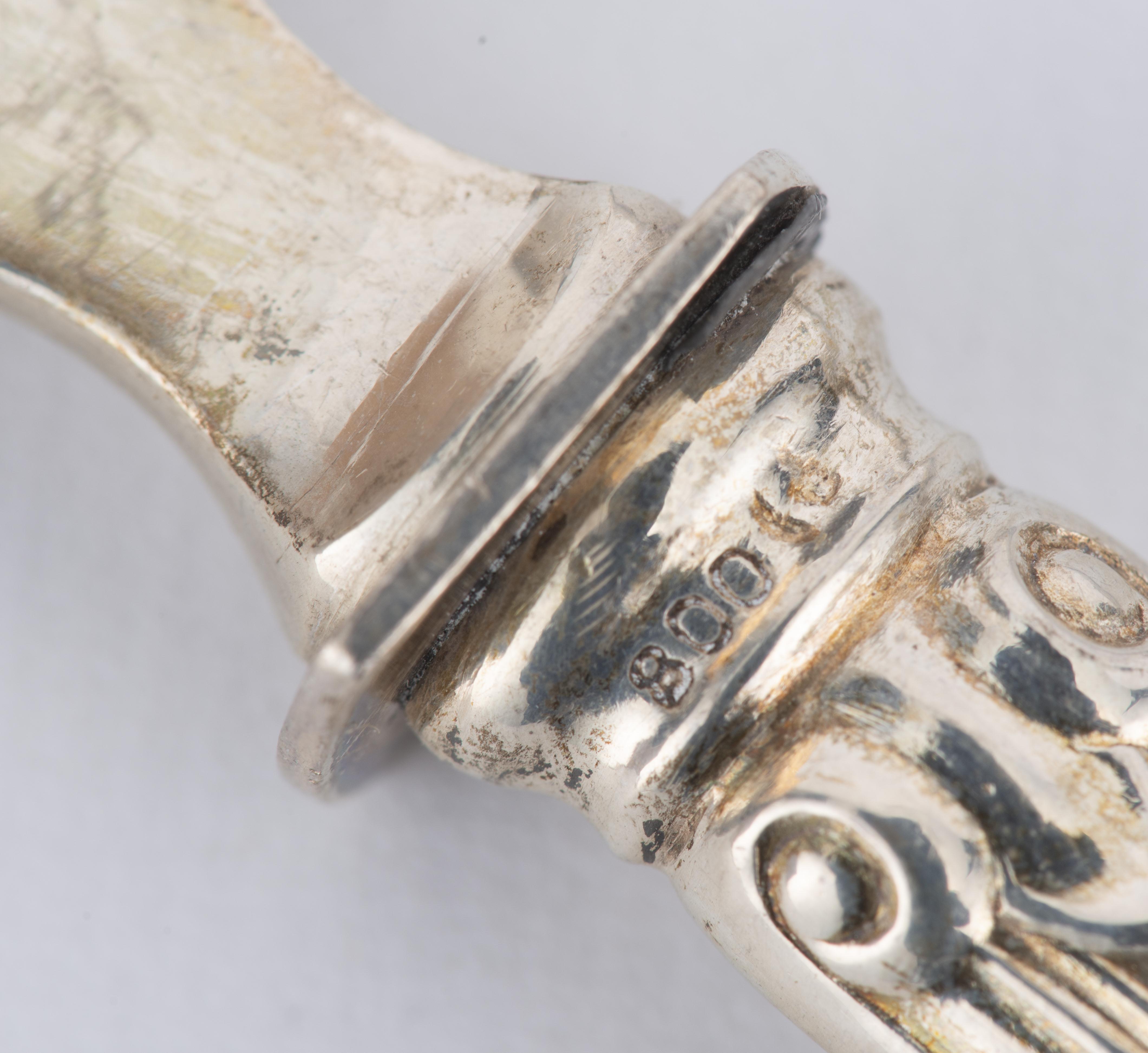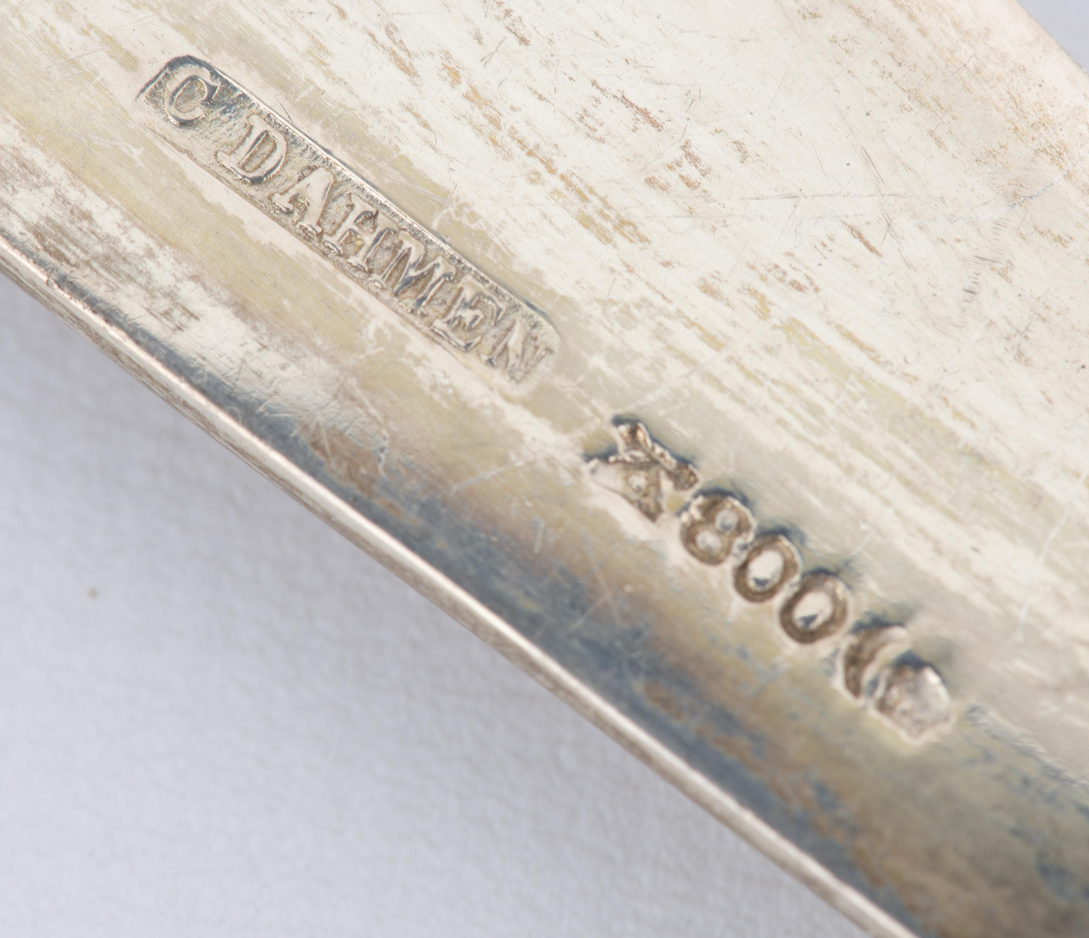 Six couteaux et fourchettes à poisson en argent .800 allemand par C DAHMEN de style Art Nouveau. Lame des couteaux en argent et manches fourrés, idem pour les fourchettes.