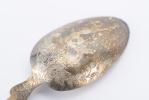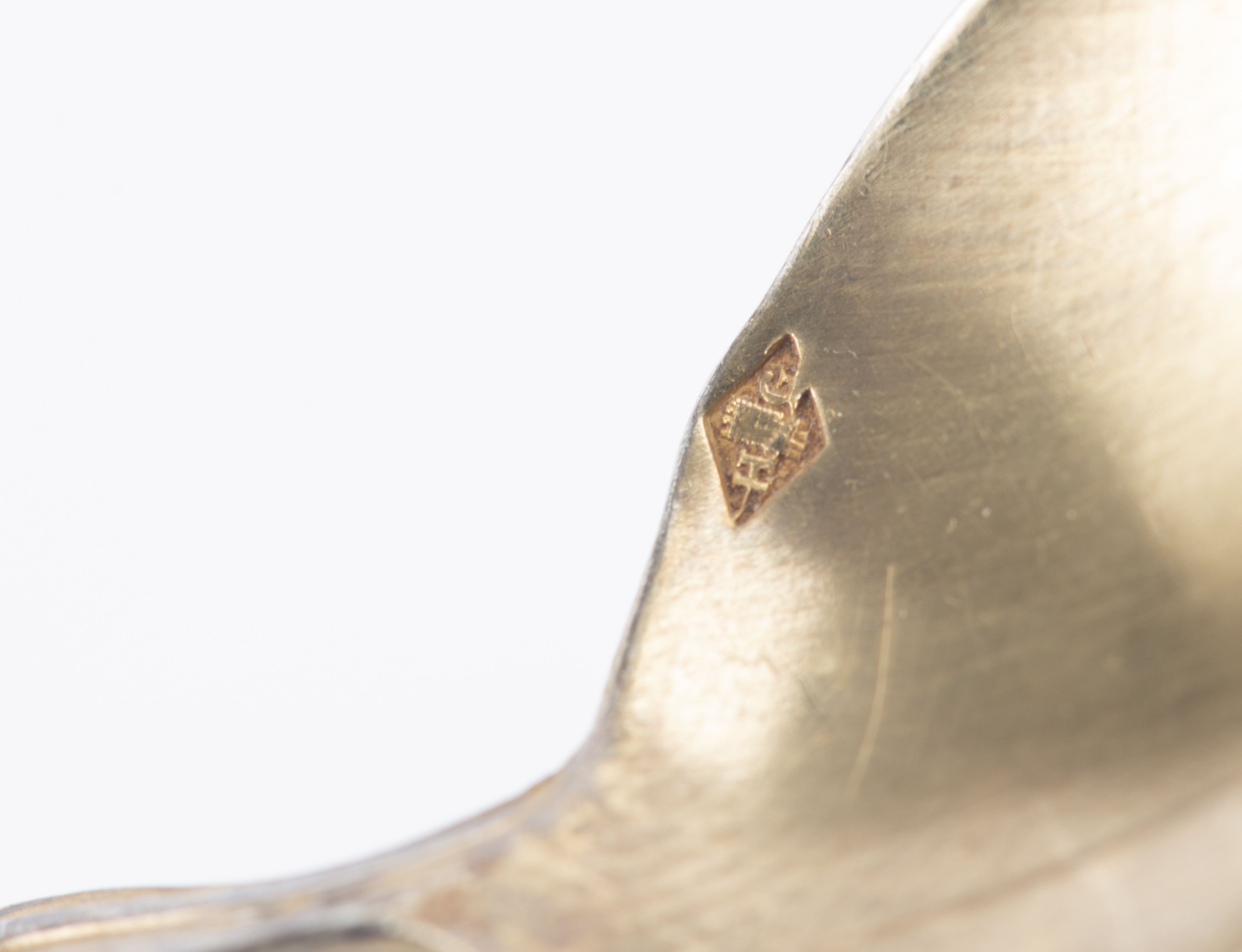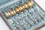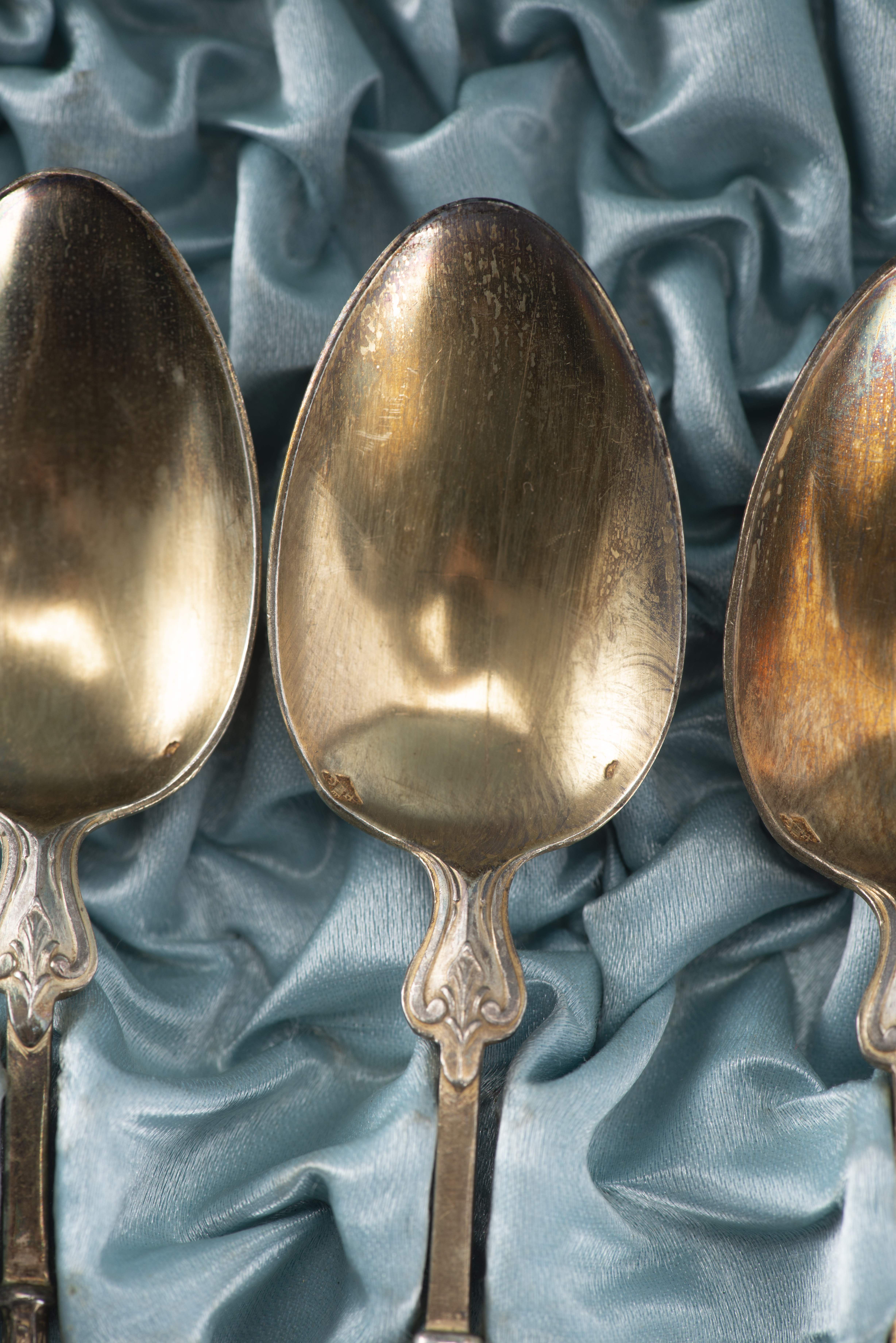 Six cuillères à moka en argent .800 à manche hexagonal.