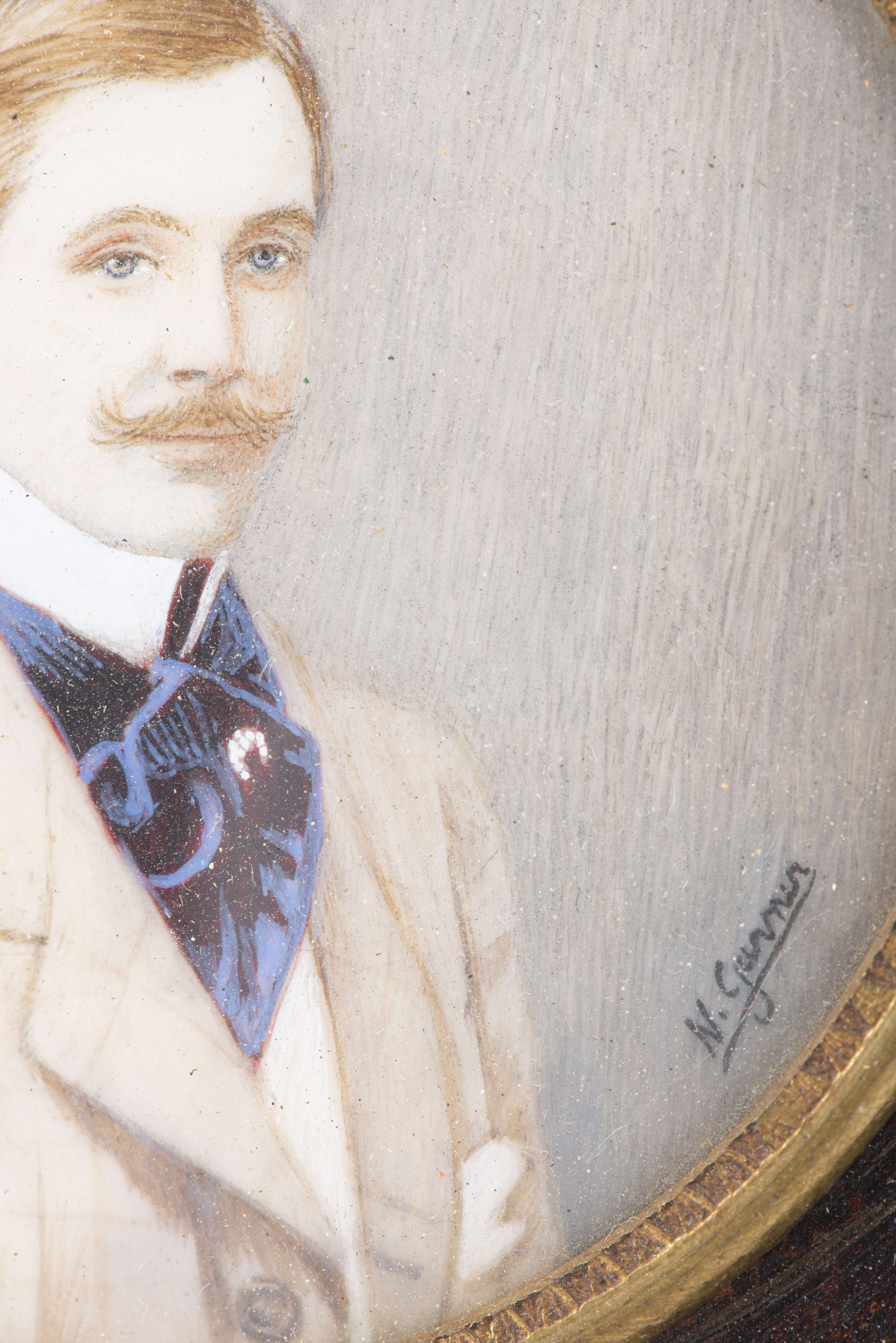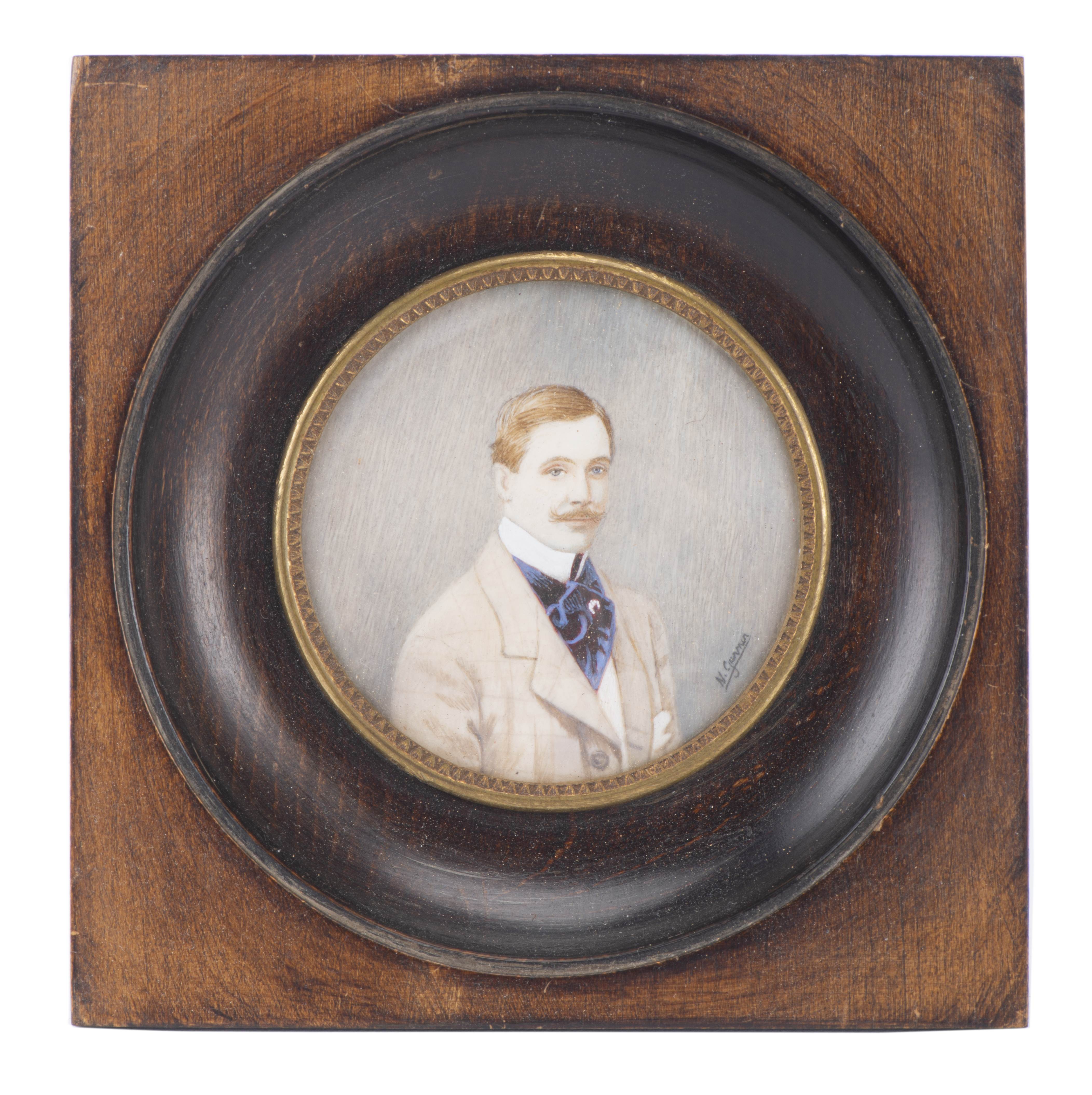 - signé N. Garnier (portrait d'homme du XIXe), D. 6 cm, cadre 13 x 12.8 cm