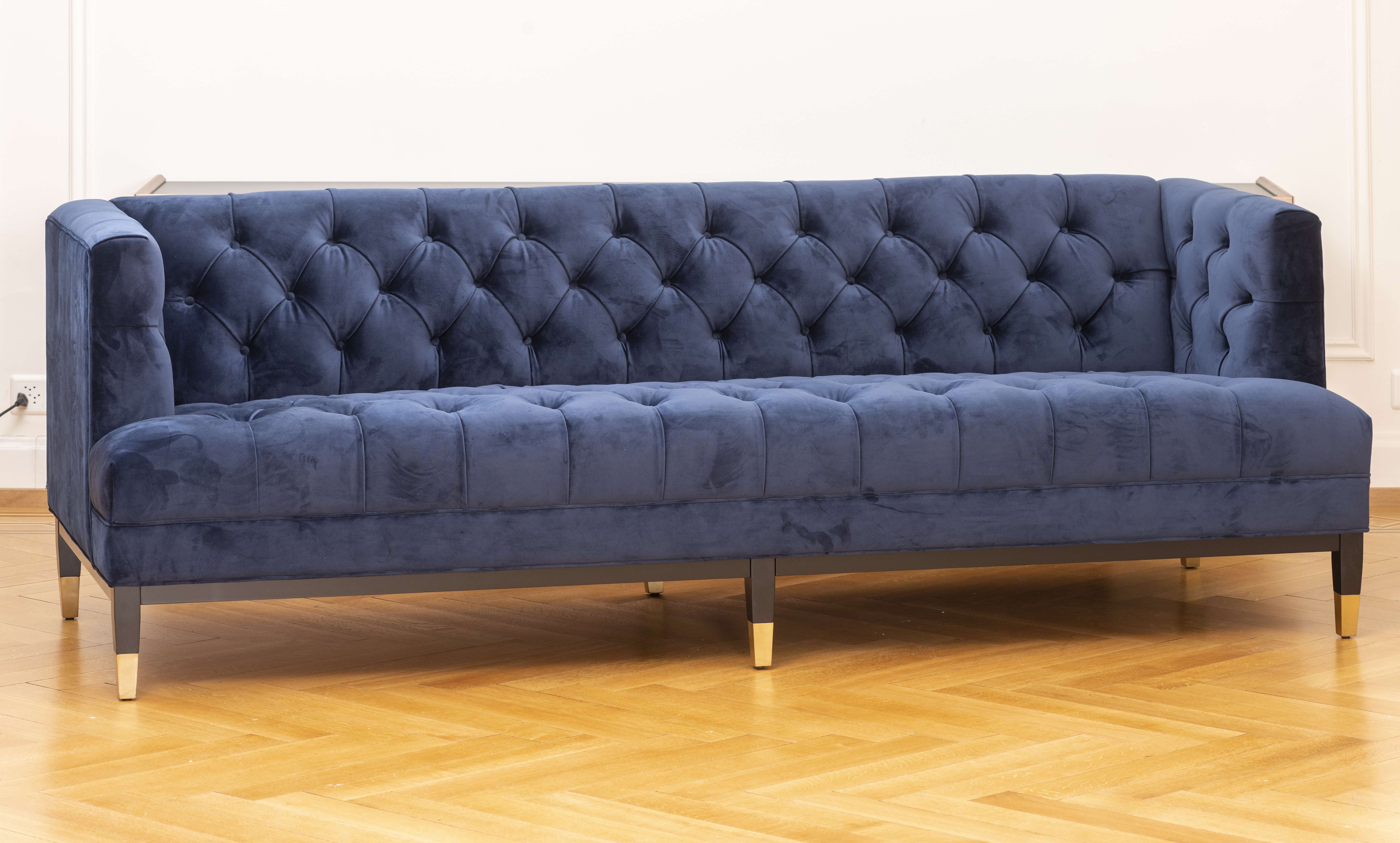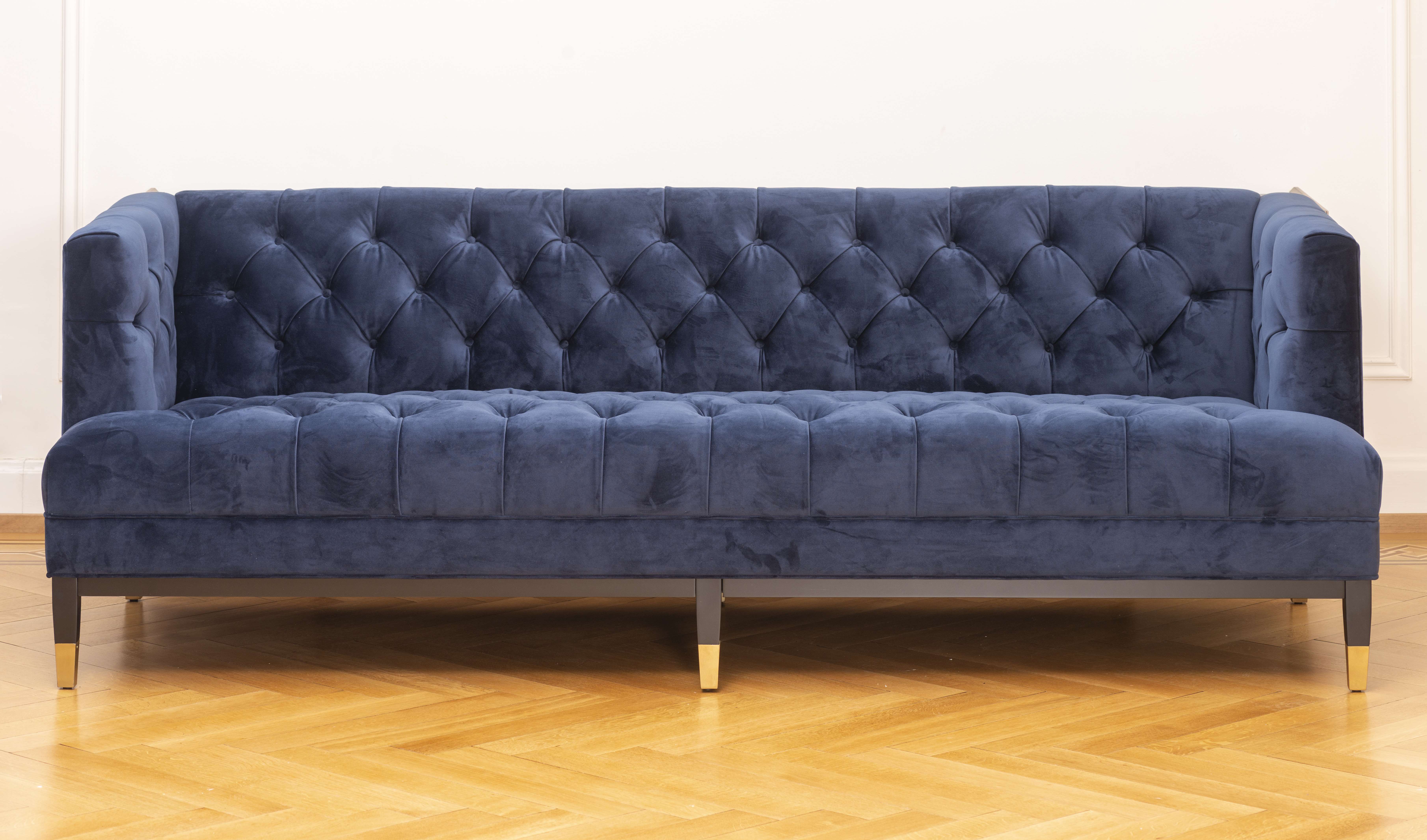 Sofa Castelle de la maison Eichholtz, XXIe, Savona midnight blue velvet.