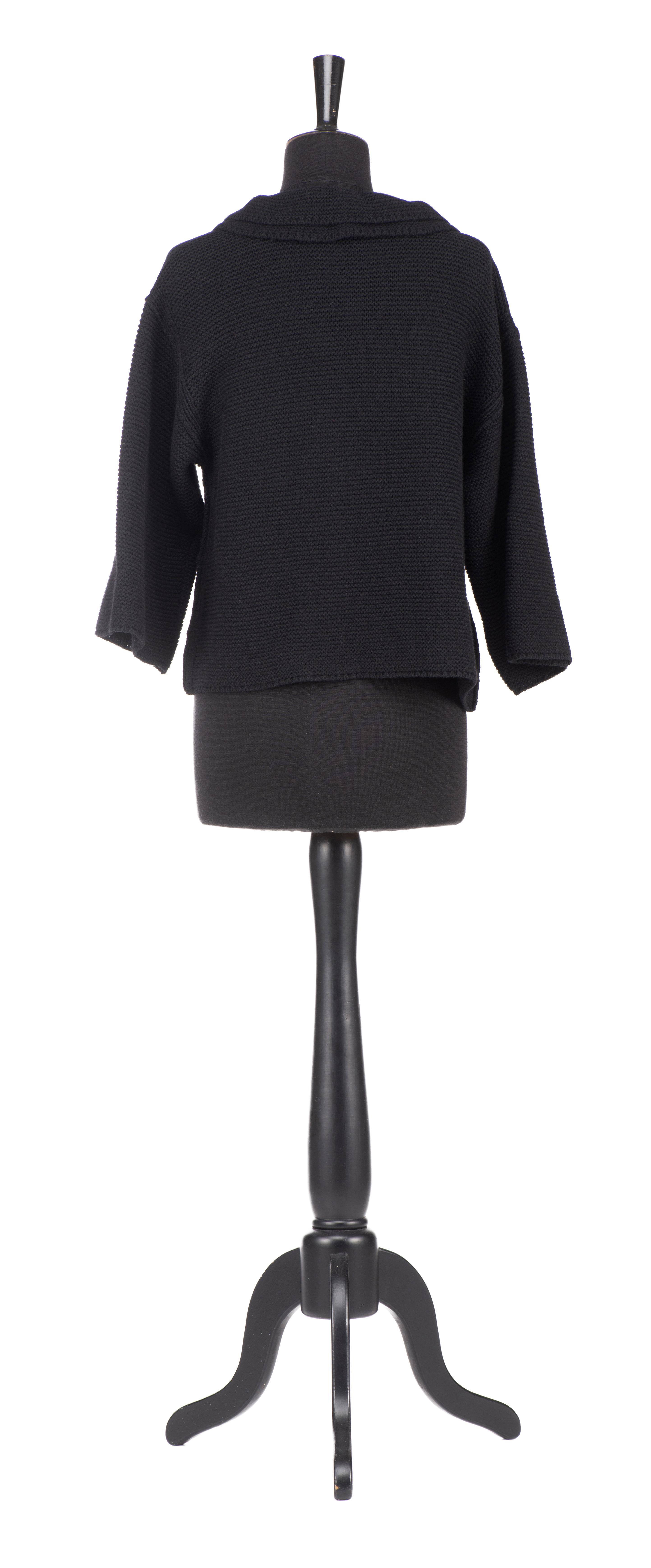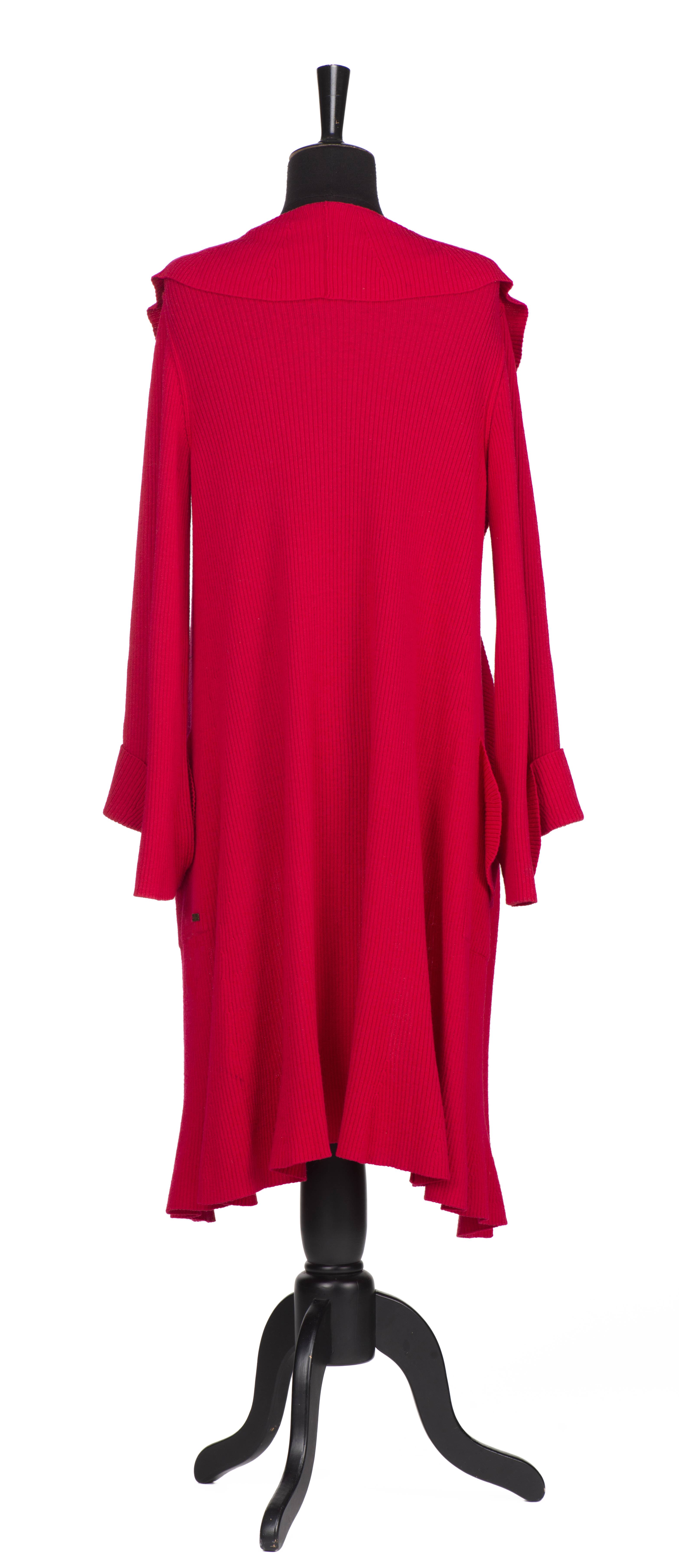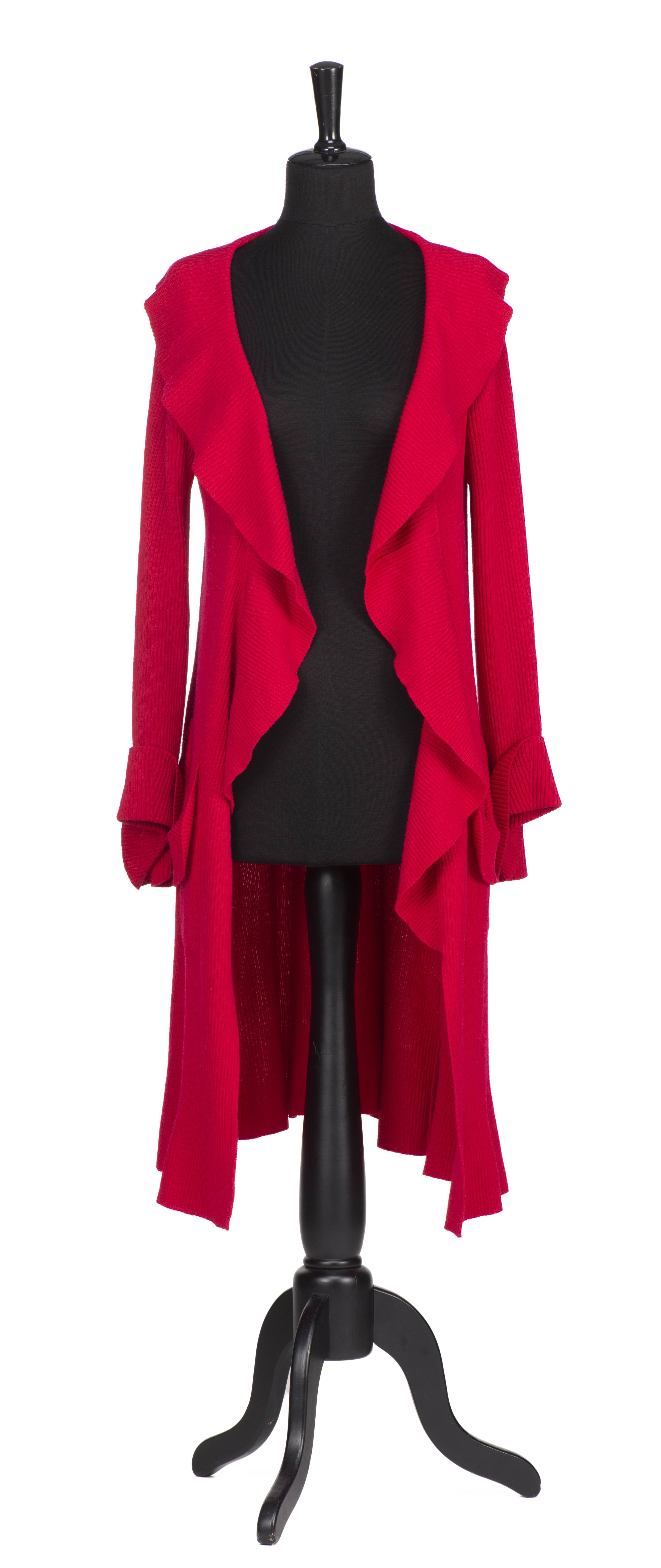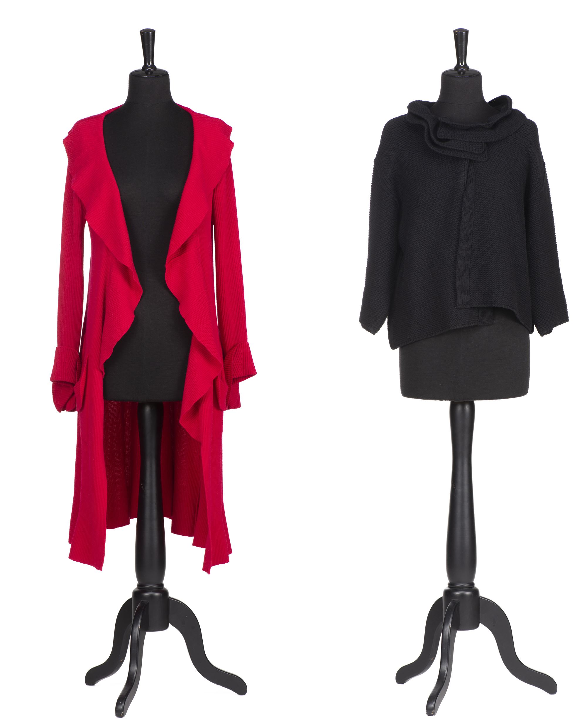 SONIA RYKIEL Paris, veste maille fuchsia, on y joint une veste noire courte en lainage à col à volants.