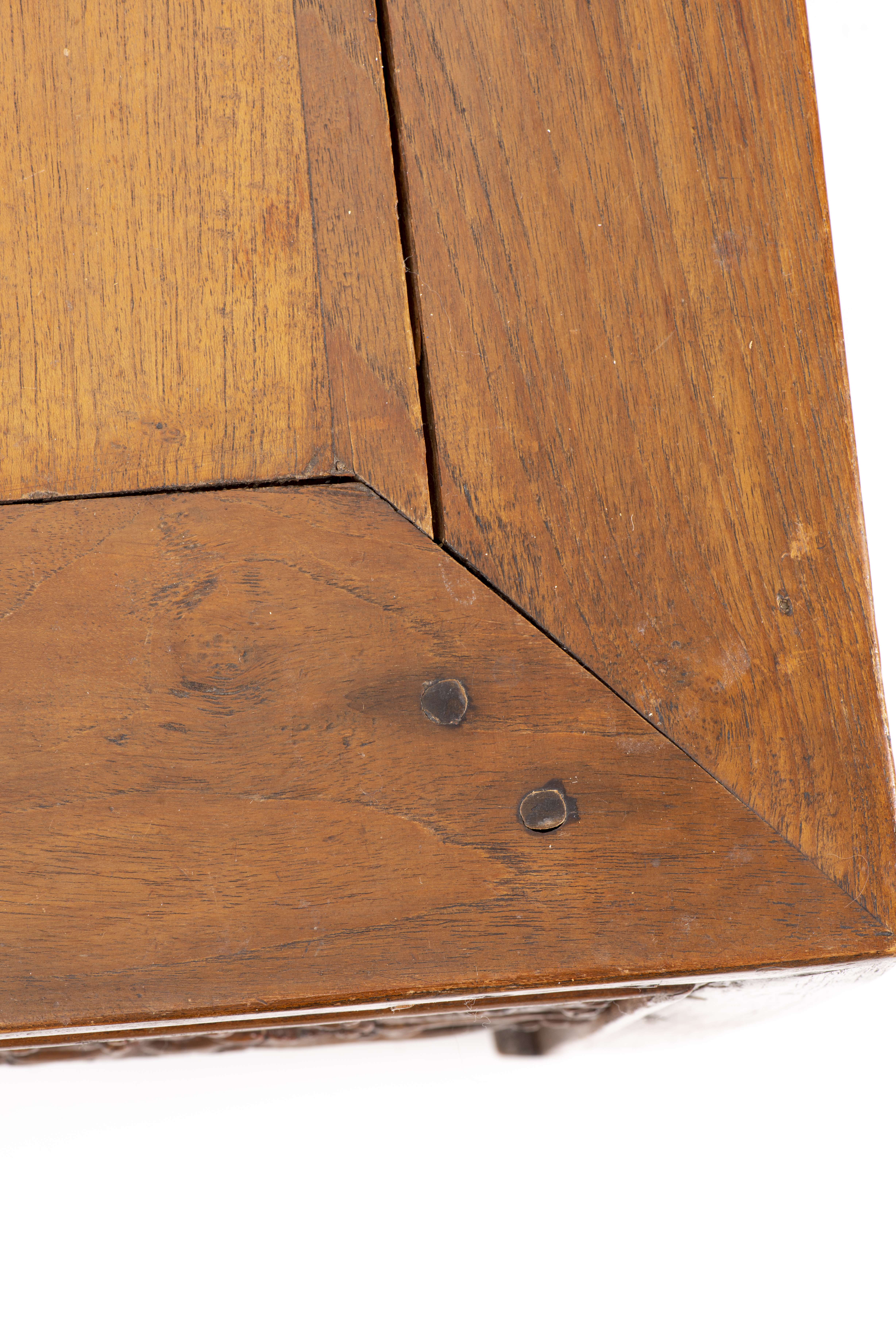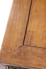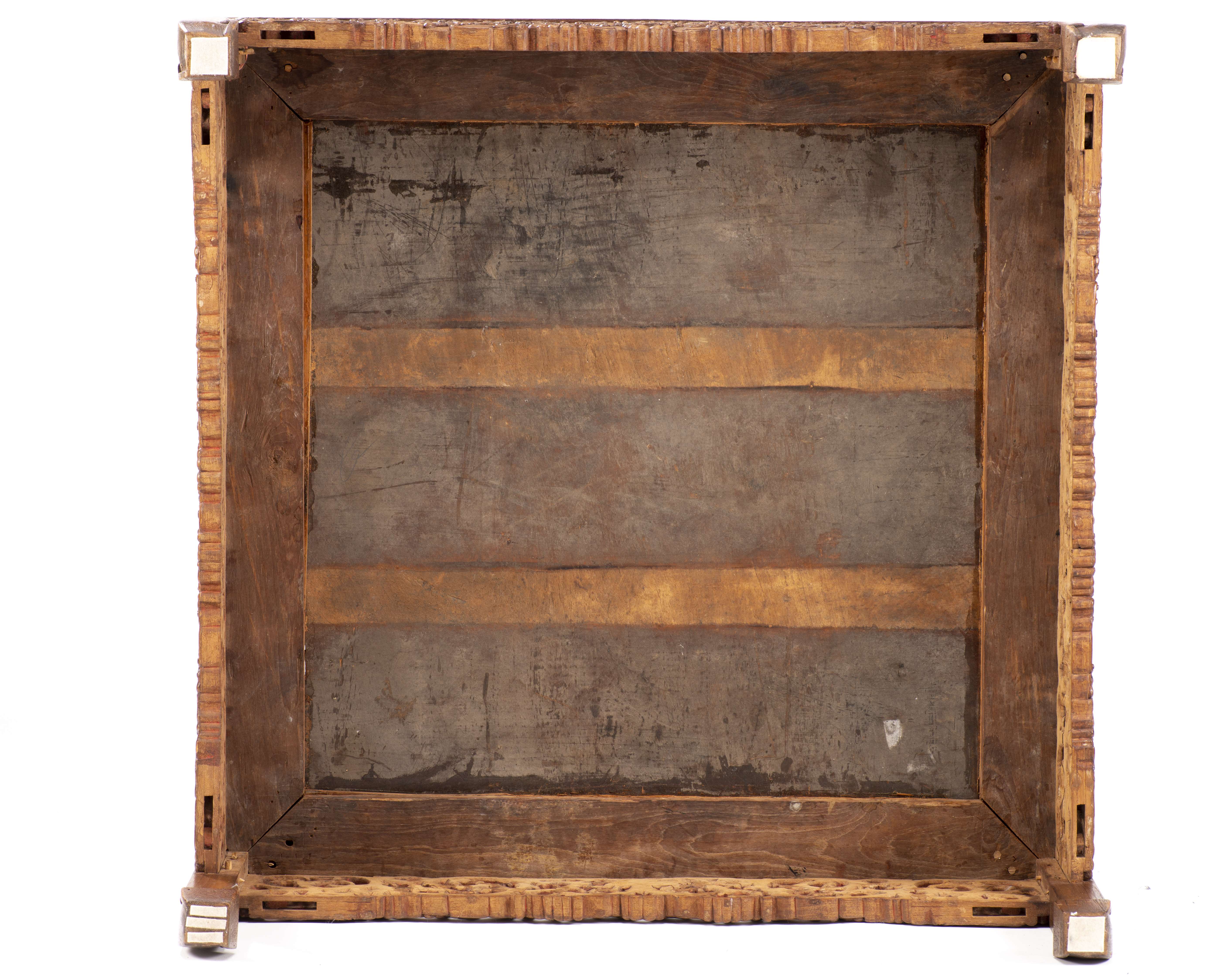 Table basse carrée en bois dur à décor ajouré de nuages dans le bandeau.