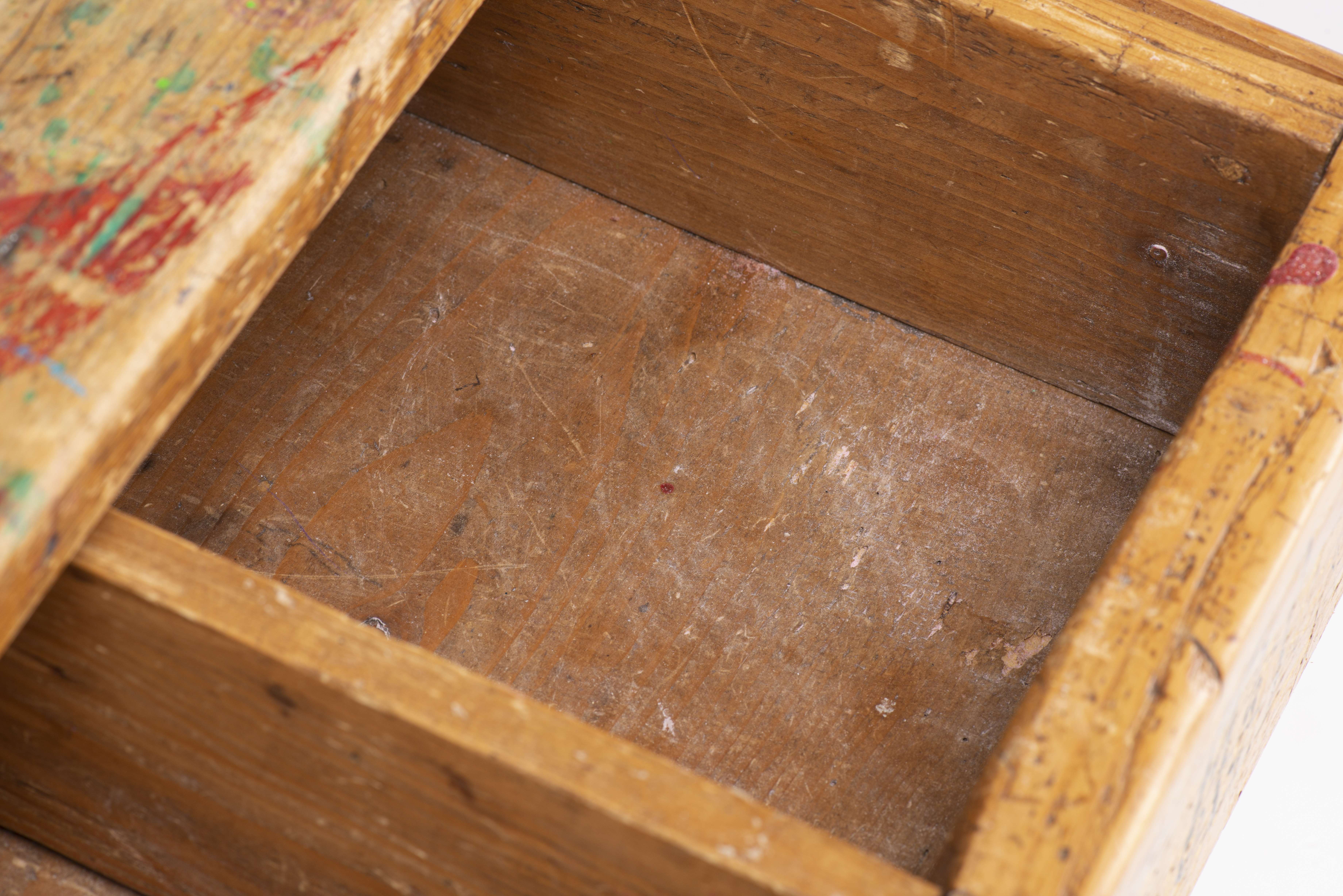 taches de peinture, rayures et paillettes sur le plateau