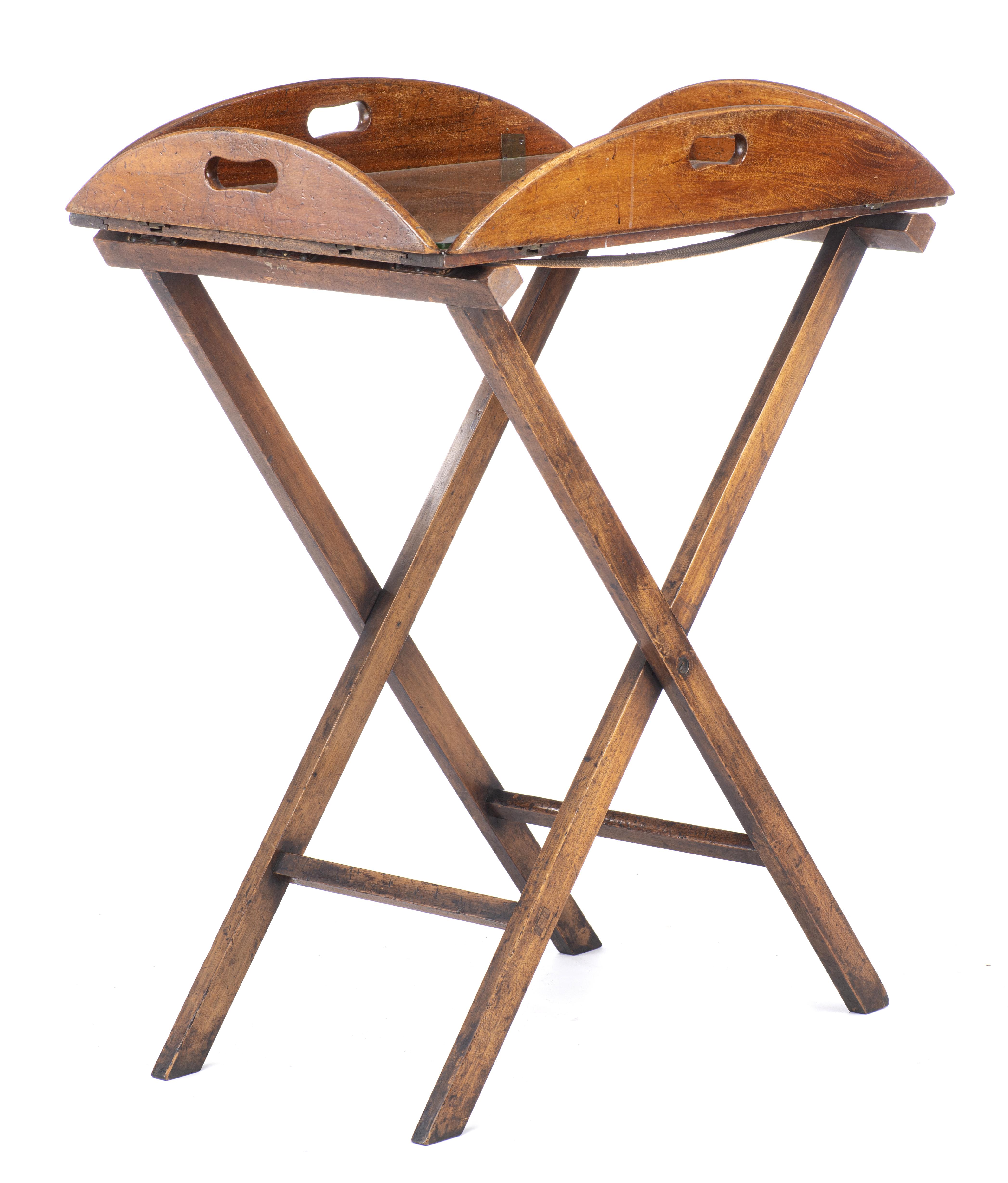 Table de marine en acajou à plateau amovible ovale à 4 bordures relevables, piétement déployant.
