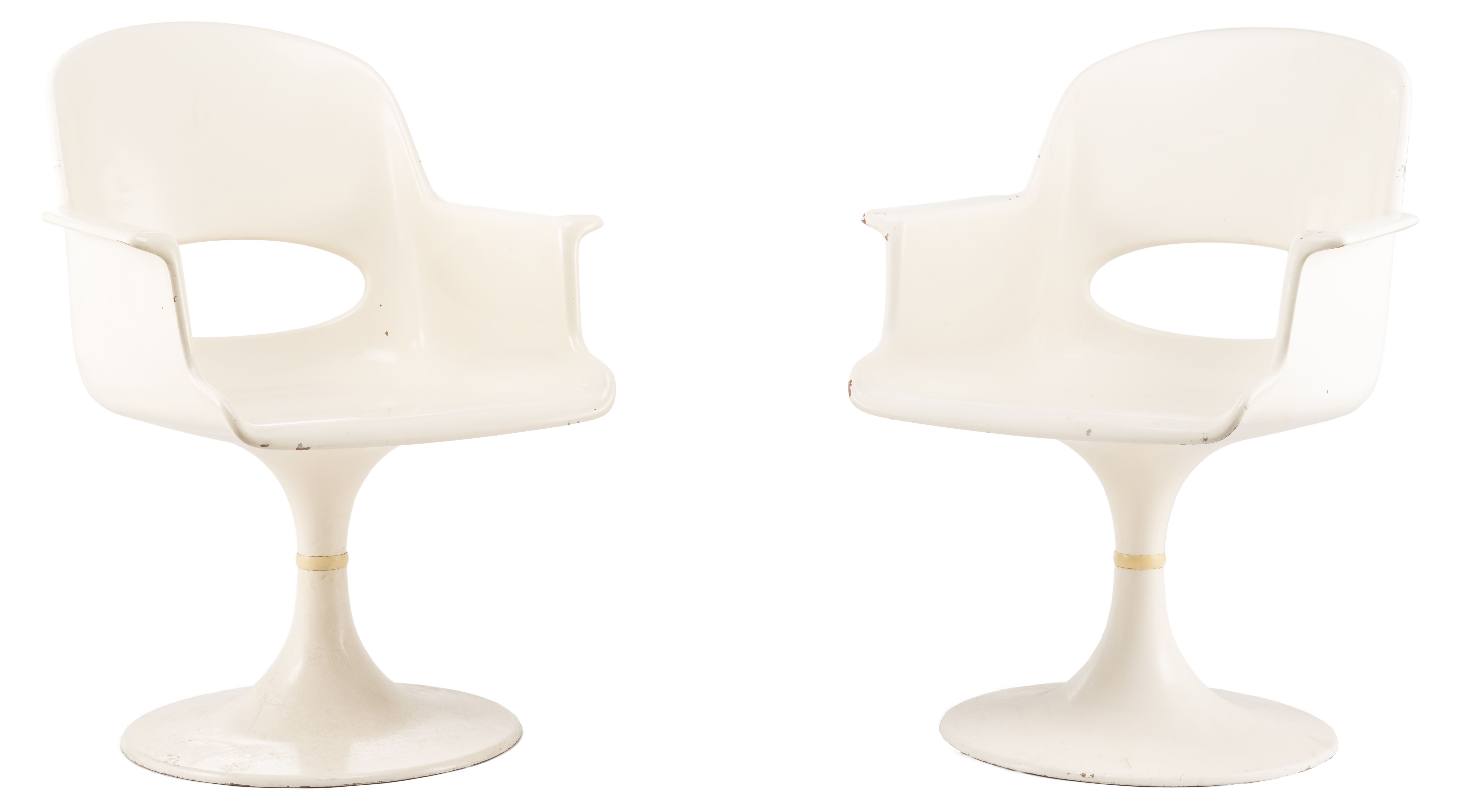 Table tulipe et ses quatre fauteuils en fibre de verre blanc. Années 60