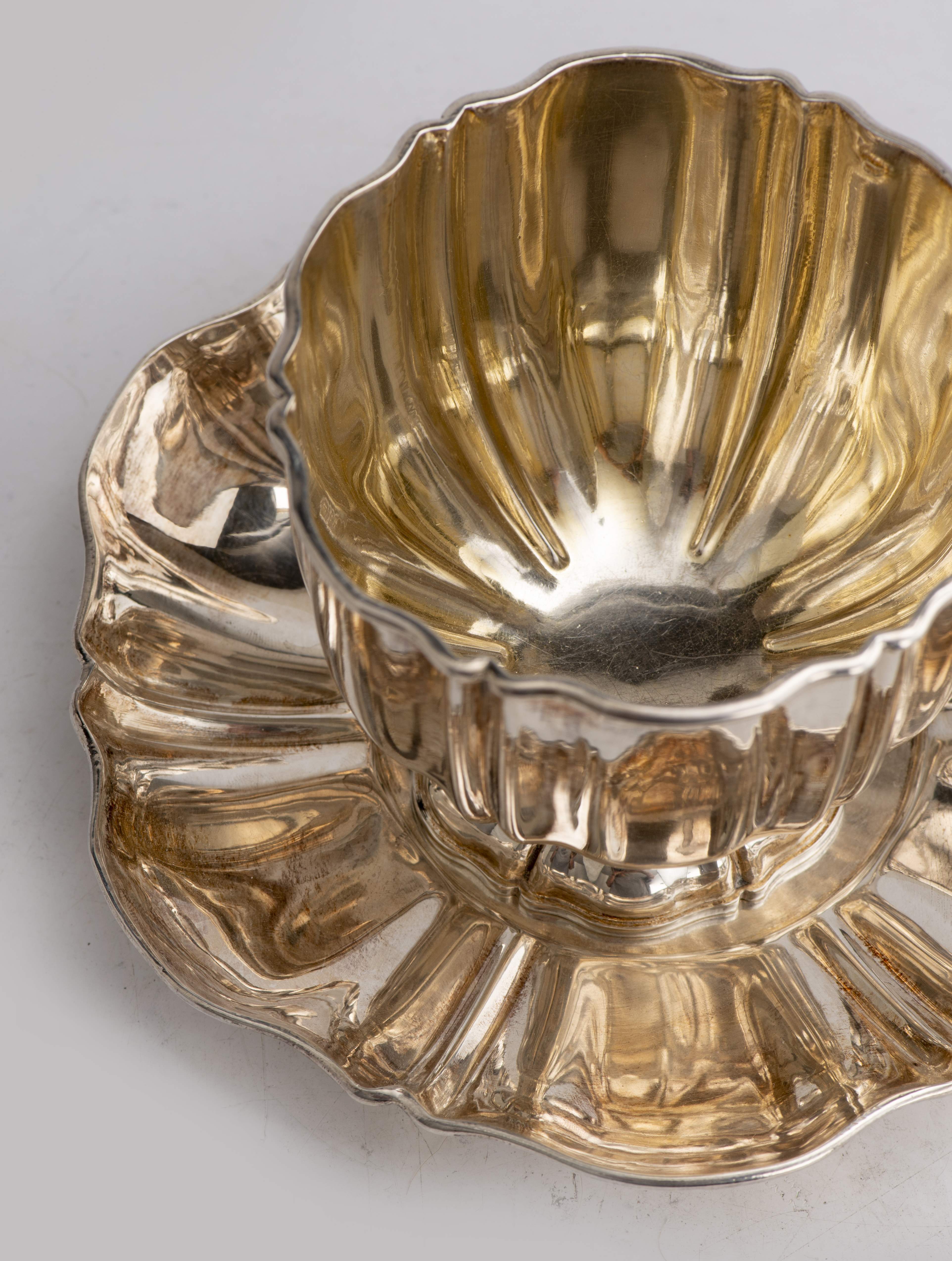 Tasse à chocolat et sous-tasse en argent français 1er titre avec intérieur vermeil