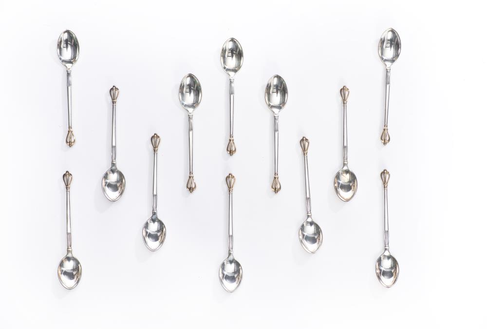 Douze cuillères à moka en argent sterling .925 et vermeil