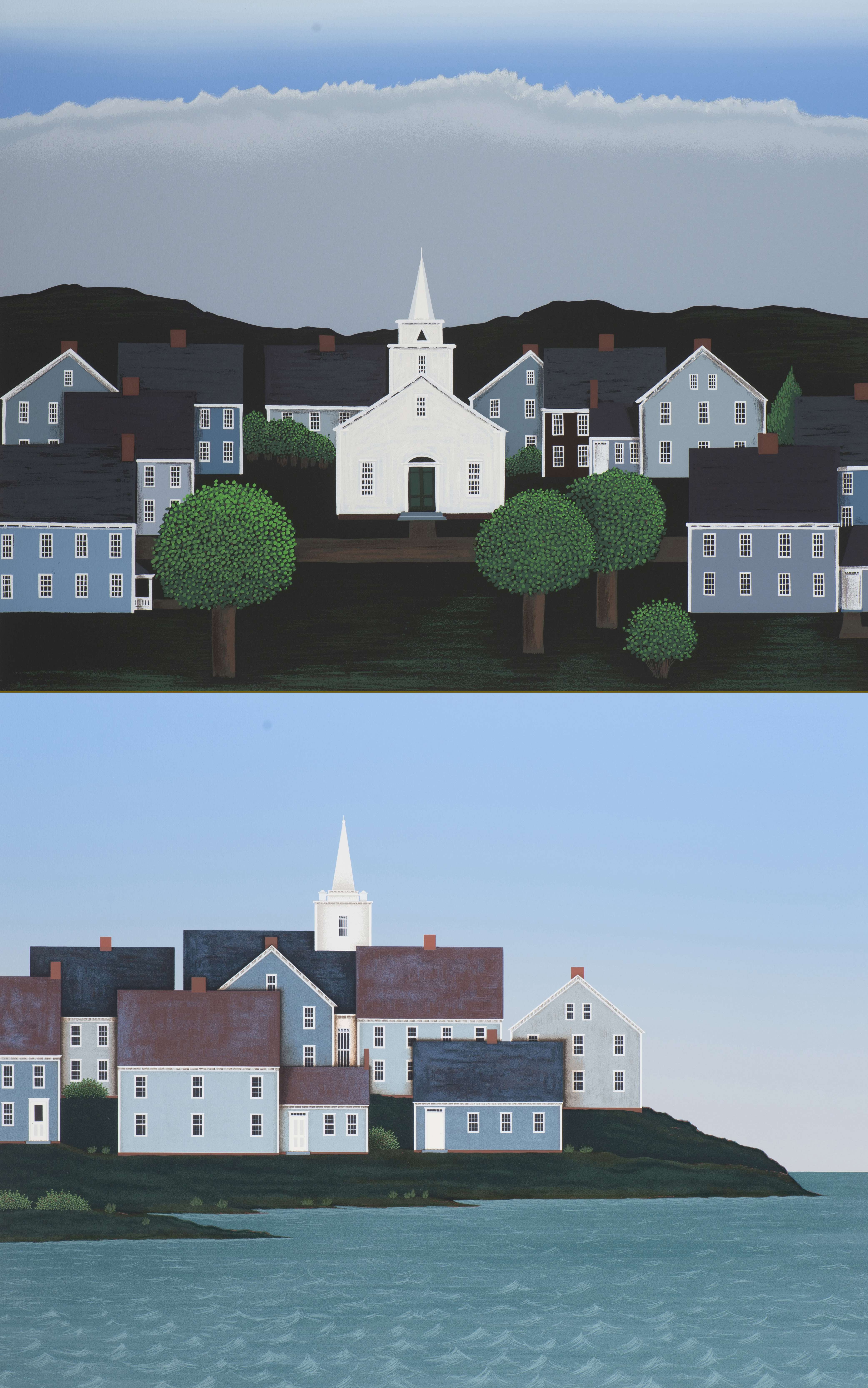 Ted Jeremenko (1938-), "New England Village" & "Bay Landscape"