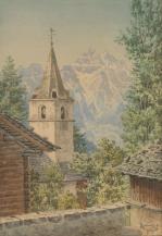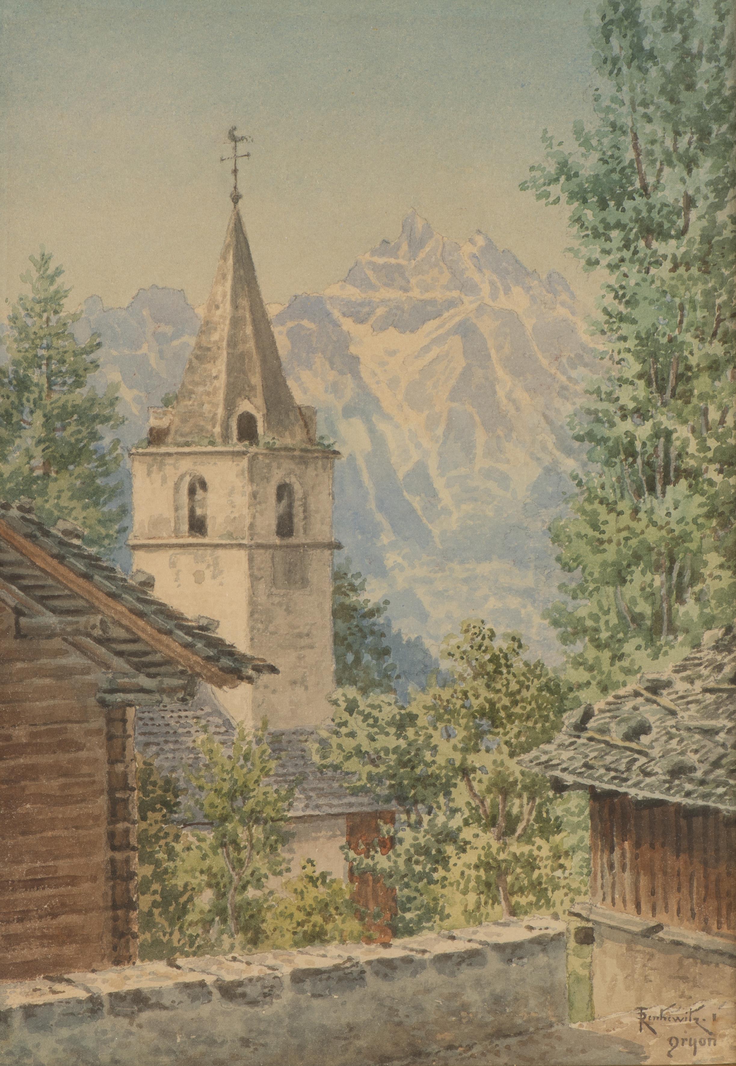 Théodore RENKEWITZ (1833-1912),"Le bourg de Gryon", aquarelle.