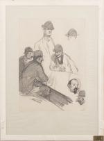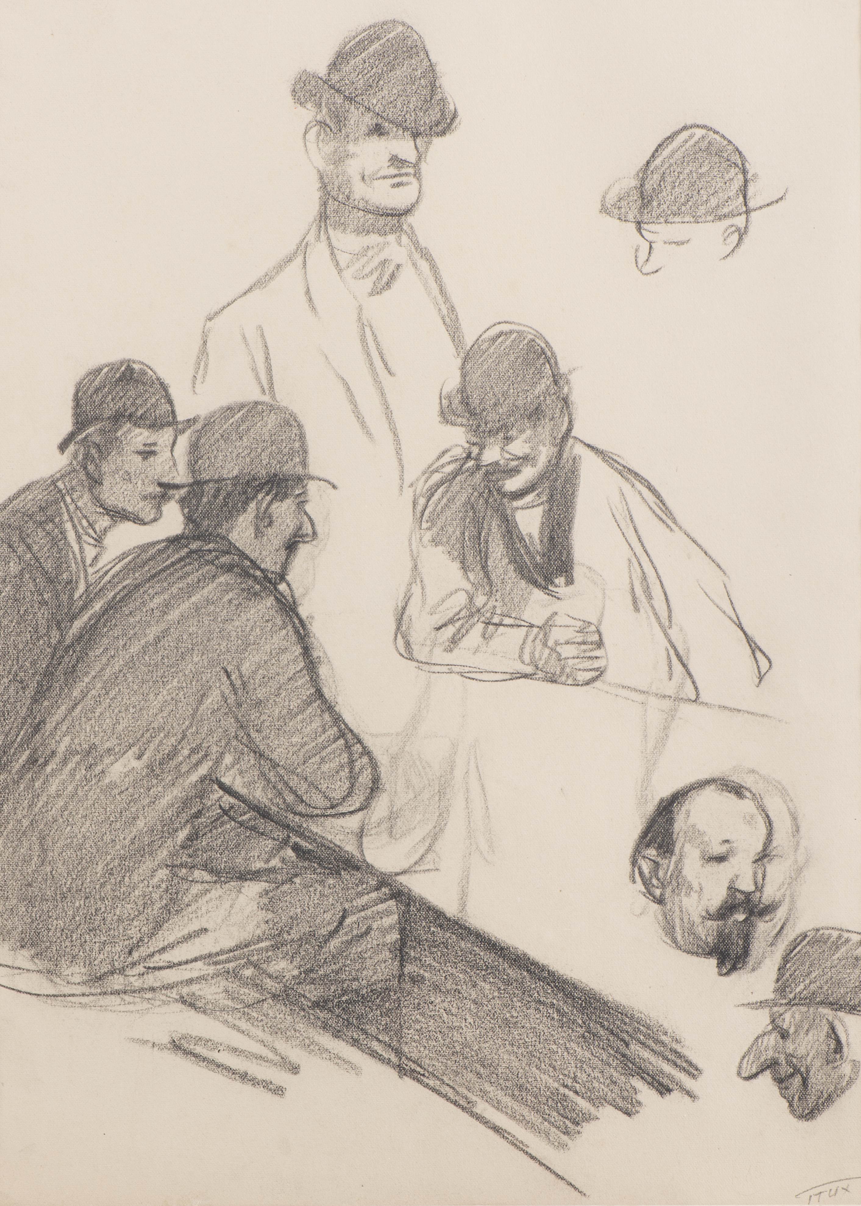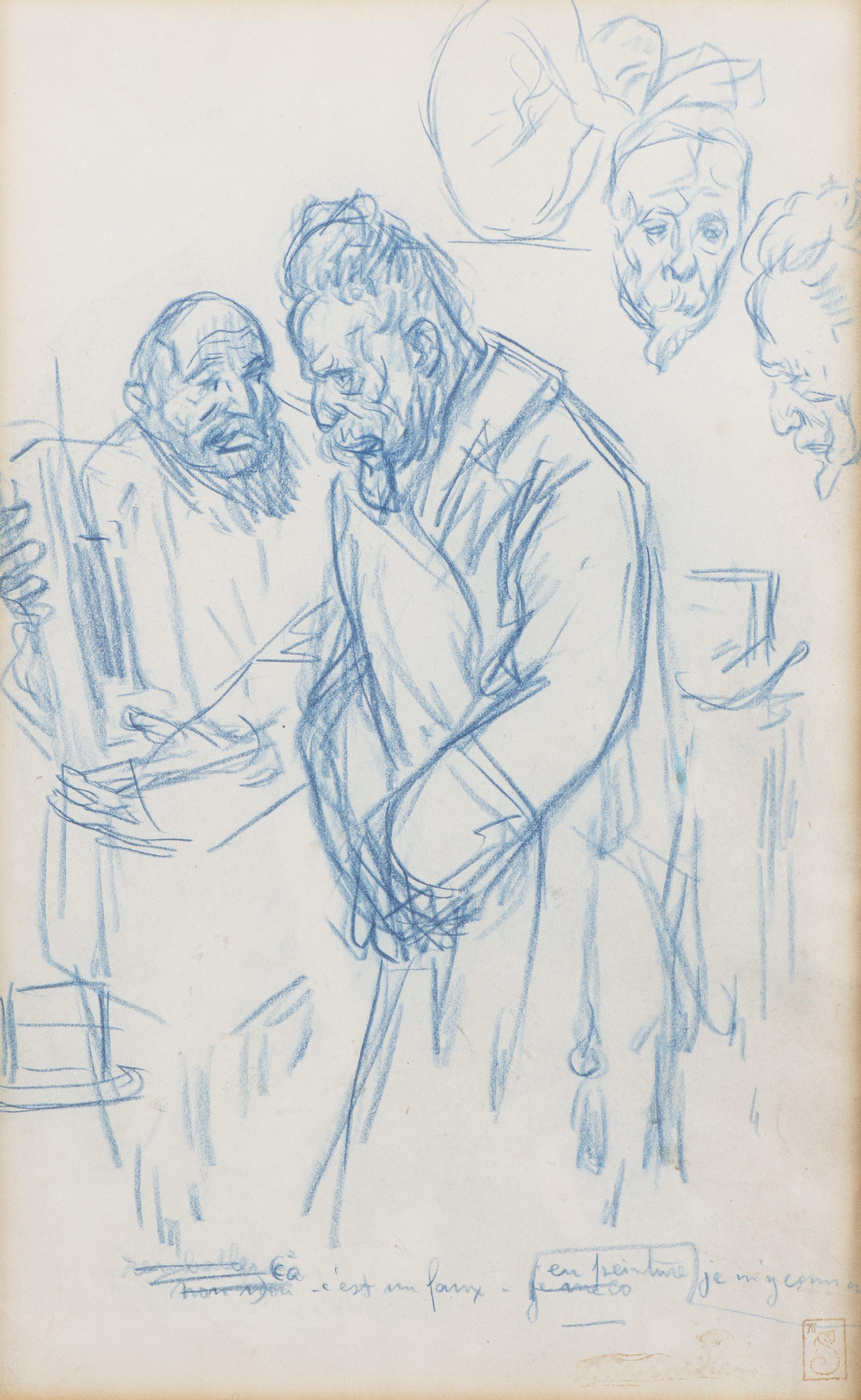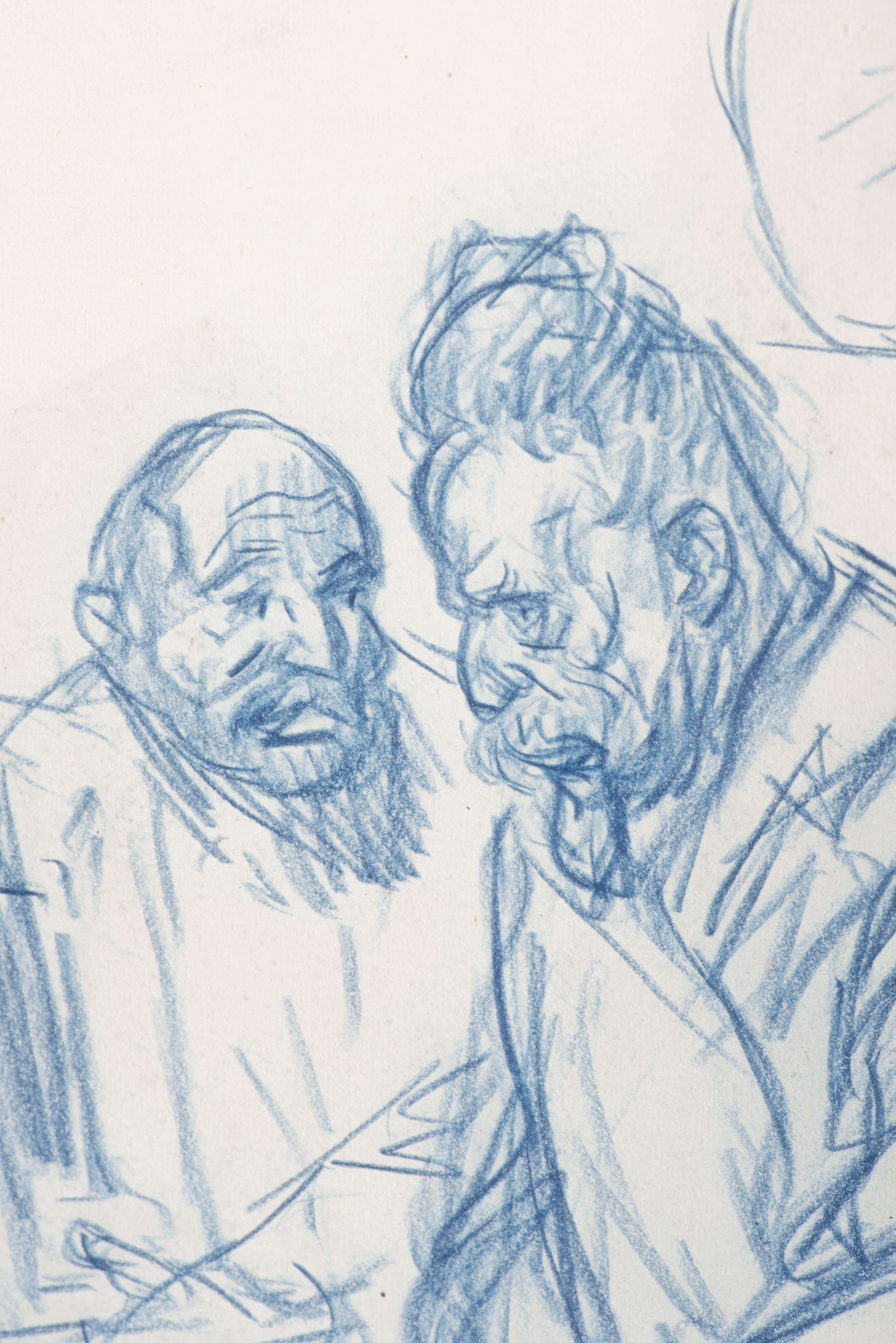 - "Etude d'hommes", crayon bleu sur papier, tampon de l'artiste, ns. 25x40 (à vue)