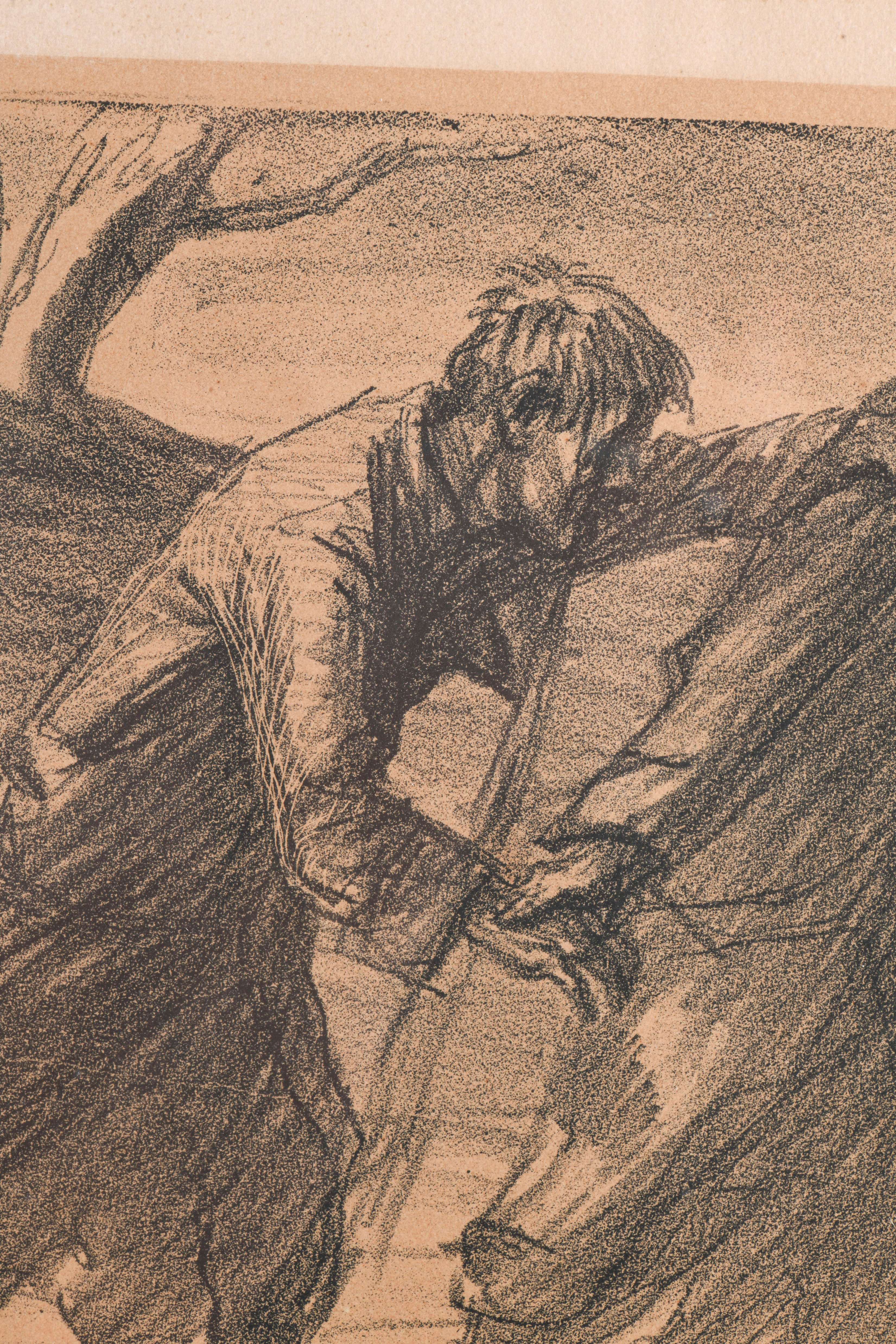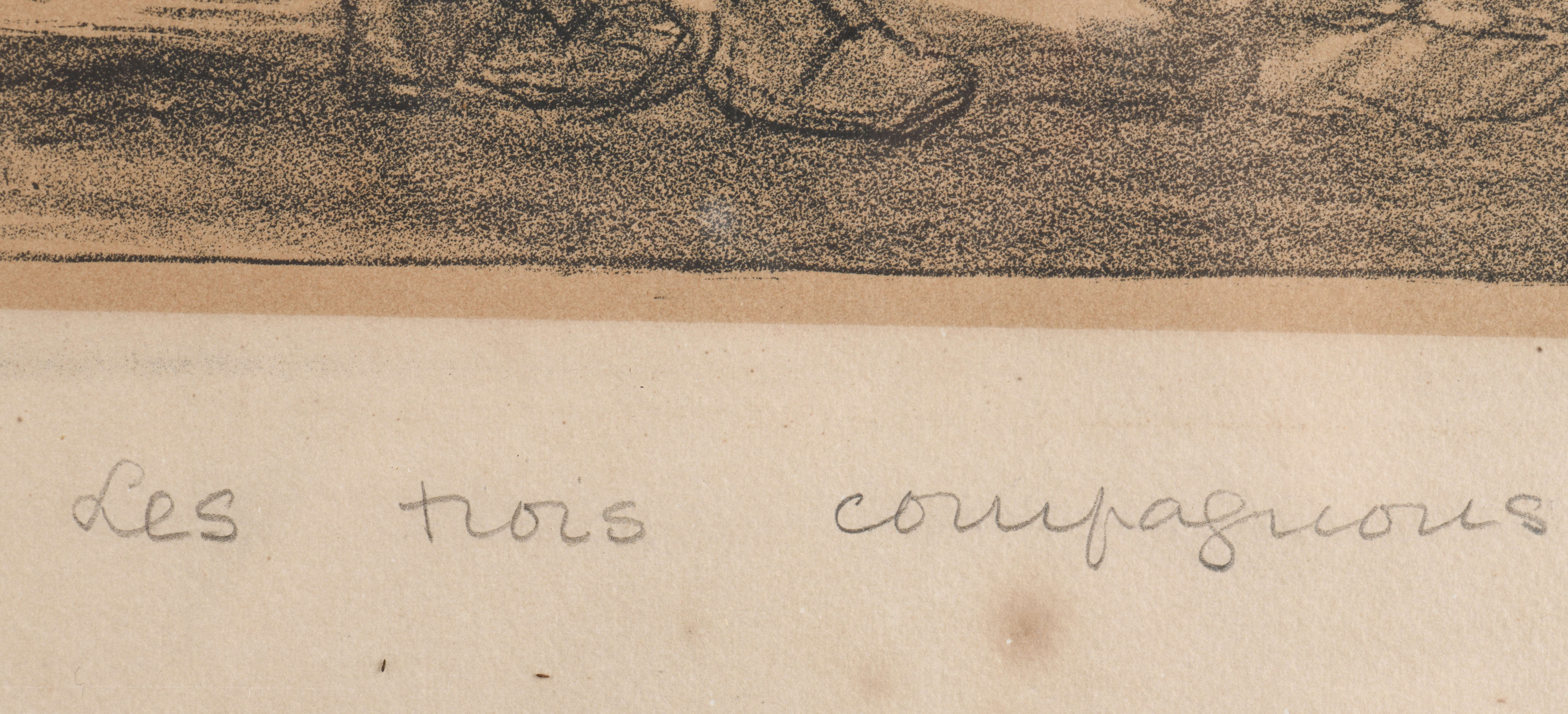 -"Les trois compagnons" lithographie en noir sur papier signée en bas à droite et datée 1915, num au crayon en bas à droite 312/400