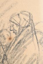 -"La salle d'attente" ou "Verdunois à la gare de l'Est" (1916) lithographie en noir sur papier signée en bas à droite