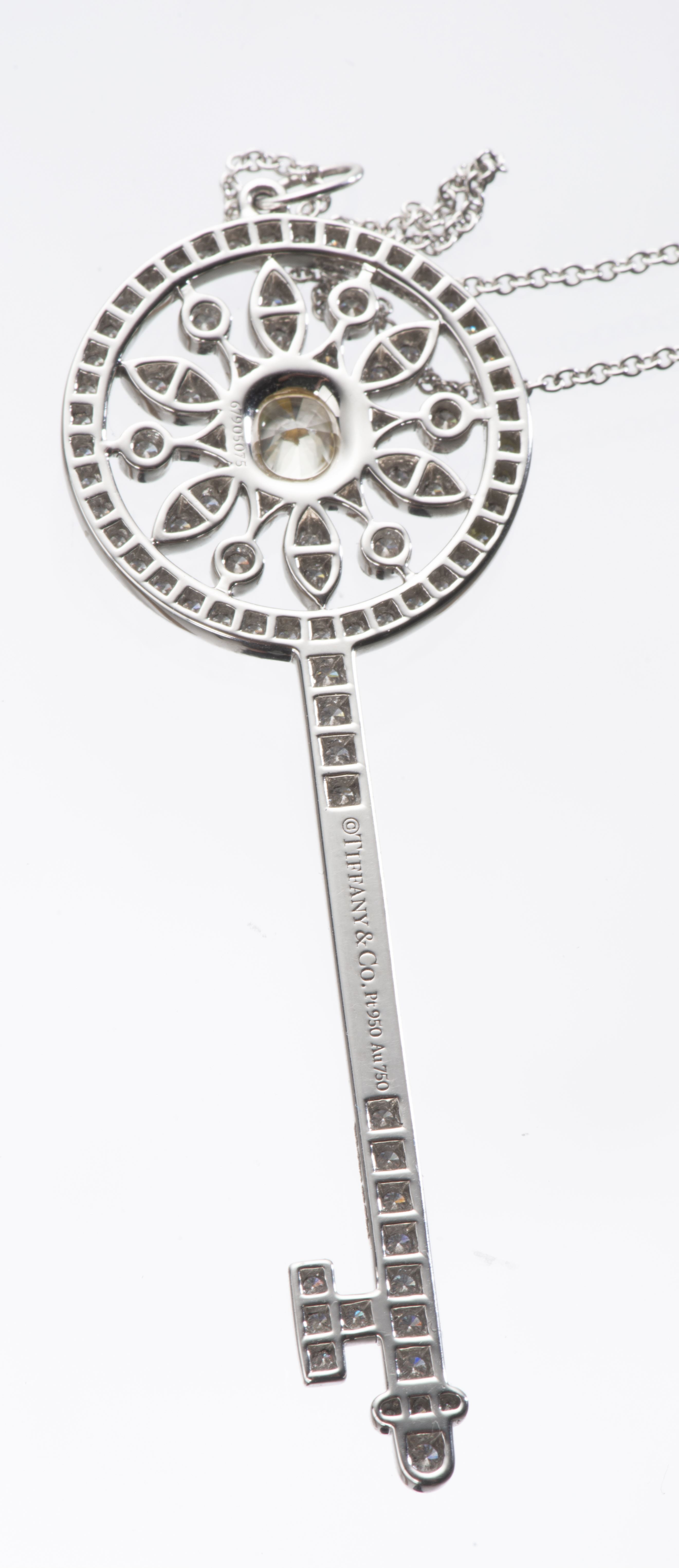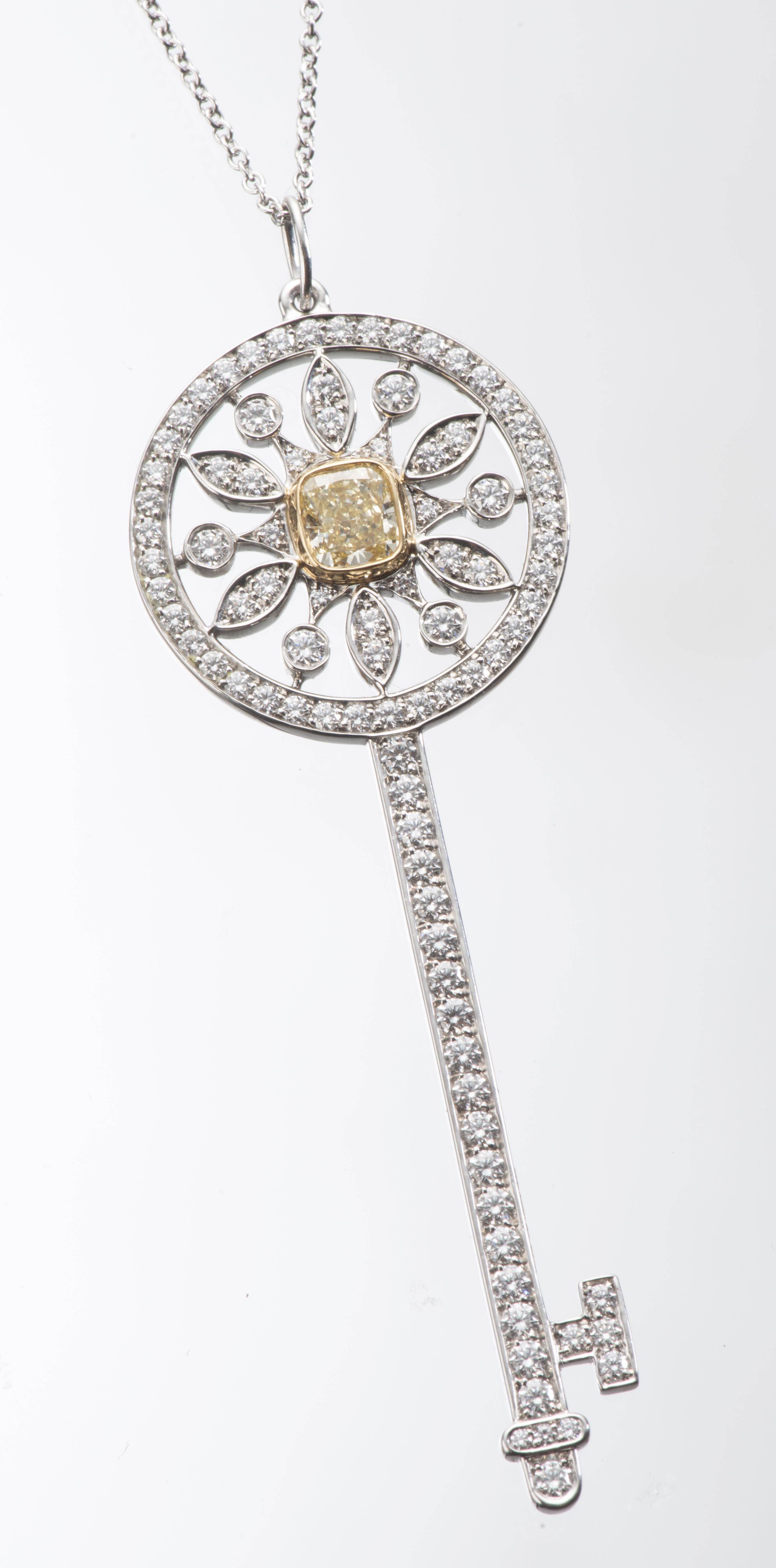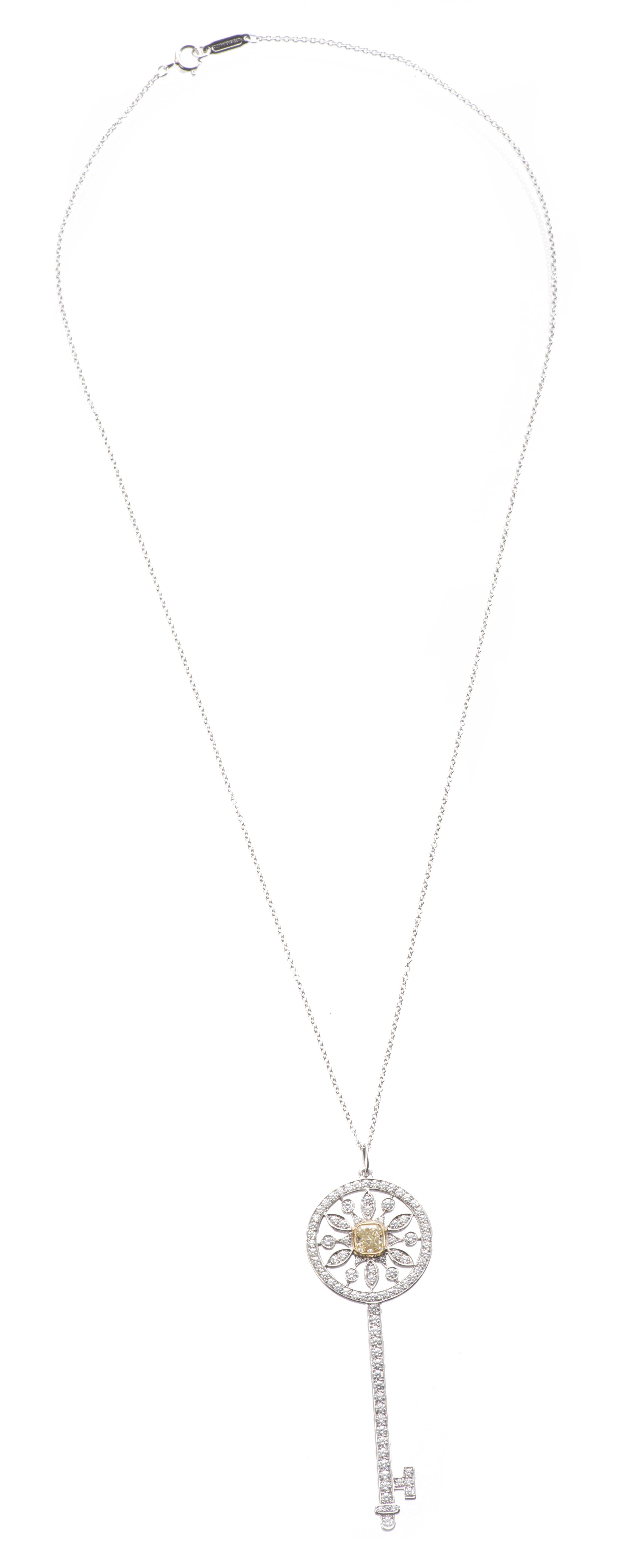 Tiffany & Co chaine en platine .950 et clé en platine .950 et or jaune .750 avec 1 diamant jaune de 0.60 ct et diamants blanc de taille brillant pour 0.98 ct.