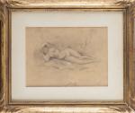 Travail début XXème, "Jeune femme allongée", crayon sur papier brun cachet en bas à droite "Renoir"