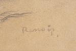 Travail début XXème "Jeune femme allongée", dessin inscrit Renoir