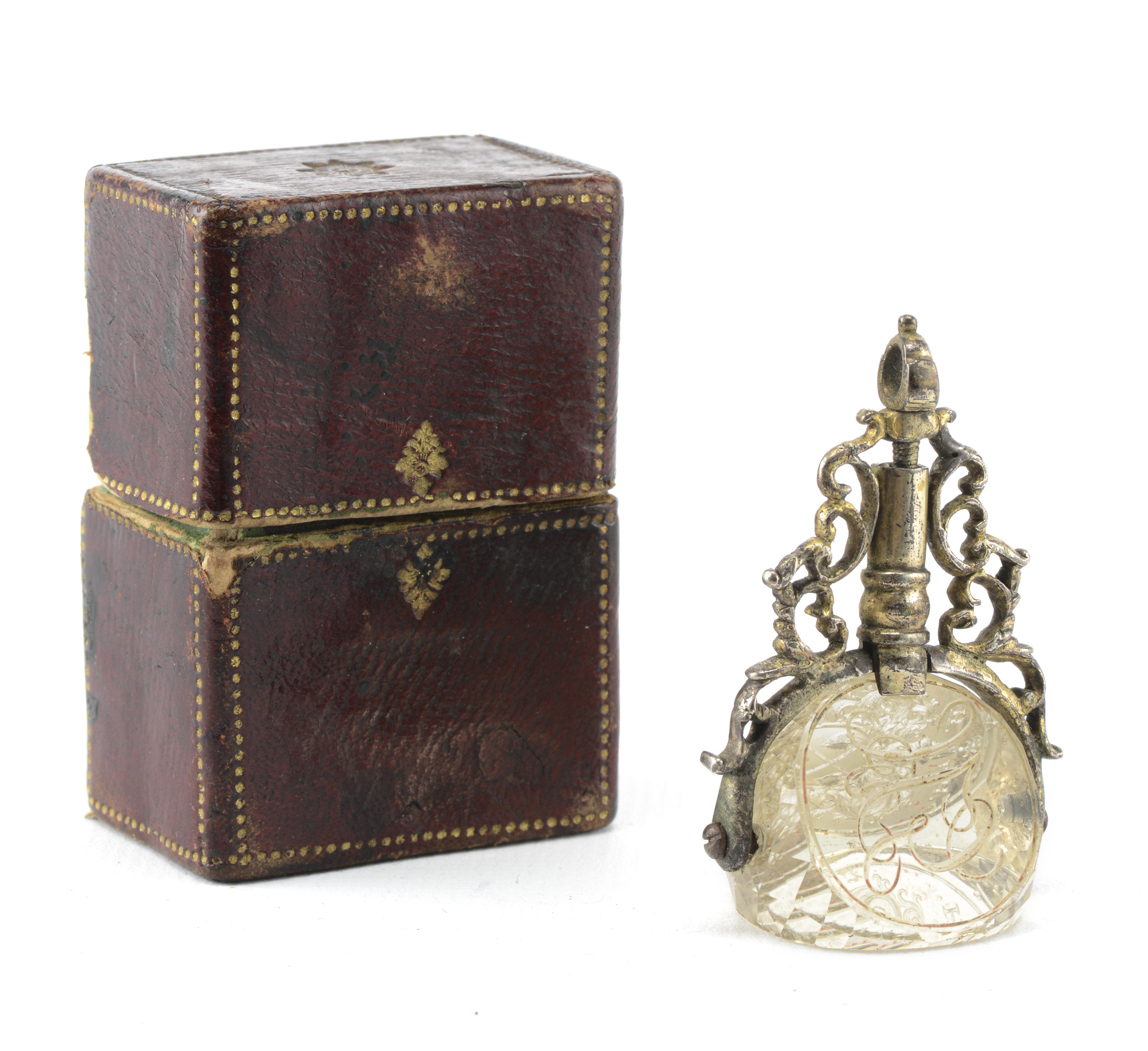 Sceau en cristal de roche et métal à trois faces dans son écrin d'origine en carton. XVIIIe-XIXe