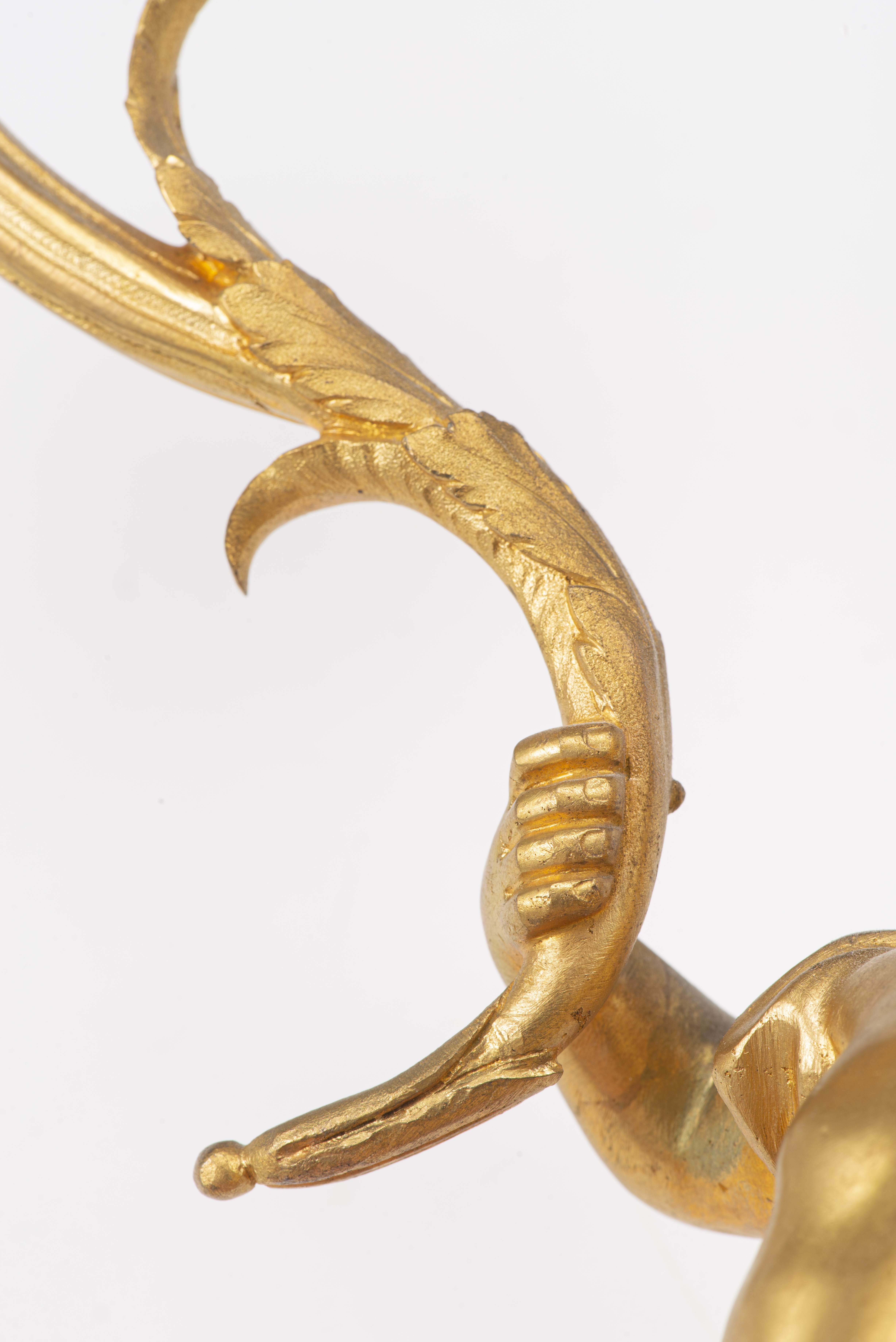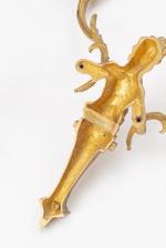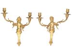 Paire d'appliques en bronze doré figurant deux cariatides soutenant chacune deux bras de lumière.