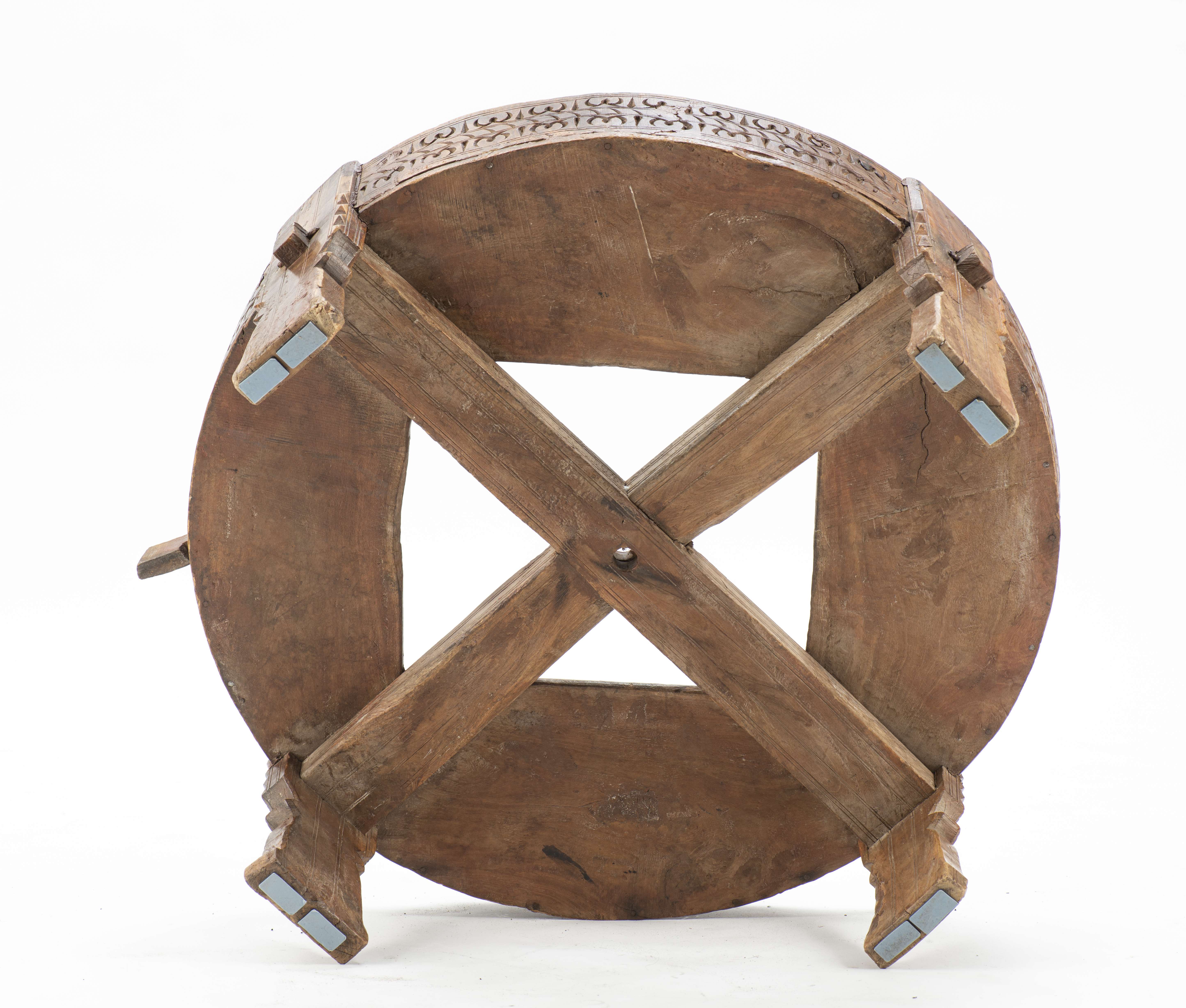 Trio de poufs suisses en bois rustique avec coussins. Les armatures sont faites à partir d'anciens sécheurs à grains.