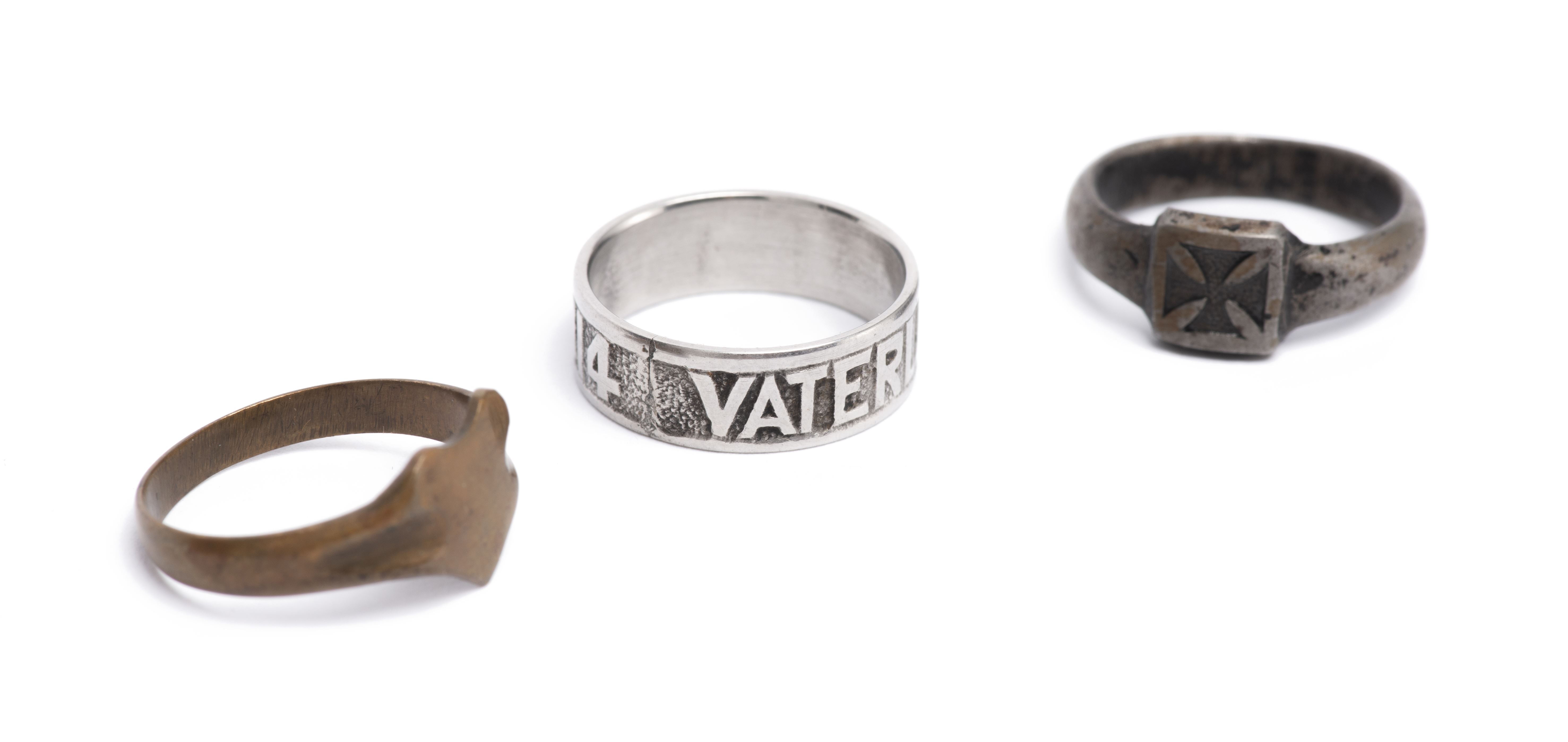 Trois bagues de soldats allemands, dont deux de 1914 :