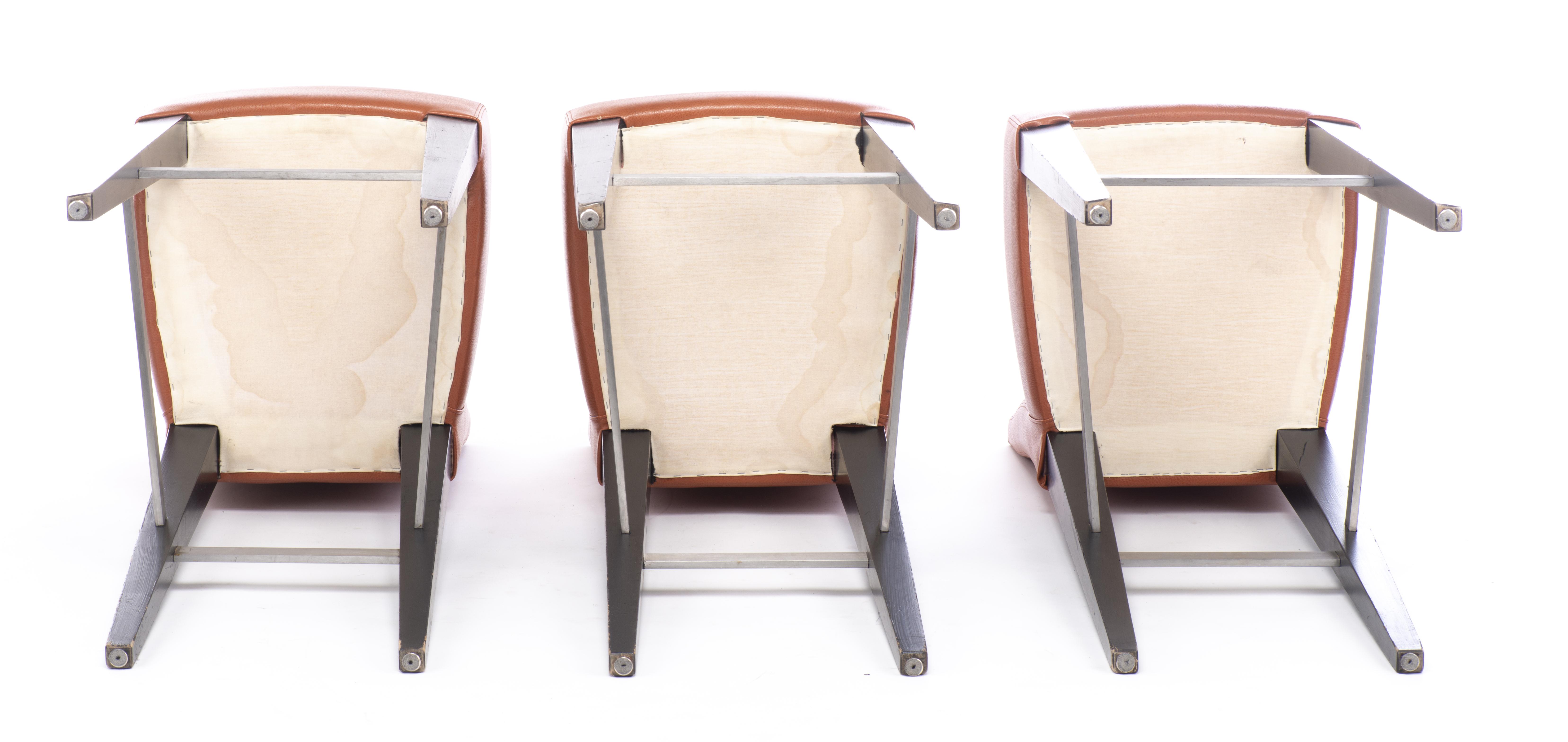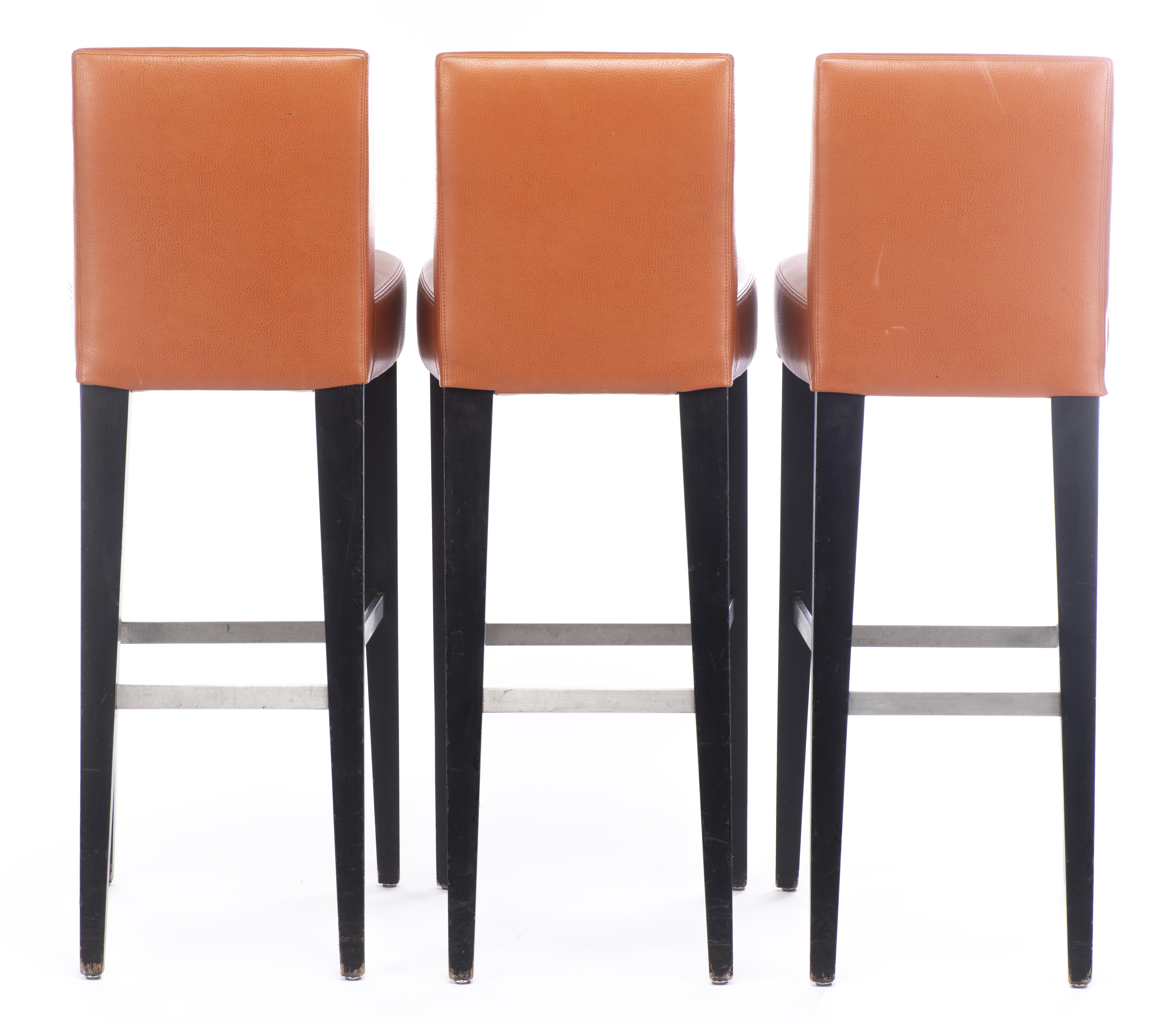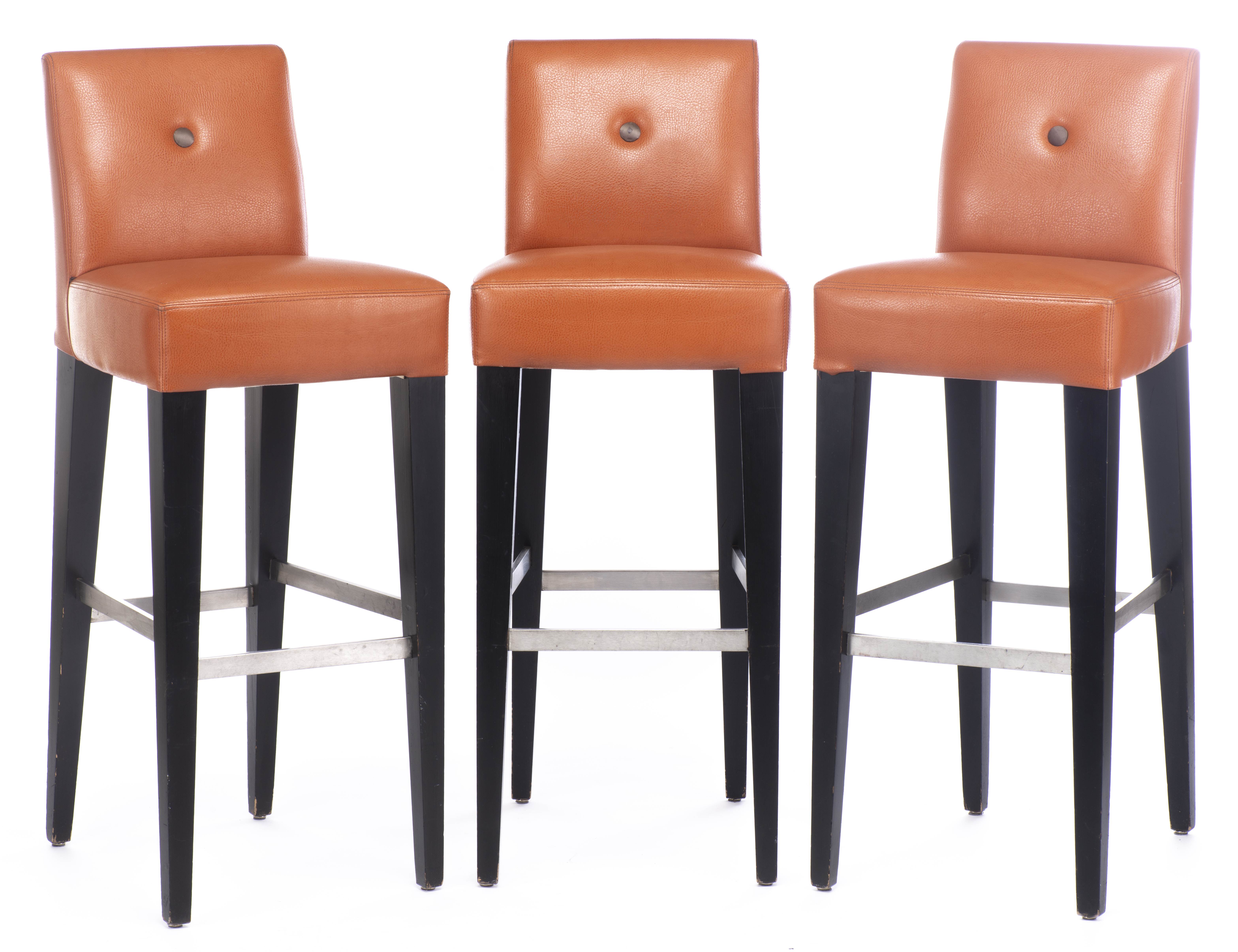 Trois chaises de bar à assise et dossier en simili-cuir tendance.