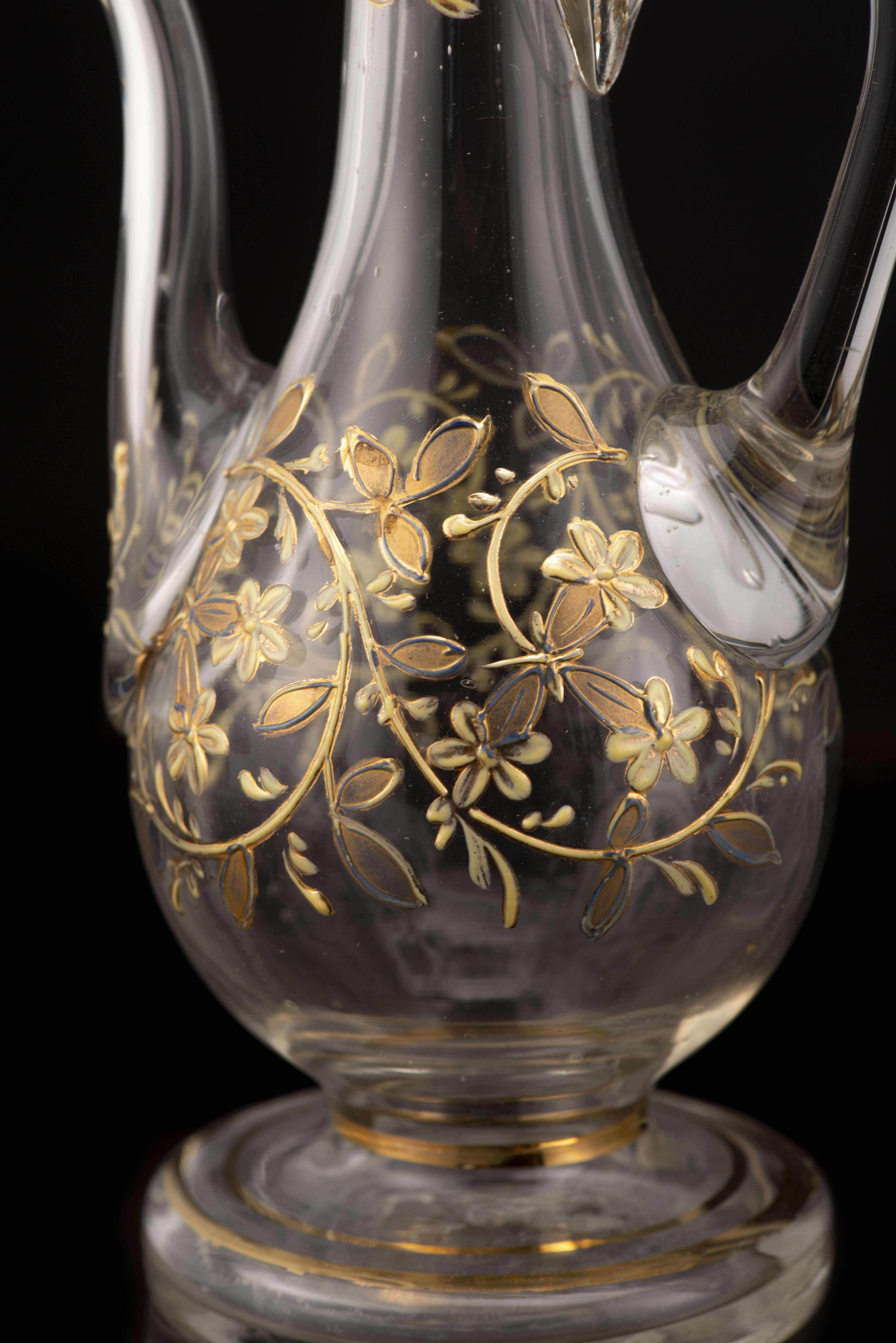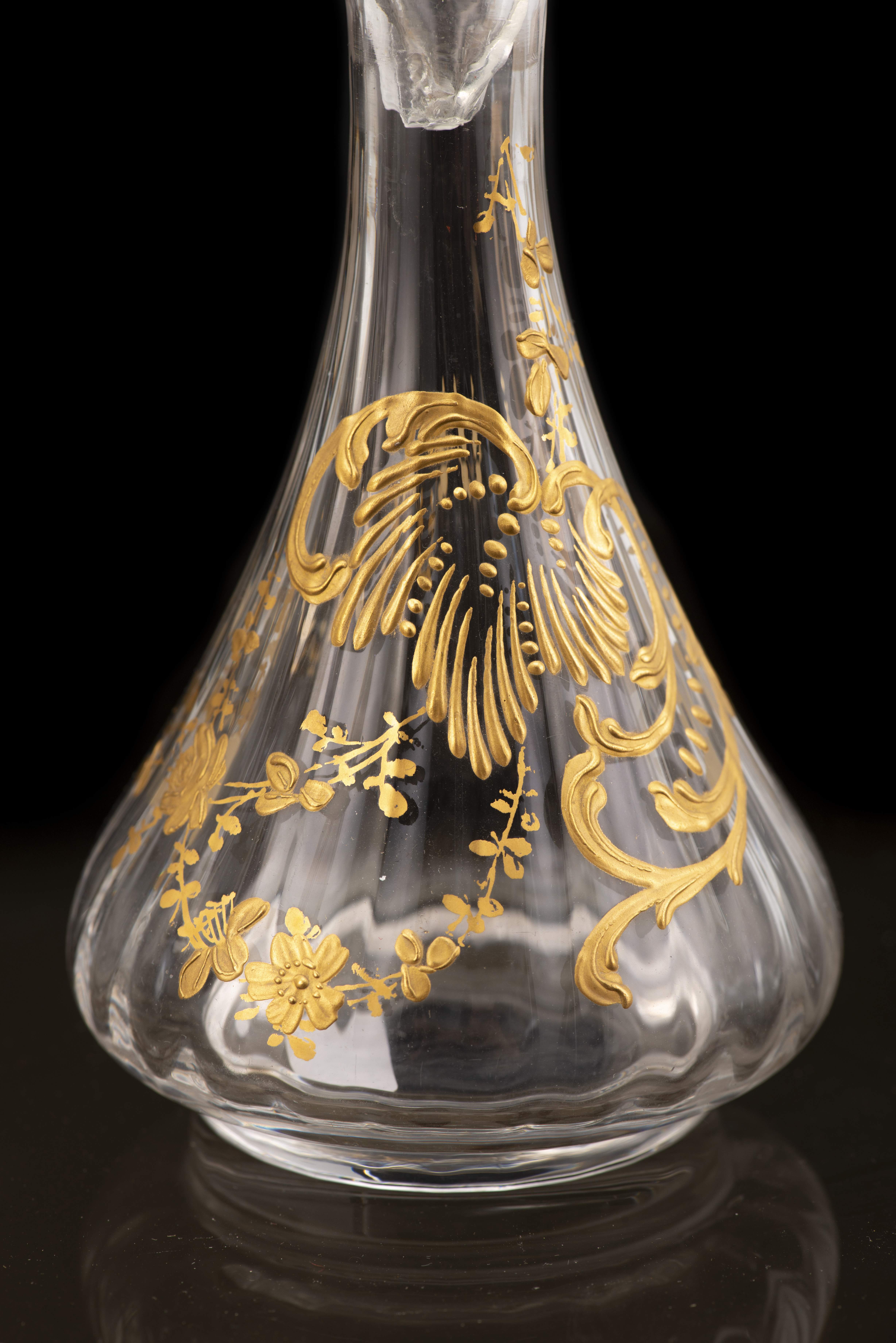 - carafe en cristal à panse godronnée à décor floral à l'or, H. 18.2 cm