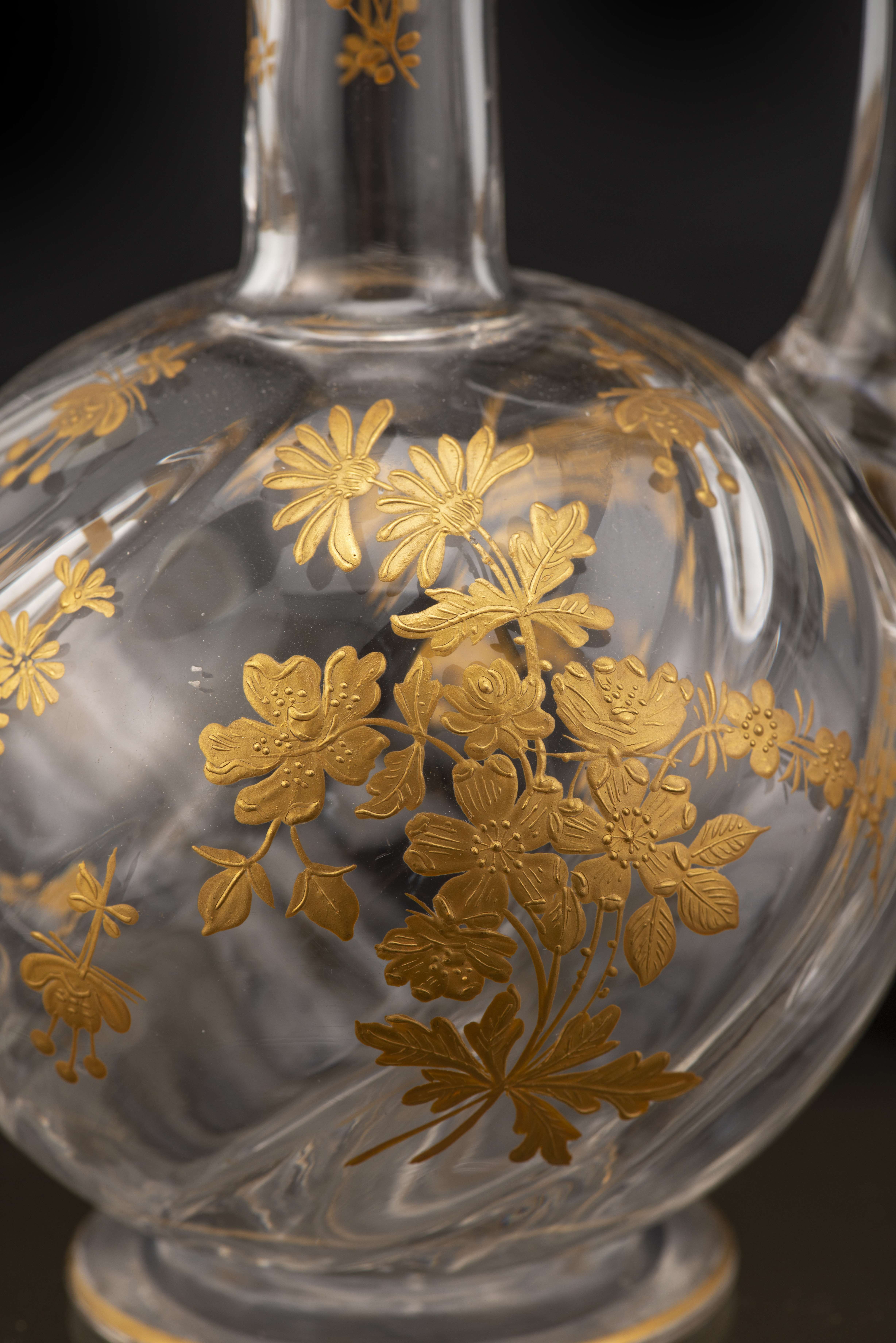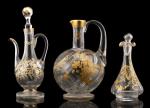 Trois pièces en verre et cristal d'époque Nap. III à surdécor à l'or