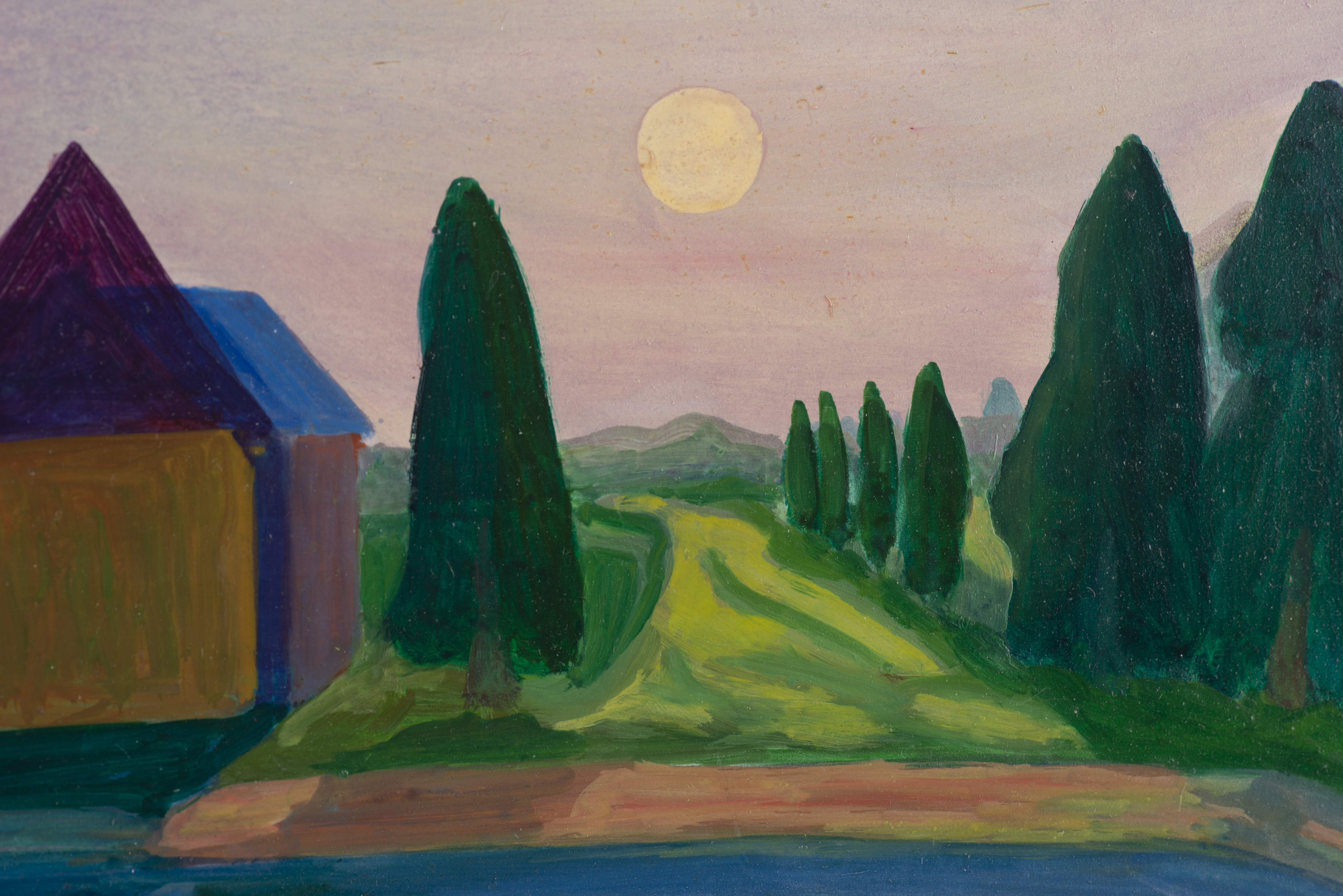 Tuomas MÄNTYNEN (né en 1932) "Soleil de Minuit", huile sur panneau signée au dos et localisée à Helsinki, Finland.