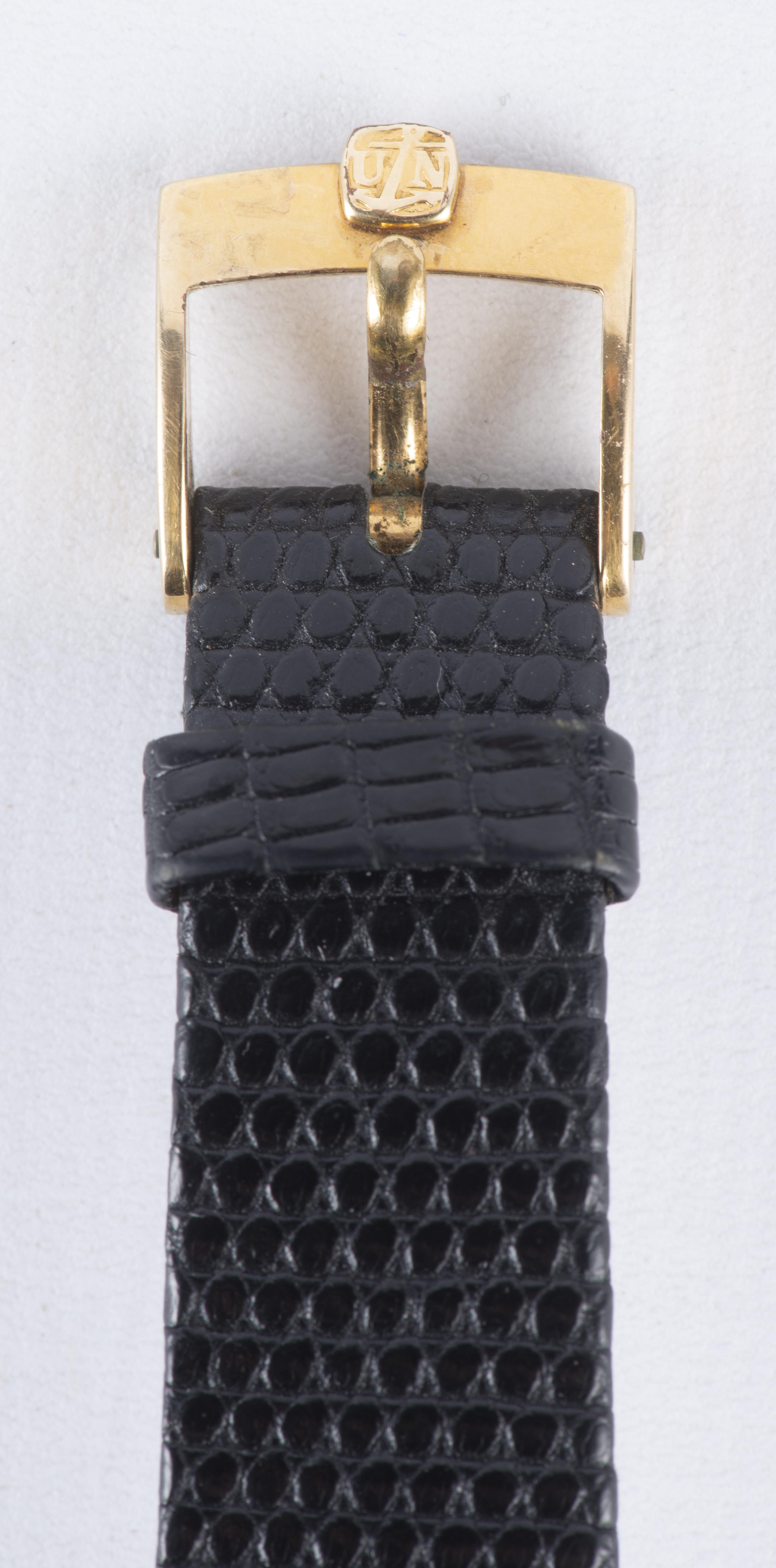 Montre-bracelet Ulysse Nardin en or jaune .750 à mouvement mécanique Peseux 7001 à 21 jewels, cadran blanc à chiffres arabes, aiguilles bâton noires, num. 022153.