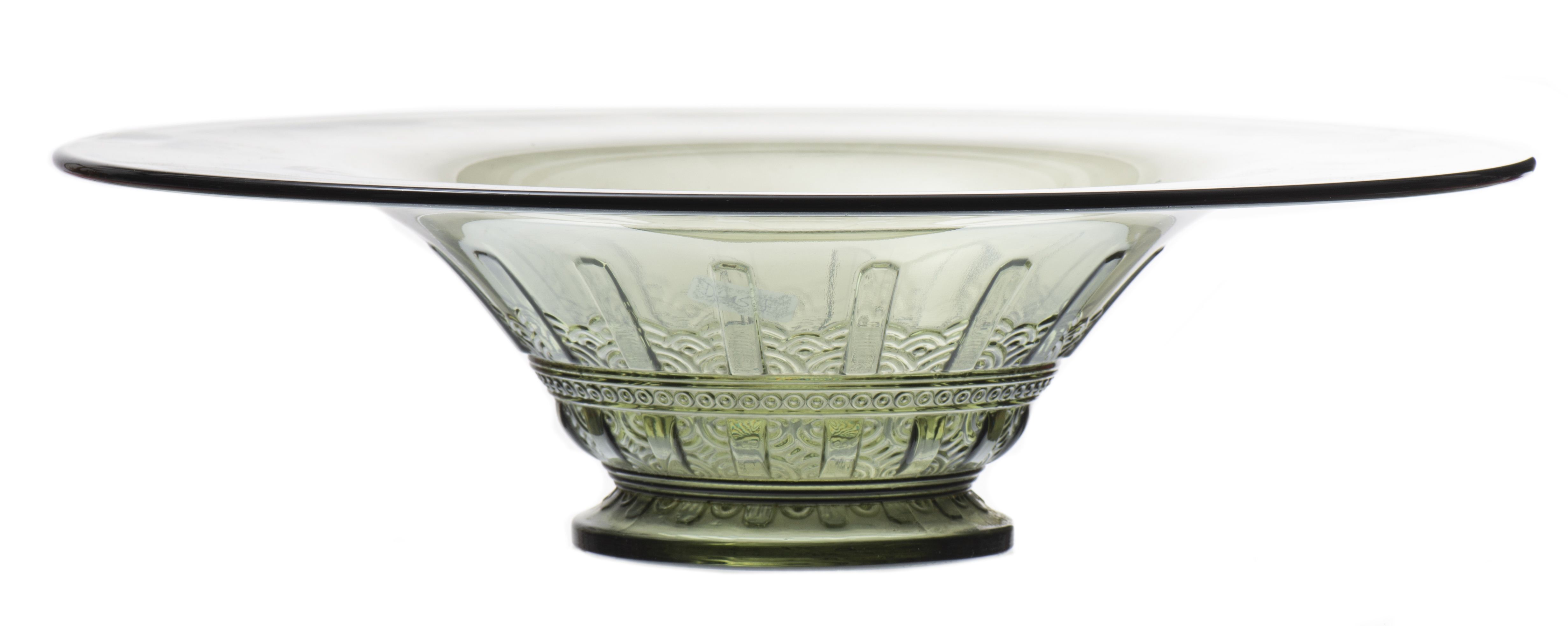 VAL SAINT-LAMBERT, coupe en cristal pressé fumé teinté vert de style 1925.