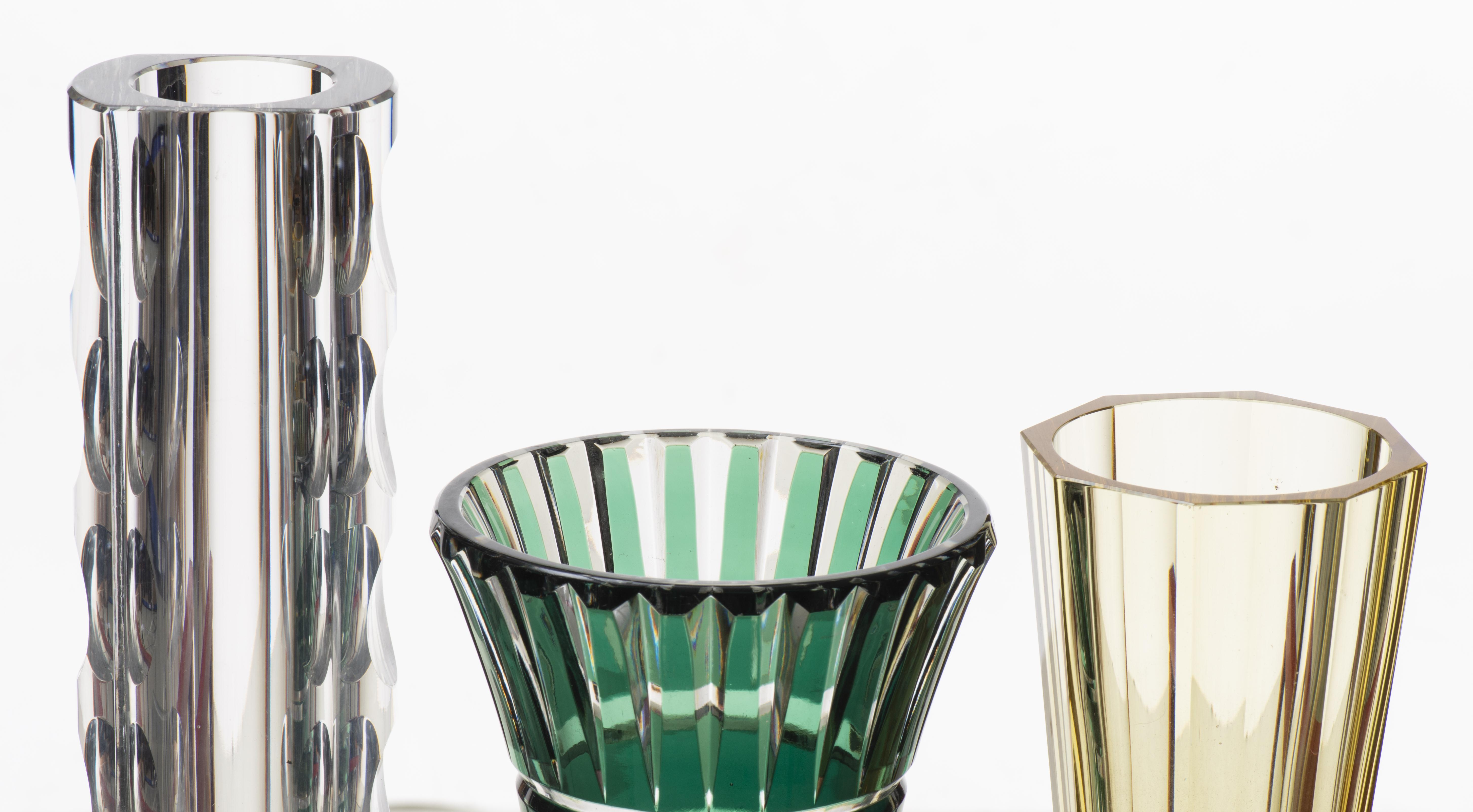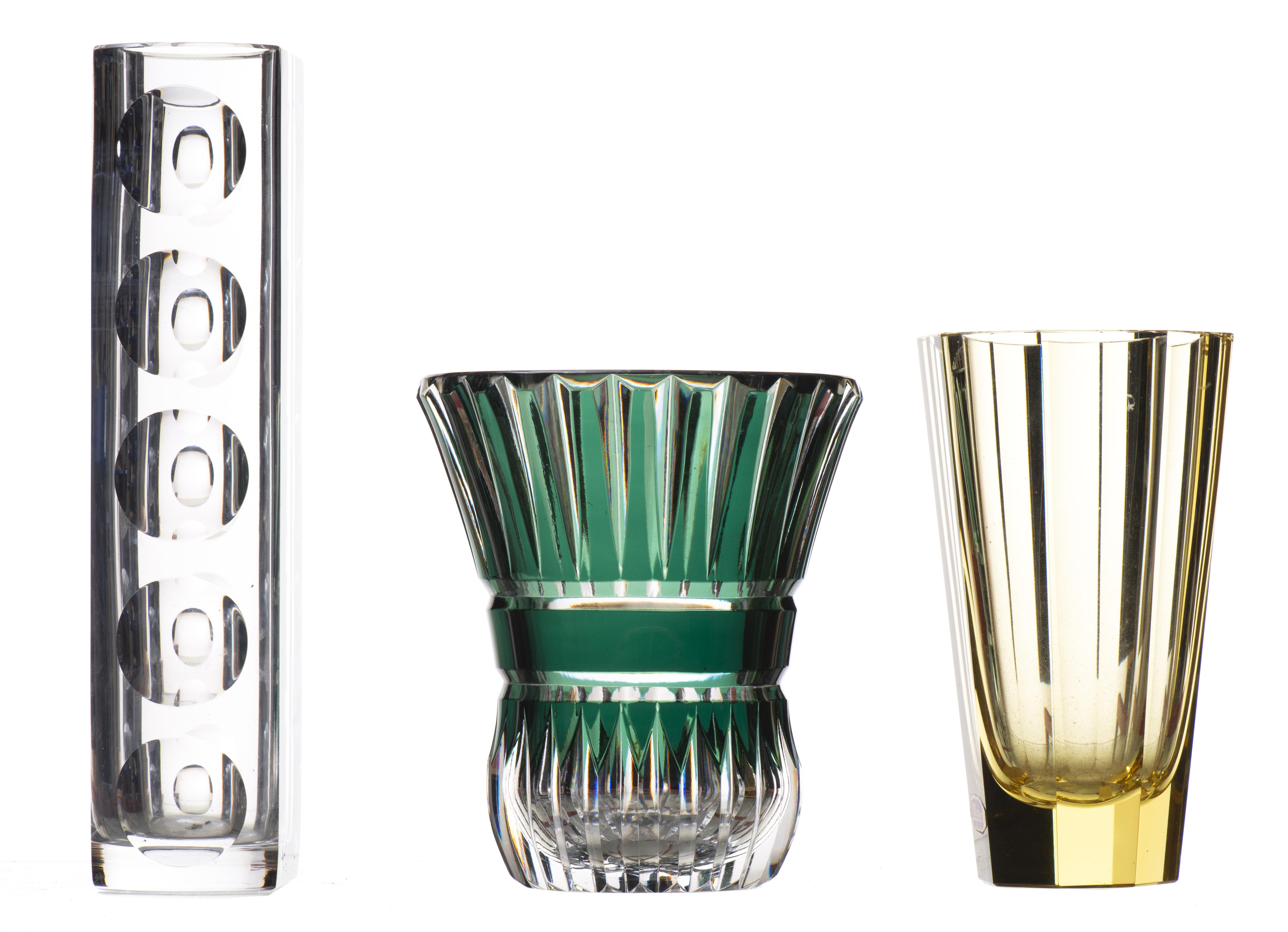 VAL SAINT-LAMBERT & MOSER, Lot de trois vases en cristal signés de style Art déco.
